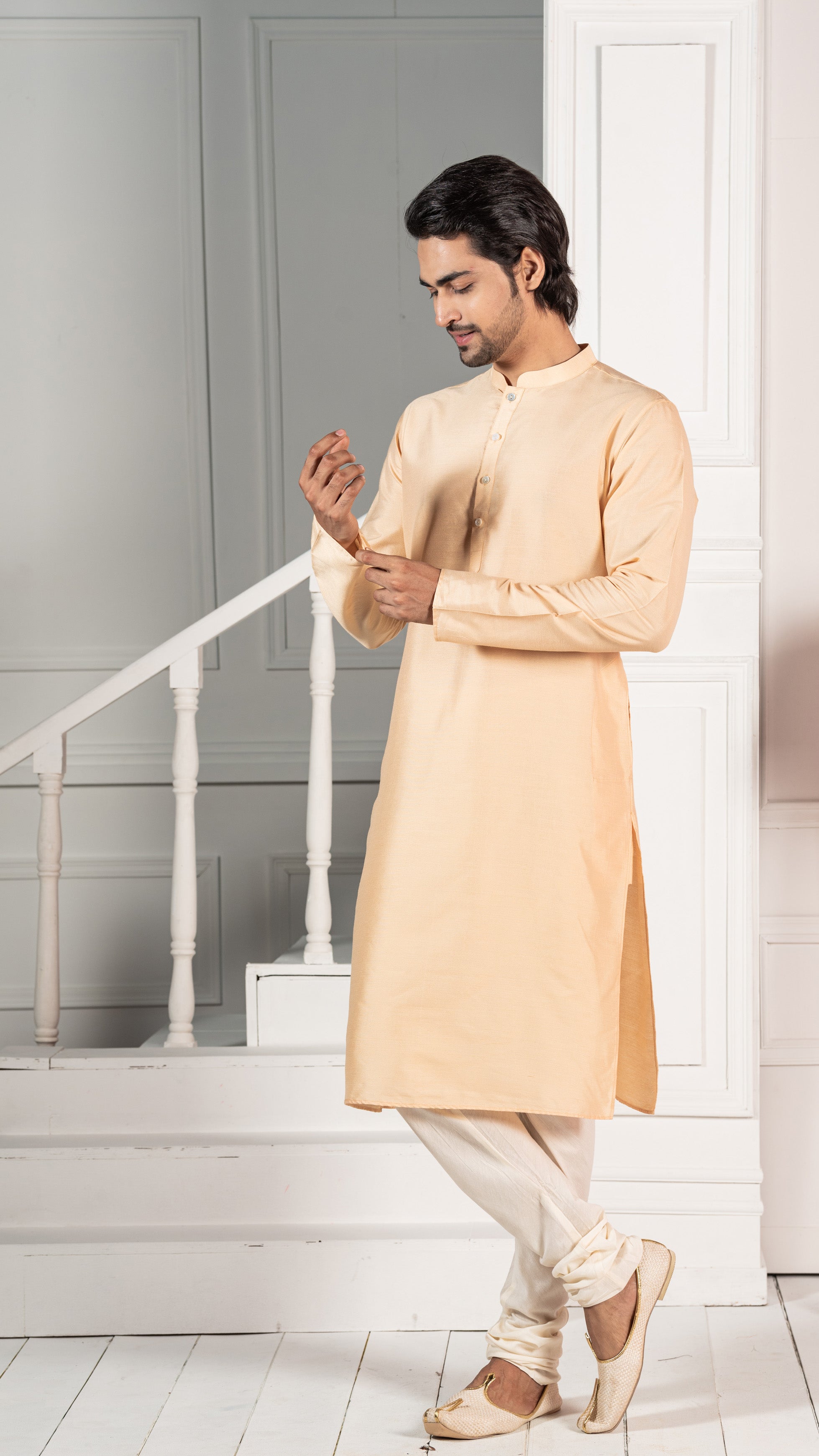 This kurta will be a great addition to your wardrobe for this season. The stylish, long sleeve style and mandarin collar gives an elegant look.