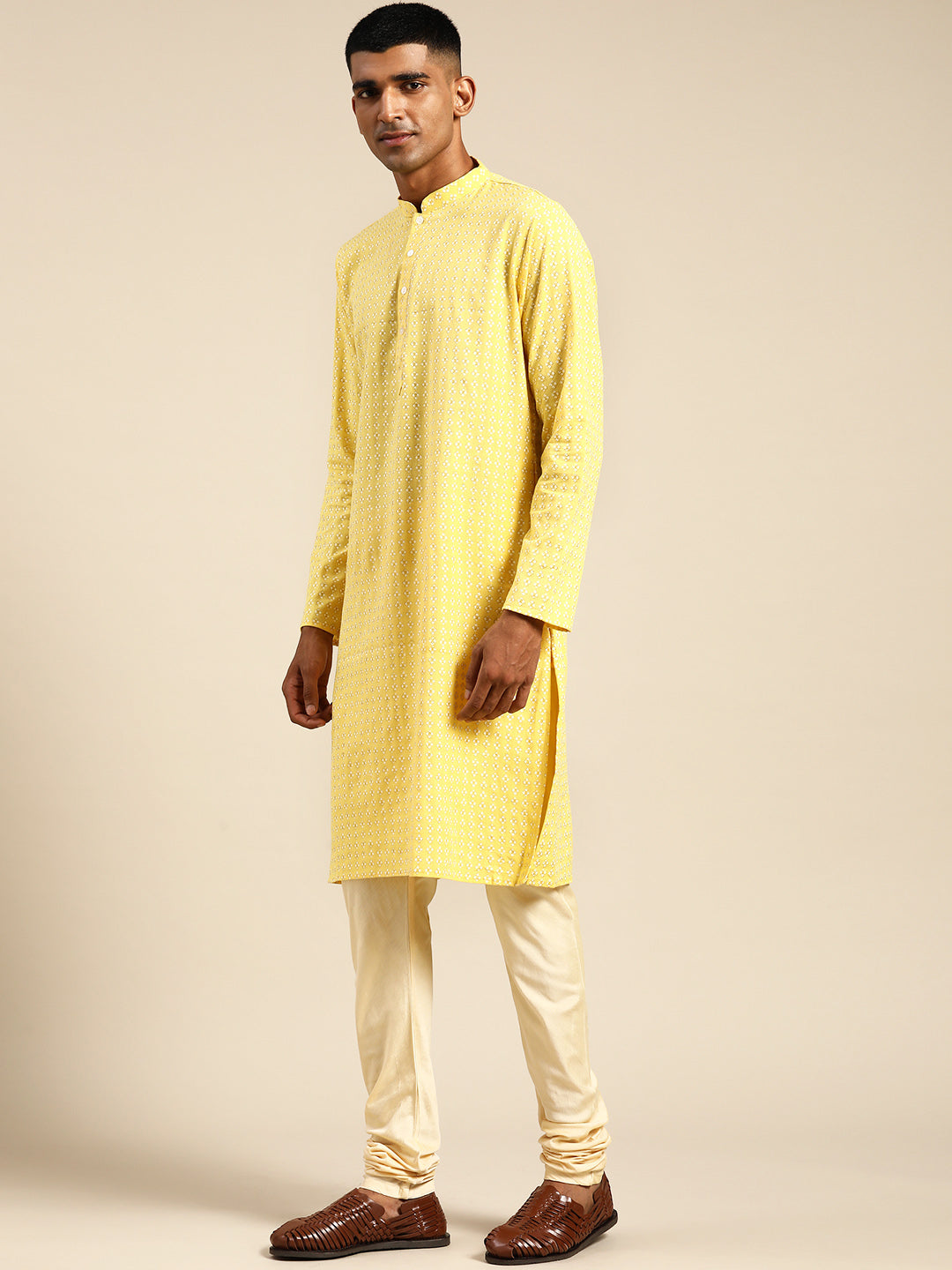 1. This kurta set is the perfect for casual days, parties and festivals. It features a mandarin collar, style, and gives a charming look.