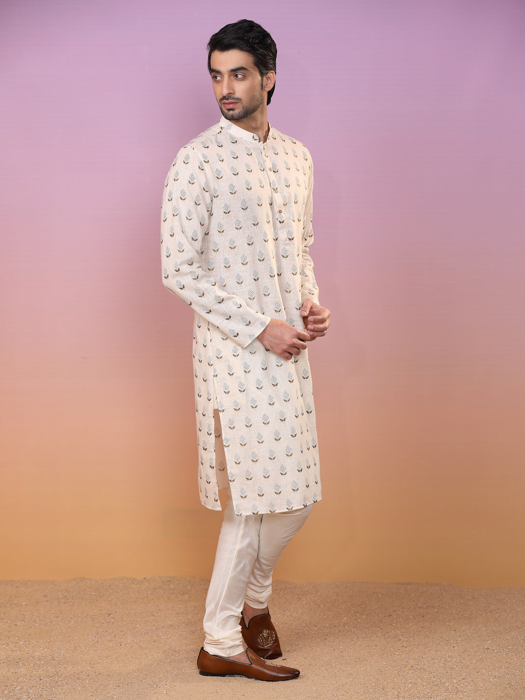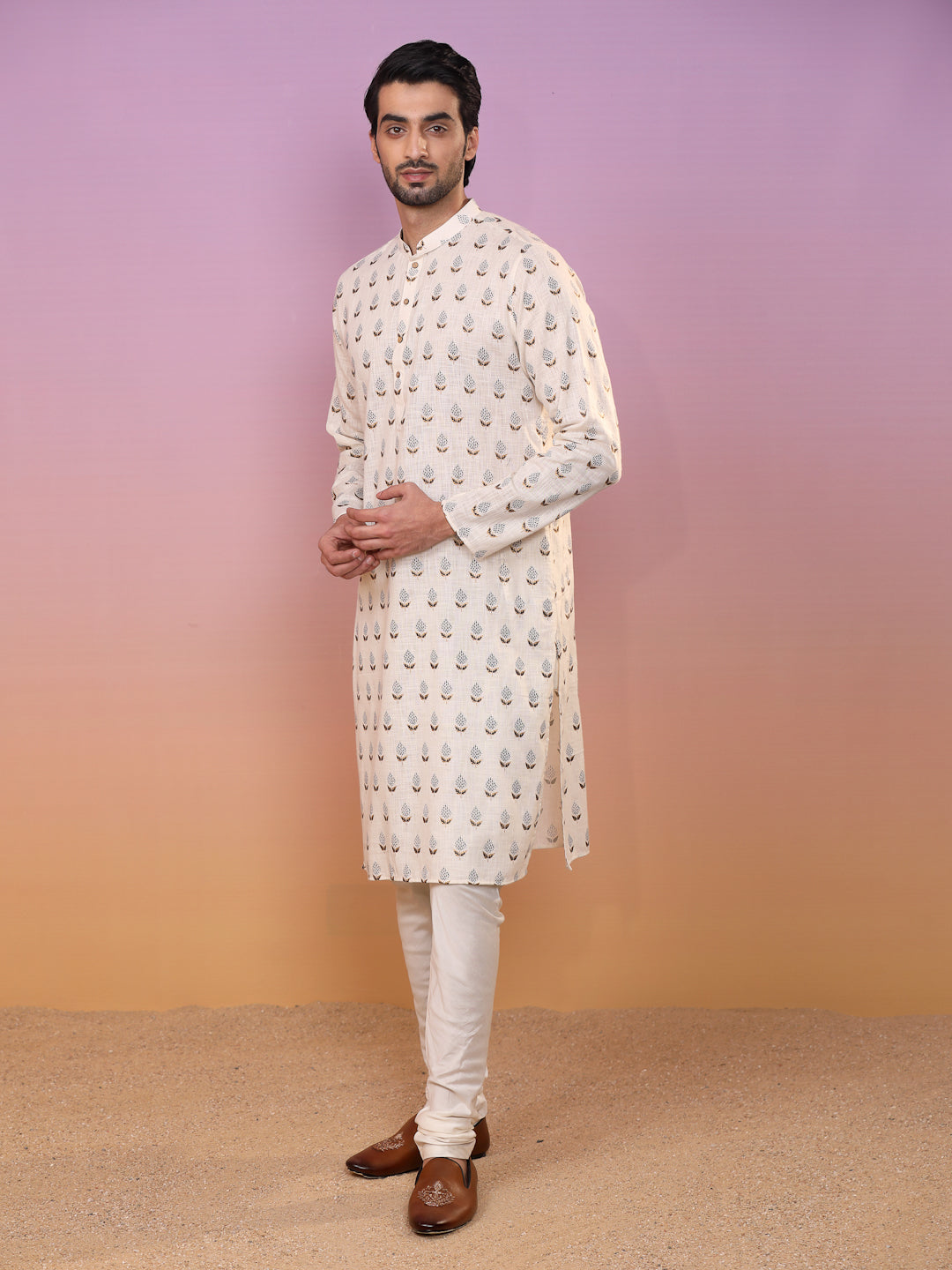 The kurta set is perfect for a festival or seasonal resort look. Look chic and charming in this beautiful kurta with a mandarin collar and the perfect bottomwear. This outfit is comfortable yet stylish.