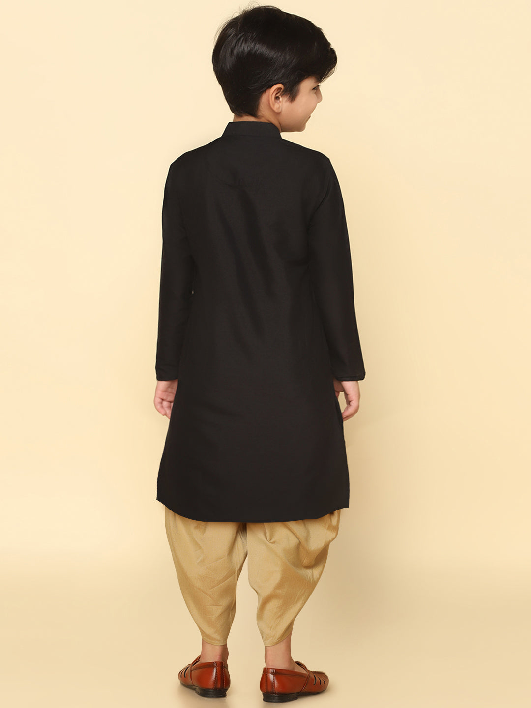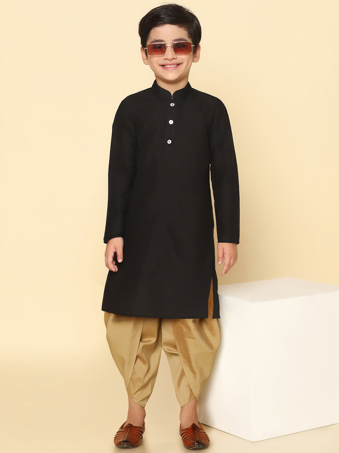 This Kurta Set with Black is an elegant mandarin collar style that is perfect for occasional wear. With a full sleeve Solid design and Cotton Blend fabric, it will make you look stylish.