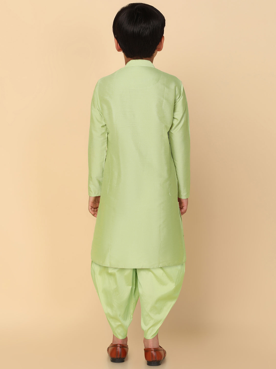 This Kurta Set with Green is an elegant mandarin collar style that is perfect for occasional wear. With a full sleeve Solid Dyed design and Cotton Blend fabric, it will make you look stylish.