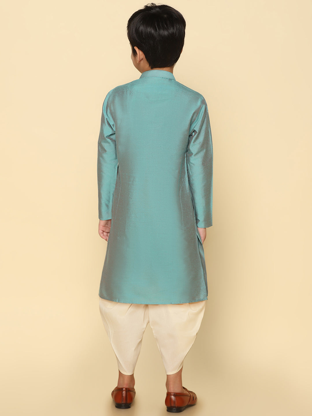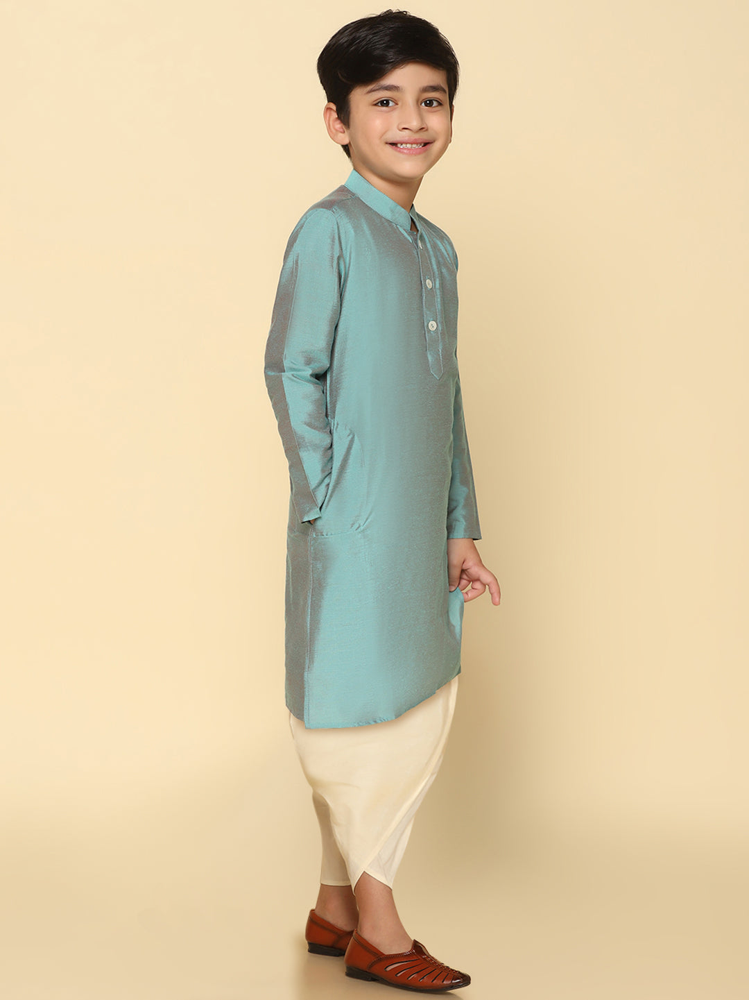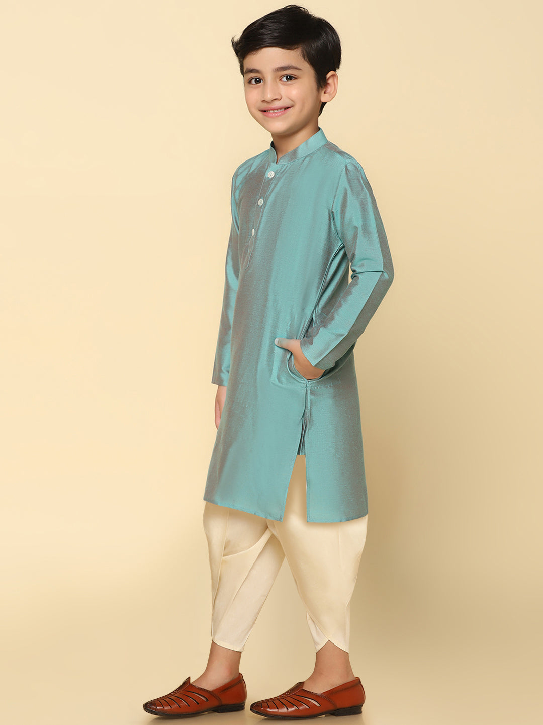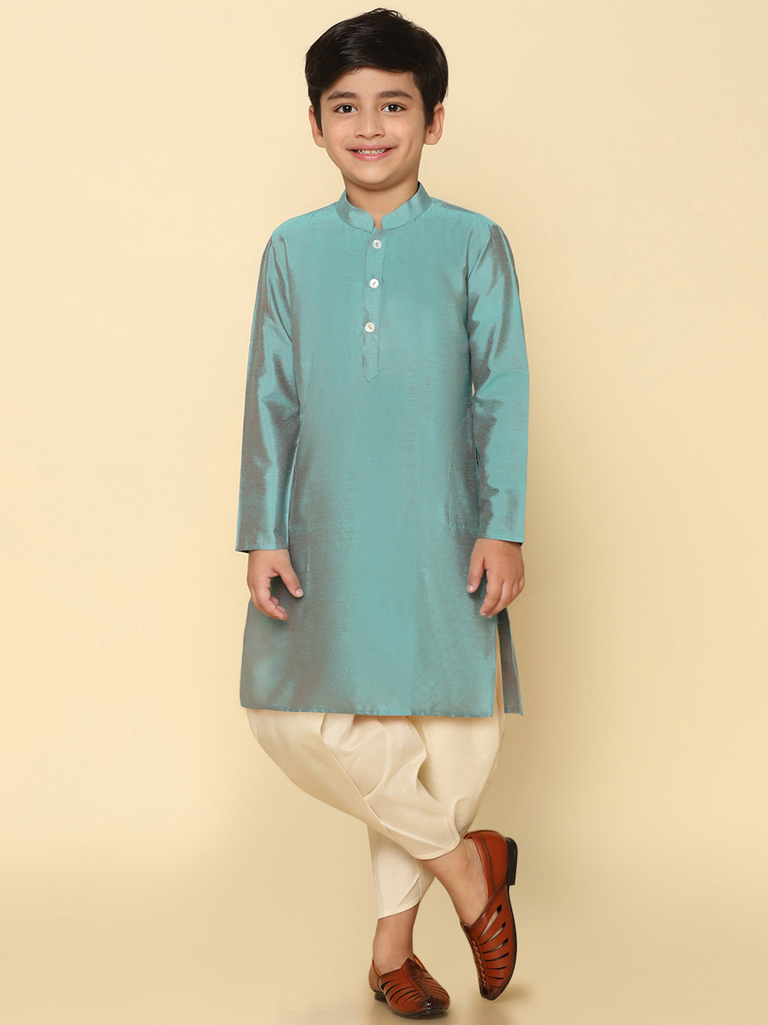 This Kurta Set with Green is an elegant mandarin collar style that is perfect for occasional wear. With a full sleeve Solid Dyed design and Cotton Blend fabric, it will make you look stylish.
