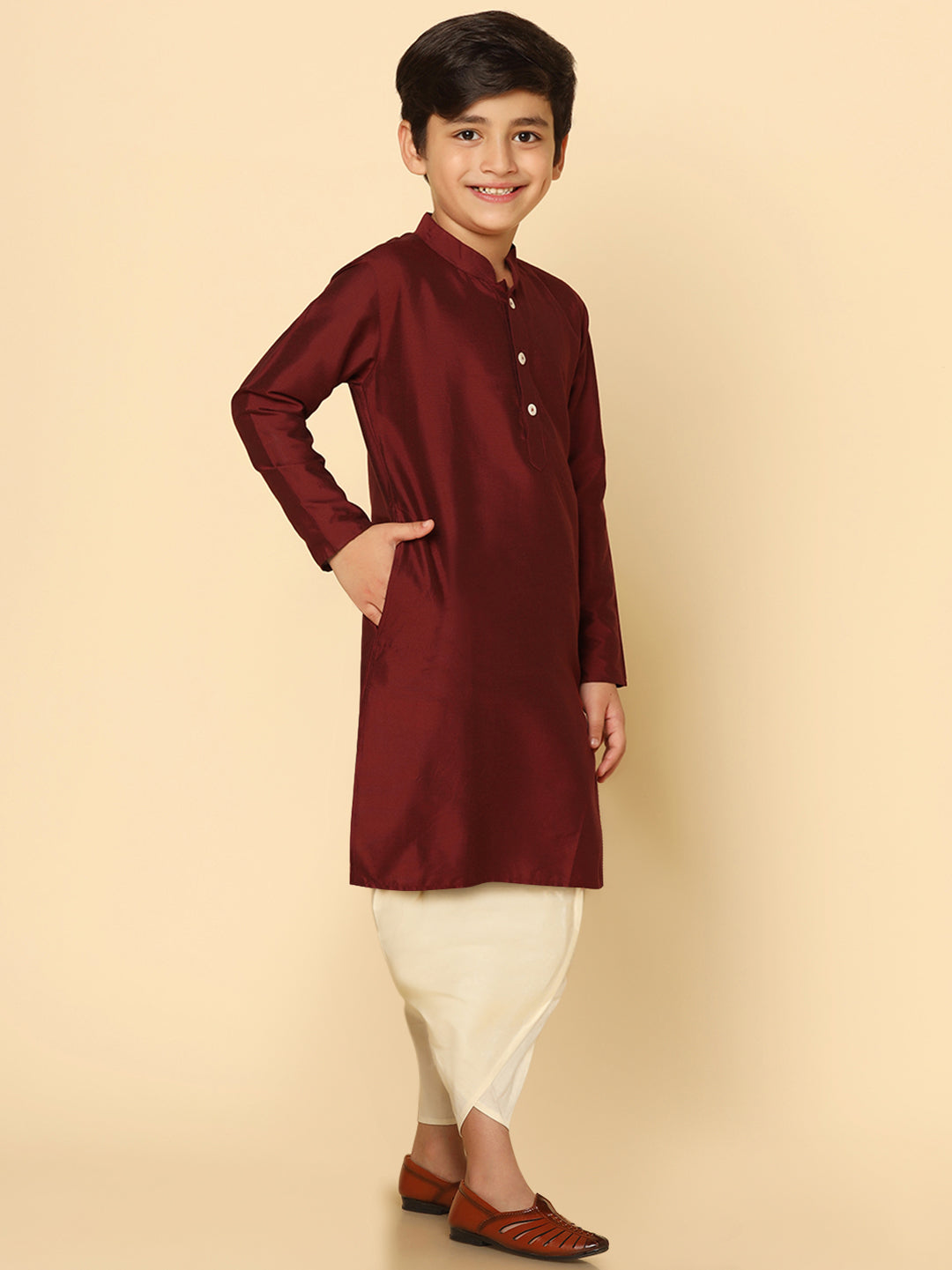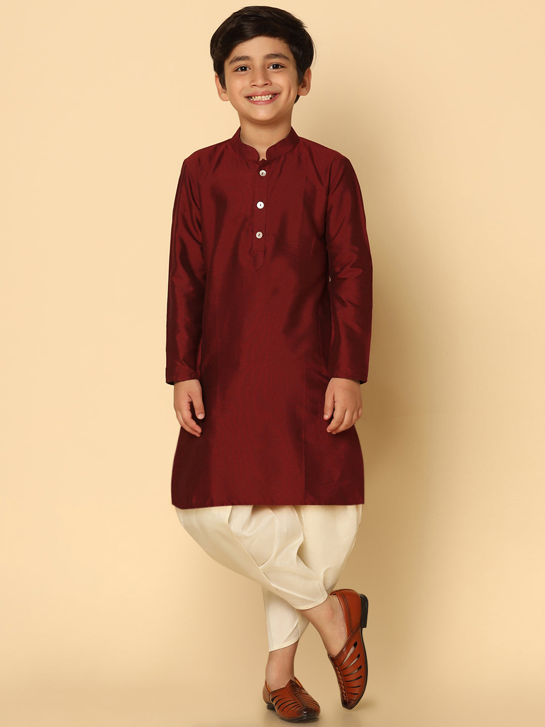 This Kurta Set with Maroon is an elegant mandarin collar style that is perfect for occasional wear. With a full sleeve Solid Dyed design and Cotton Blend fabric, it will make you look stylish.
