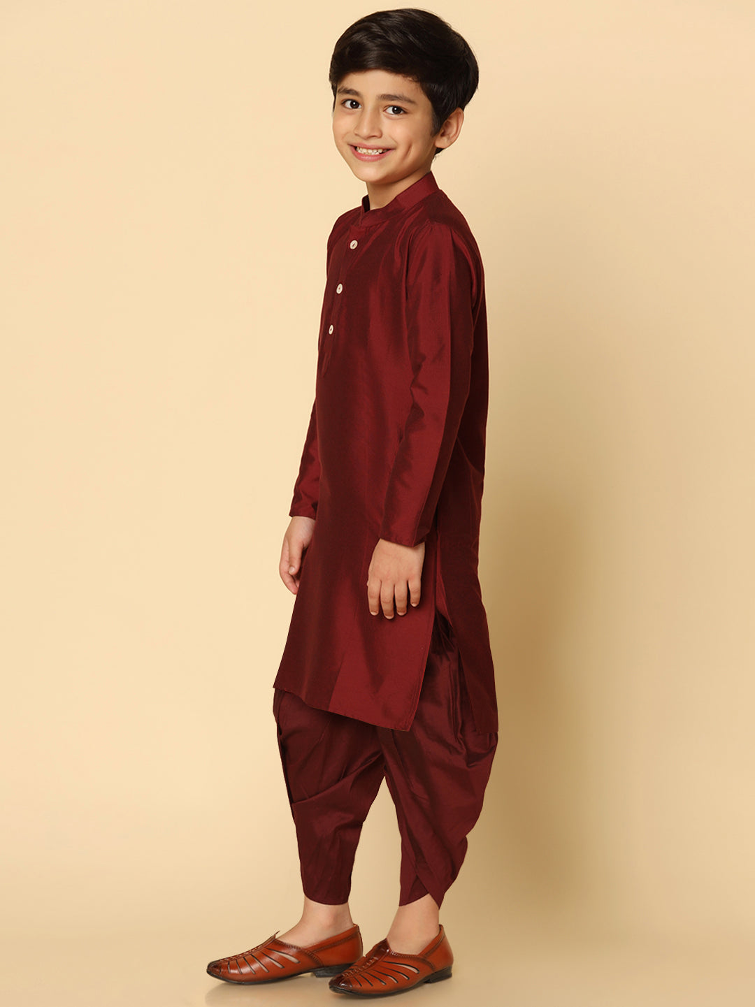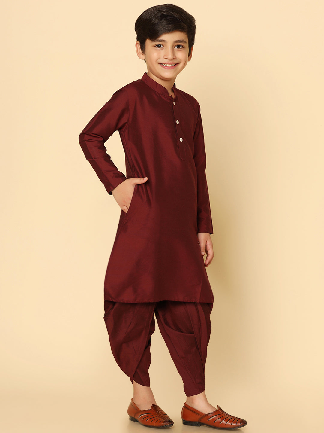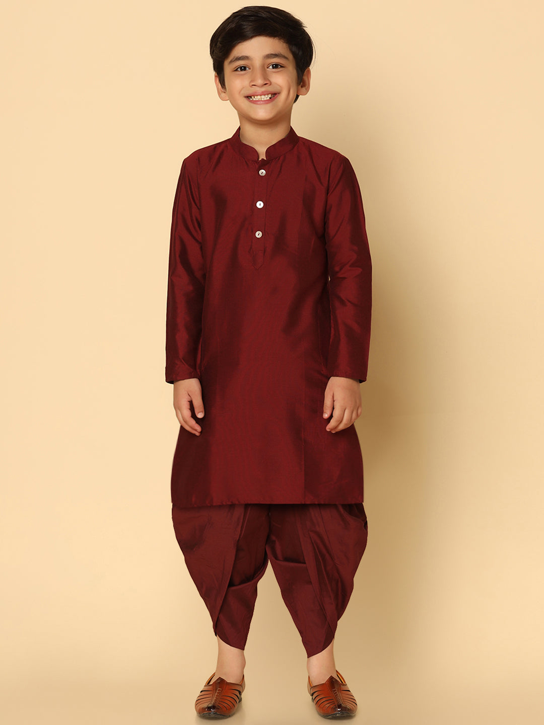 This Kurta Set with Maroon is an elegant mandarin collar style that is perfect for occasional wear. With a full sleeve Solid Dyed design and Cotton Blend fabric, it will make you look stylish.