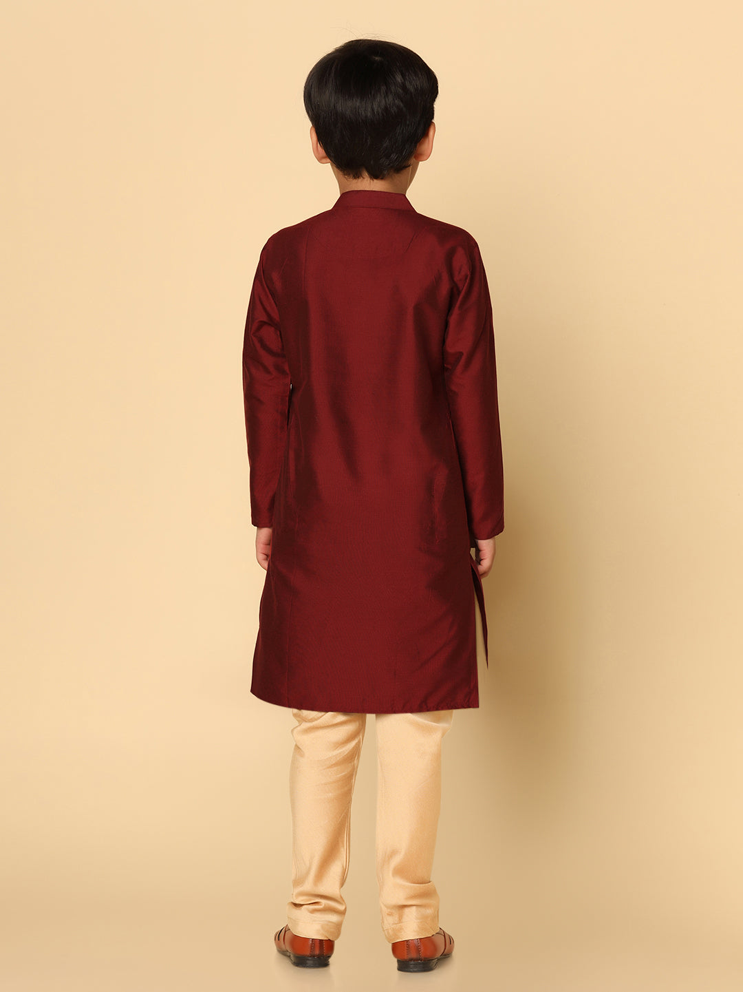 The Kisah kurta Set is ideal for boys looking for stylish yet comfortable attire. Crafted from Cotton Blend fabric, Maroon color, stylish Solid pattern, and It is a great addition to your boys wardrobe and will win you compliments from everyone.