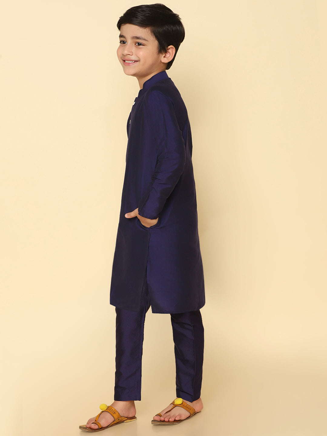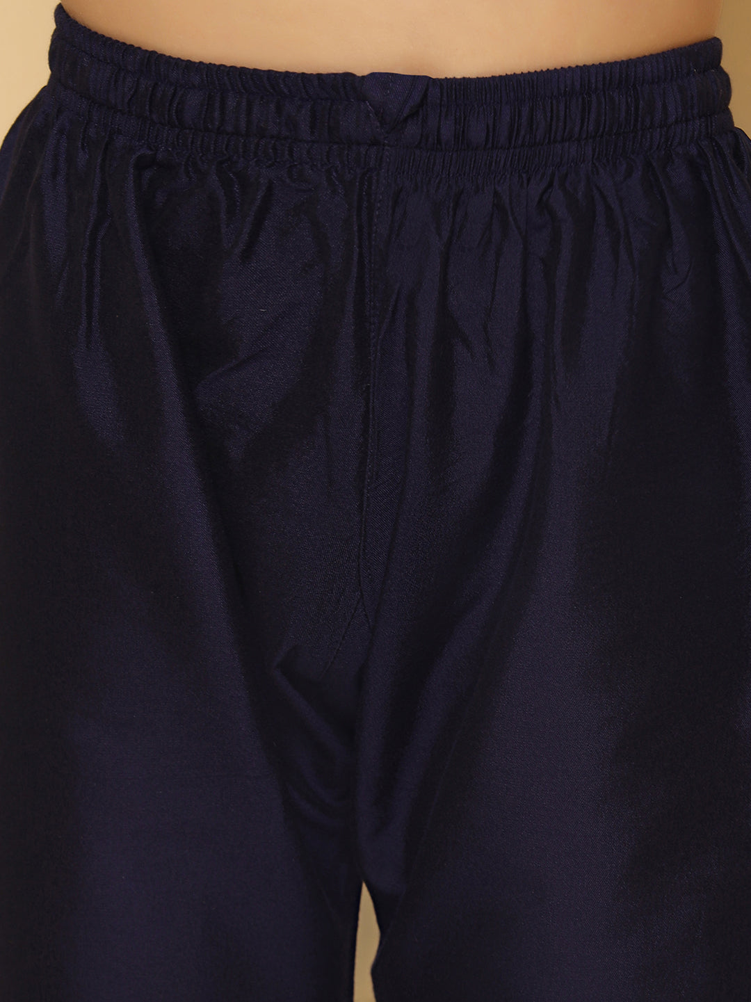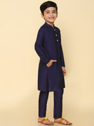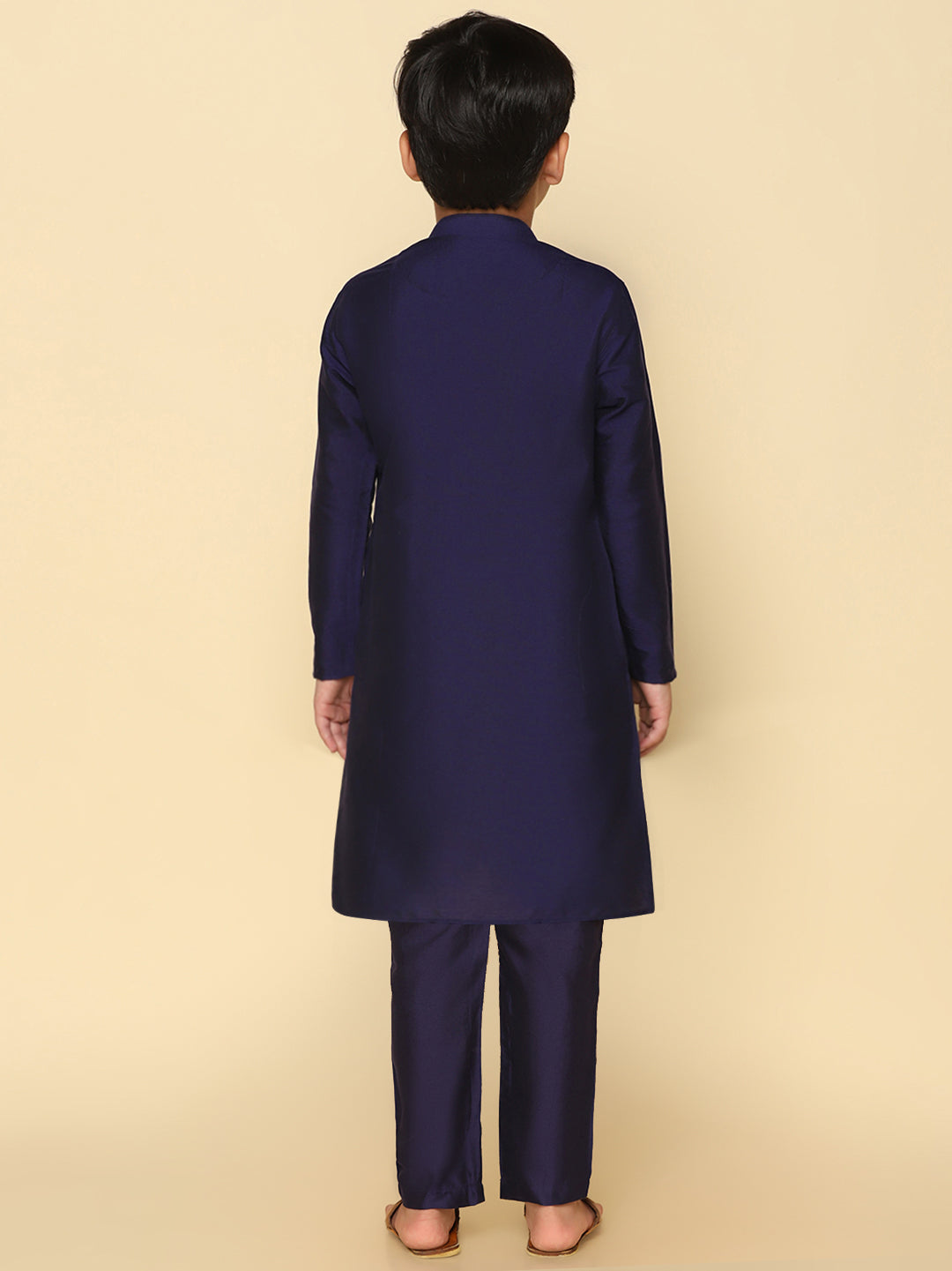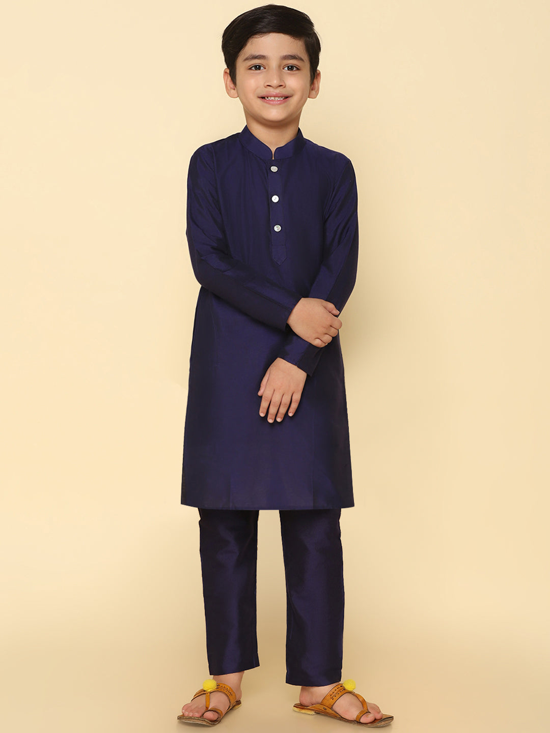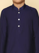 The Kisah kurta Set is ideal for boys looking for stylish yet comfortable attire. Crafted from Cotton Blend fabric, Navy Blue color, stylish Solid Dyed pattern, and It is a great addition to your boys wardrobe and will win you compliments from everyone.