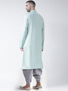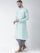 Elevate your style with this elegant Blue color Kurta Dhoti Set. Made from a premium Cotton Blend Fabric and Solid pattern, it offers unmatched comfort and sophistication. Perfect for any festive occasion.
