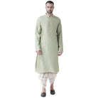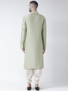 Elevate your style with this elegant Green color Kurta Dhoti Set. Made from a premium Cotton Blend Fabric and Solid pattern, it offers unmatched comfort and sophistication. Perfect for any festive occasion.