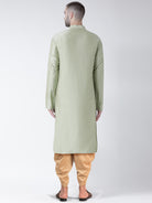 Elevate your style with this elegant Green color Kurta Dhoti Set. Made from a premium Cotton Blend Fabric and Solid pattern, it offers unmatched comfort and sophistication. Perfect for any festive occasion.
