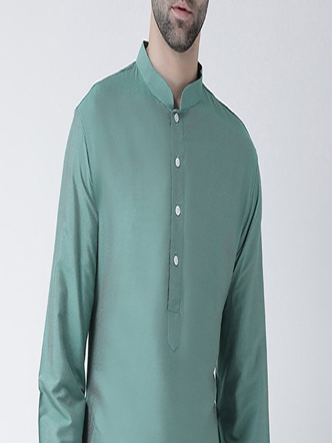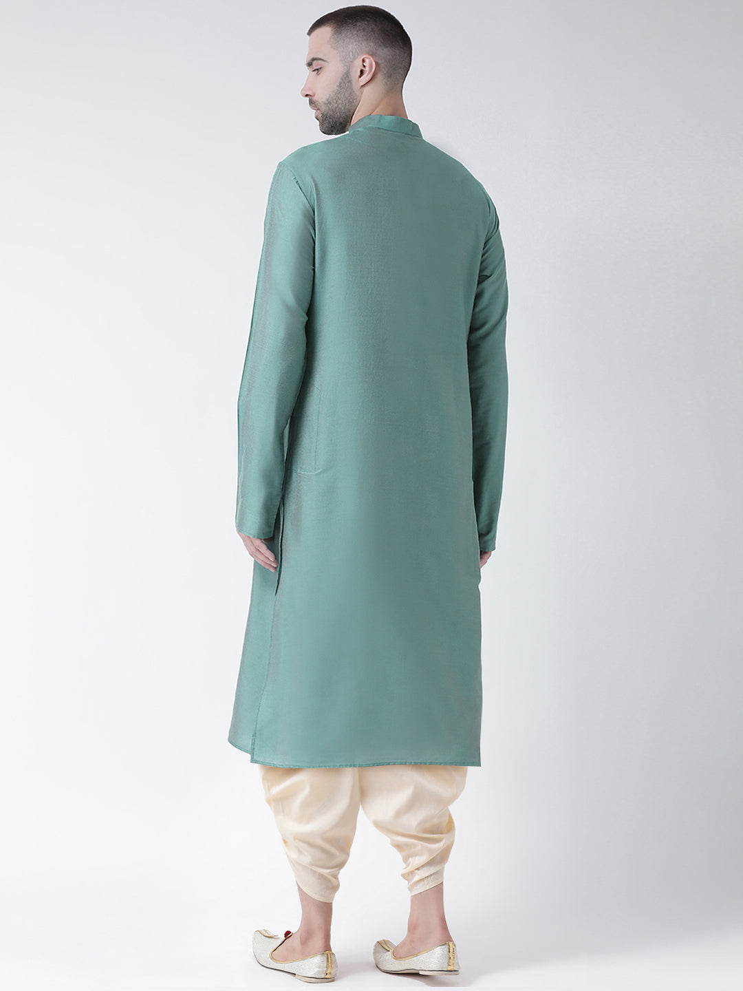 Elevate your style with this elegant Green color Kurta Dhoti Set. Made from a premium Cotton Blend Fabric and Solid pattern, it offers unmatched comfort and sophistication. Perfect for any festive occasion.