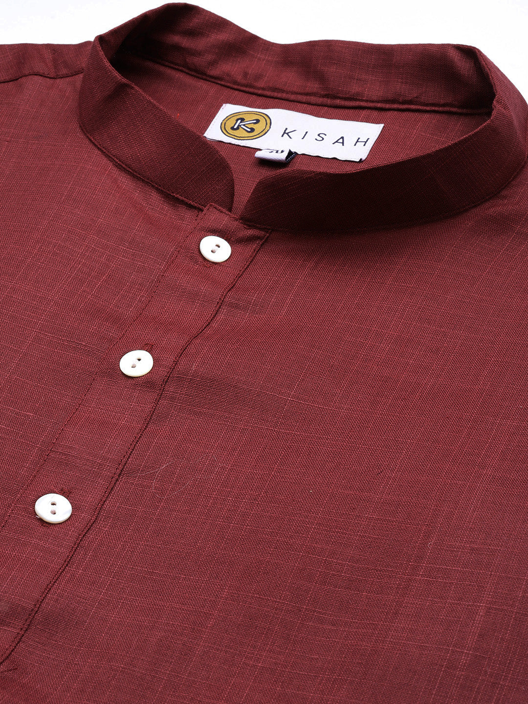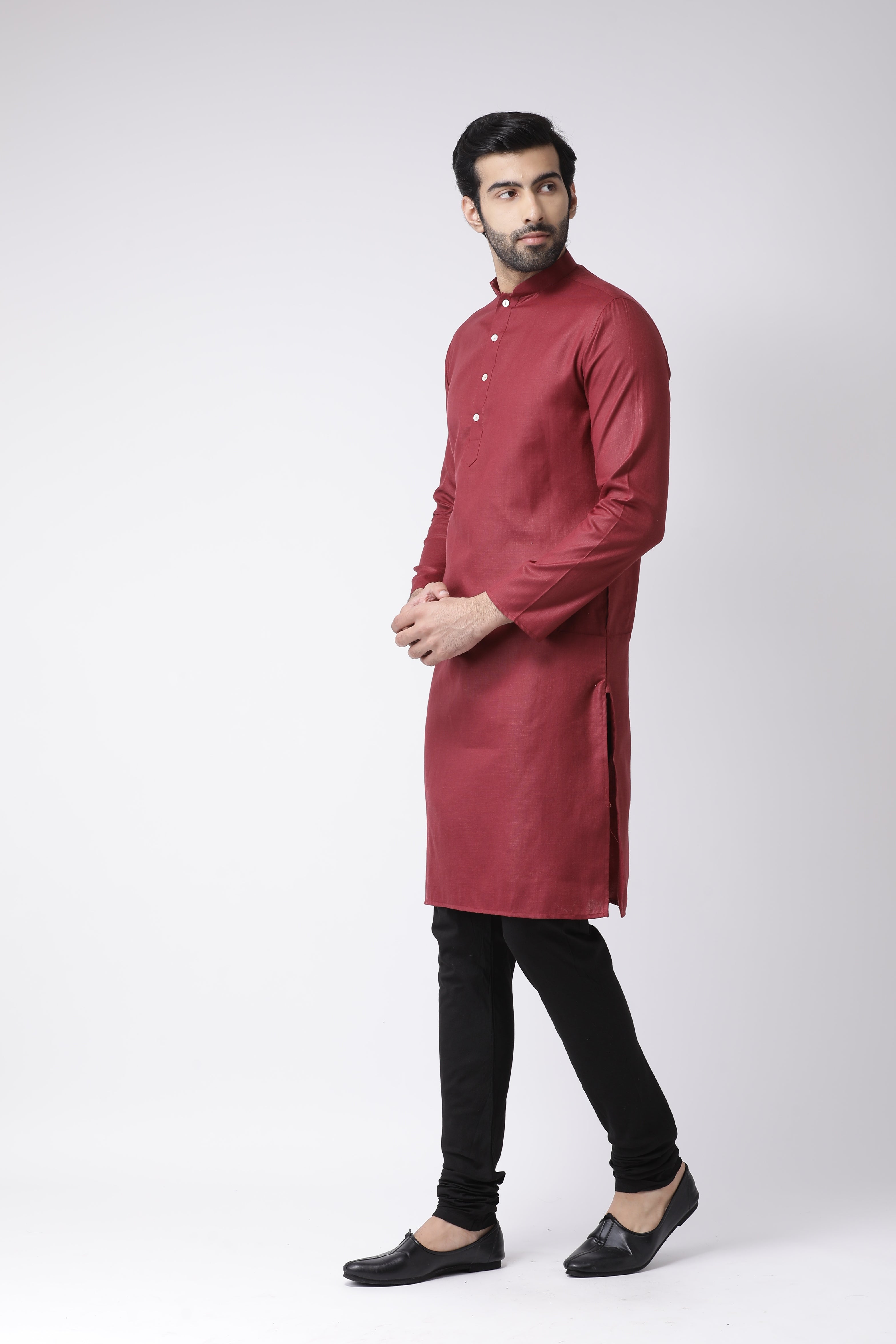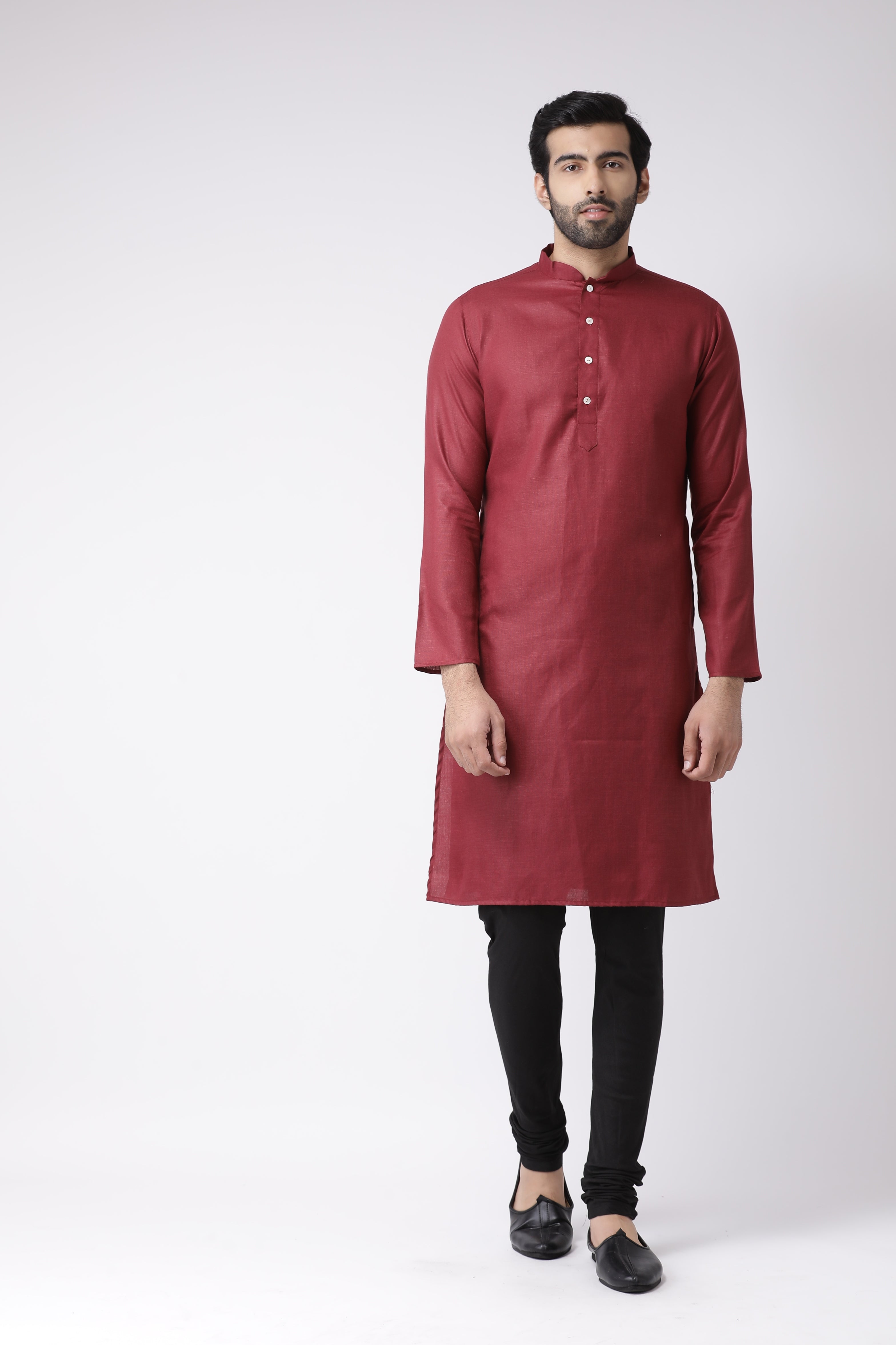 Elevate your style with this elegant Maroon color Kurta. Made from a premium Silk Blend Fabric and Solid Dyed pattern, it offers unmatched comfort and sophistication. Perfect for any festive occasion.