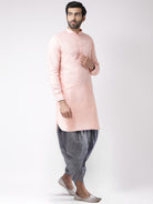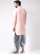 Elevate your style with this elegant Pink color Kurta Dhoti Set. Made from a premium Cotton Blend Fabric and Solid pattern, it offers unmatched comfort and sophistication. Perfect for any festive occasion.