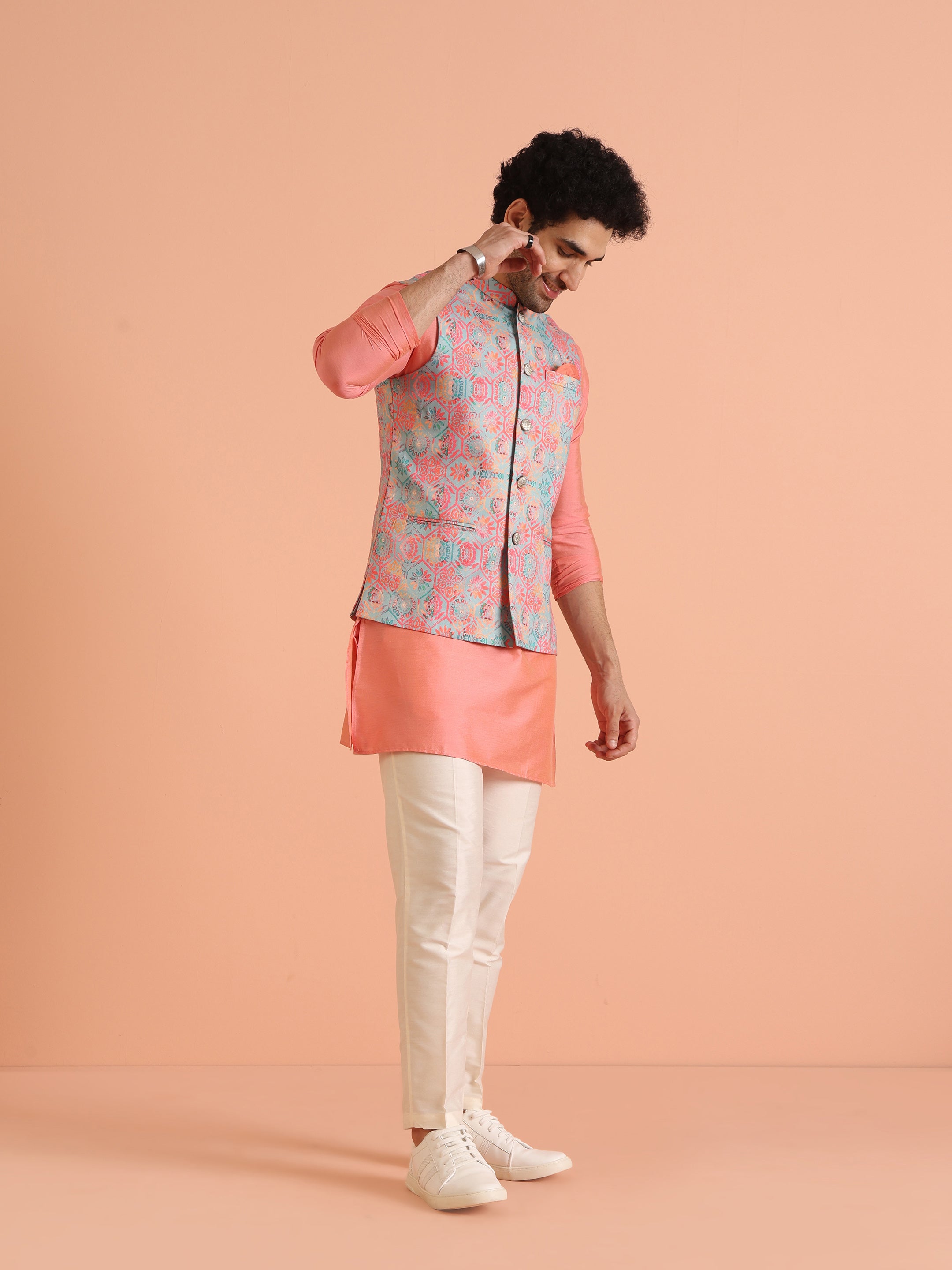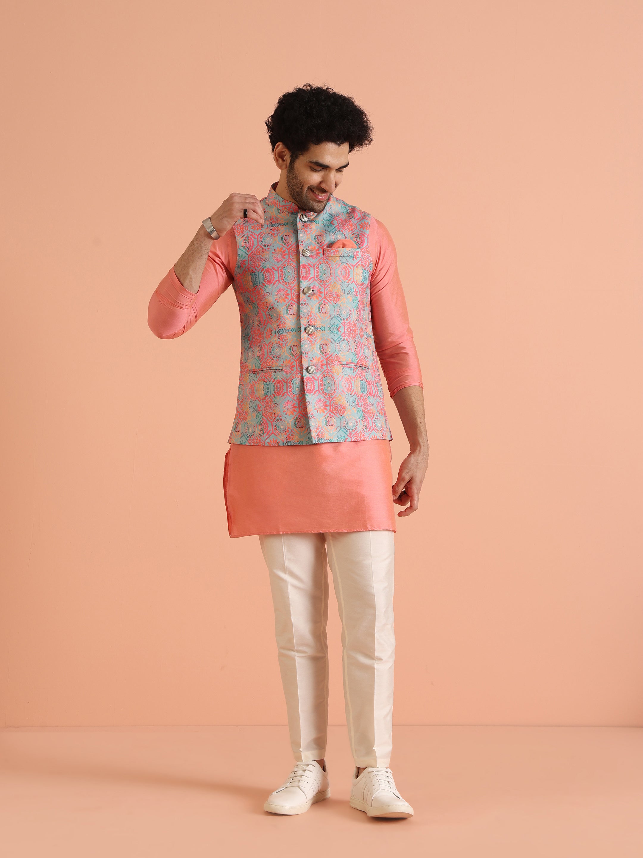With its regular fit, this jacket ensures comfort while maintaining a sharp appearance. Whether you’re dressing up for a wedding, festive celebration, or cultural event, it pairs effortlessly with a kurta or trousers for a polished and stylish ensemble.