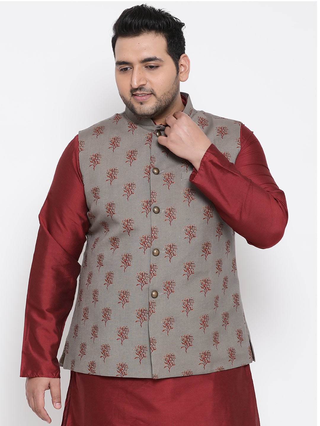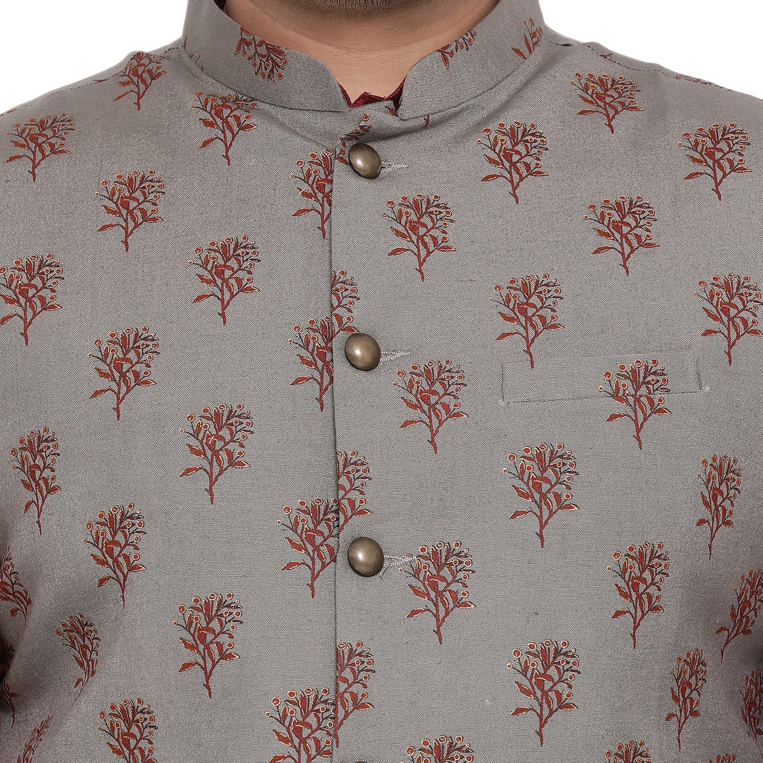This Nehru Jacket with Grey Color is an elegant mandarin collar style that is perfect for occasional wear. With Printed Pattern and comfortable Cotton Blend fabric, it will make you look stylish.