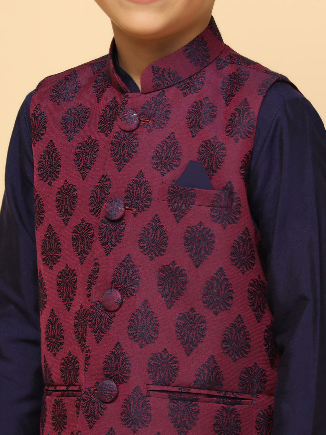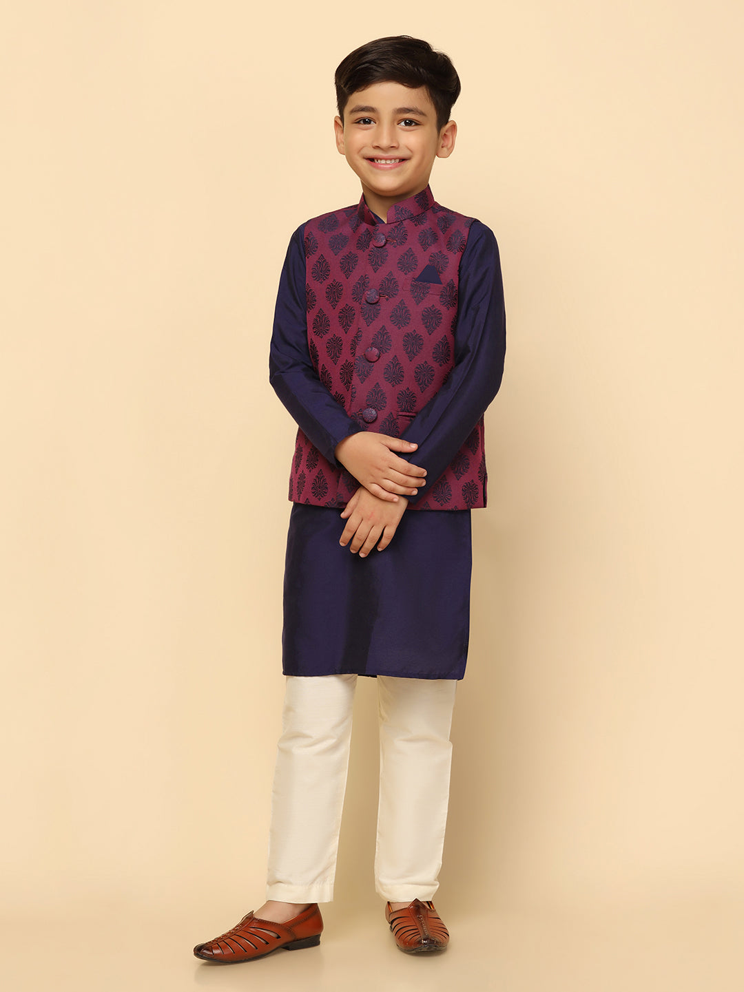 Boys Purple Kurta Jacket Pyjama Sets