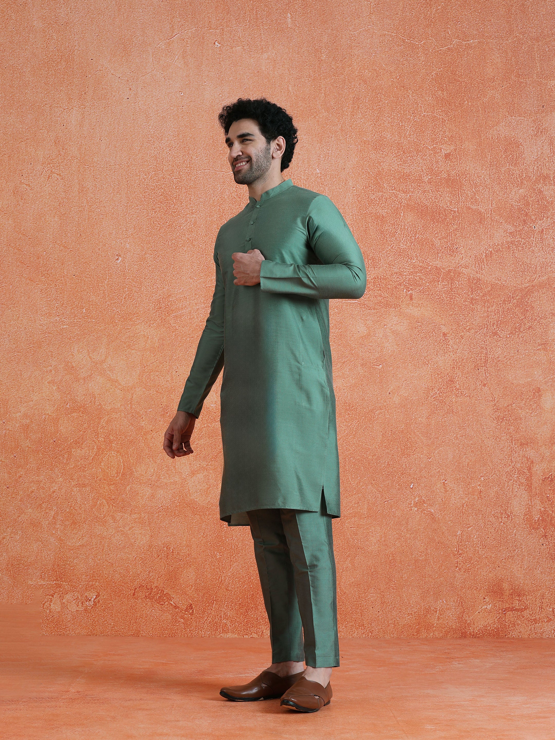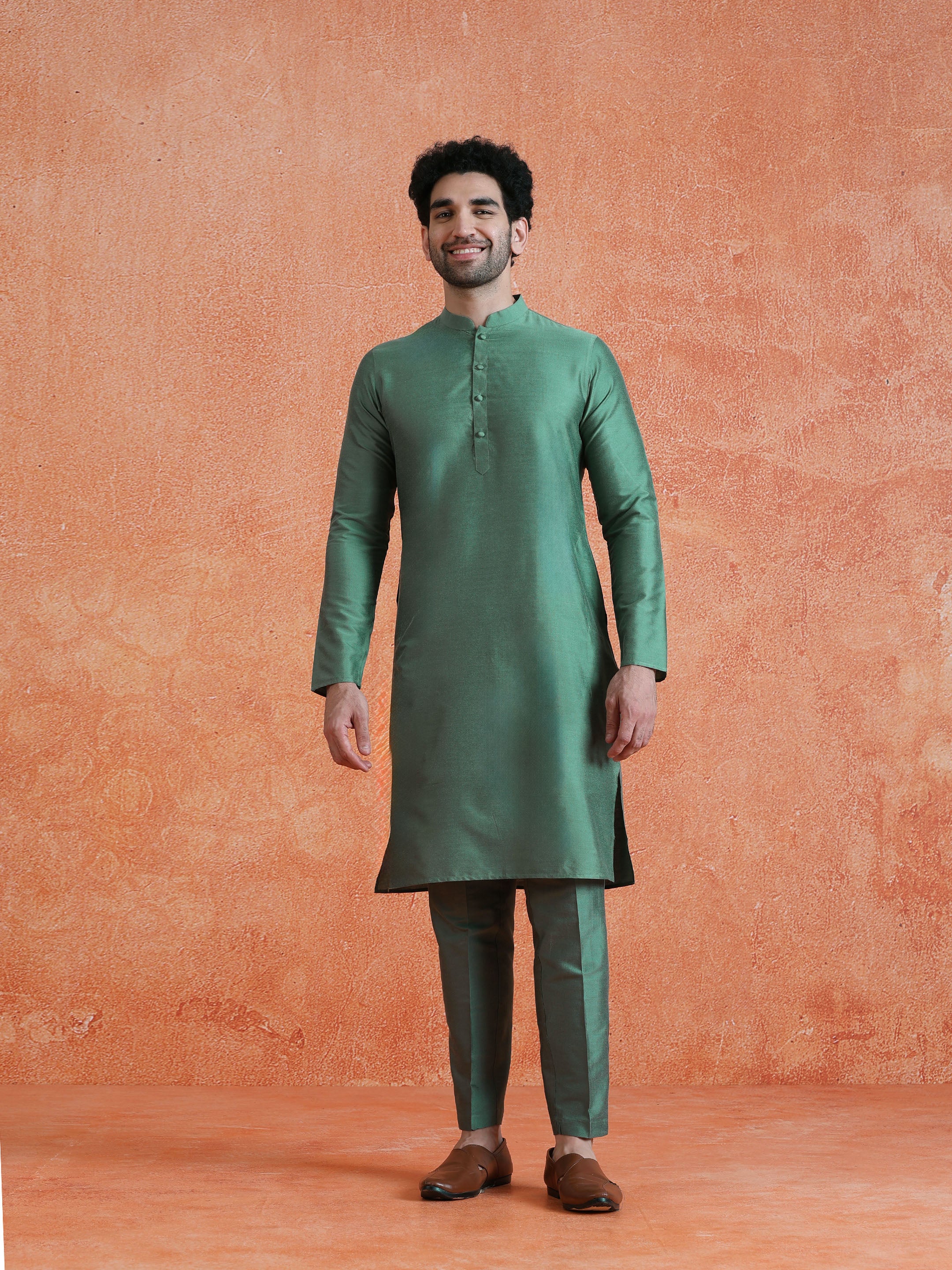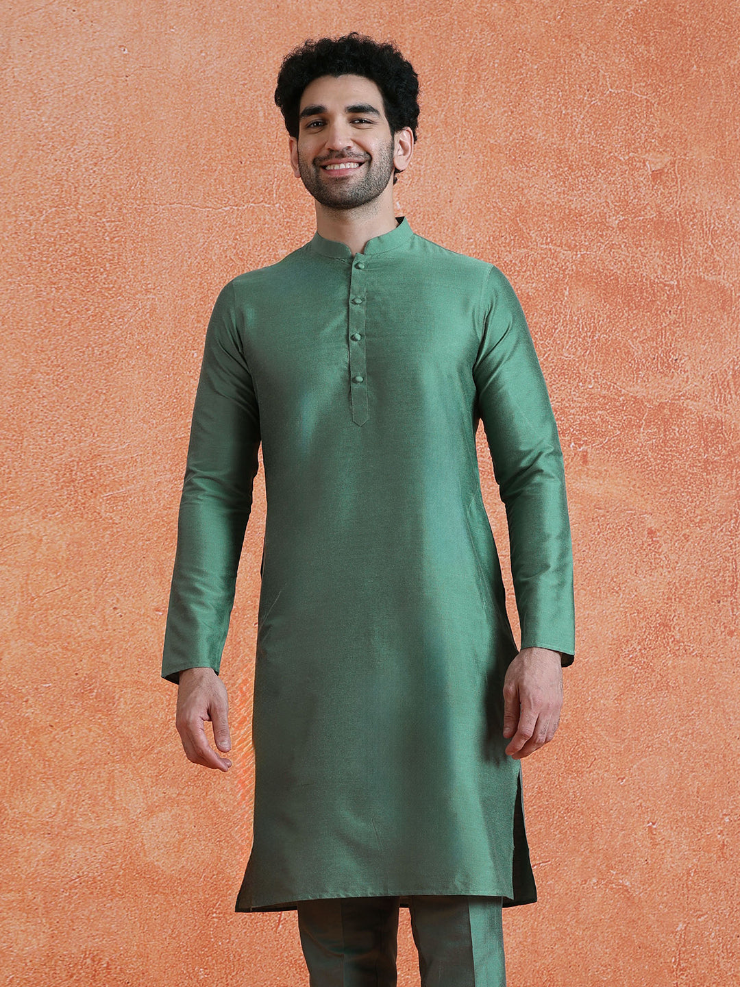Sage Cotton Blend Solid Plain Kurta, Perfect festive ethnic wear for men, ideal festive and casual occasions.
