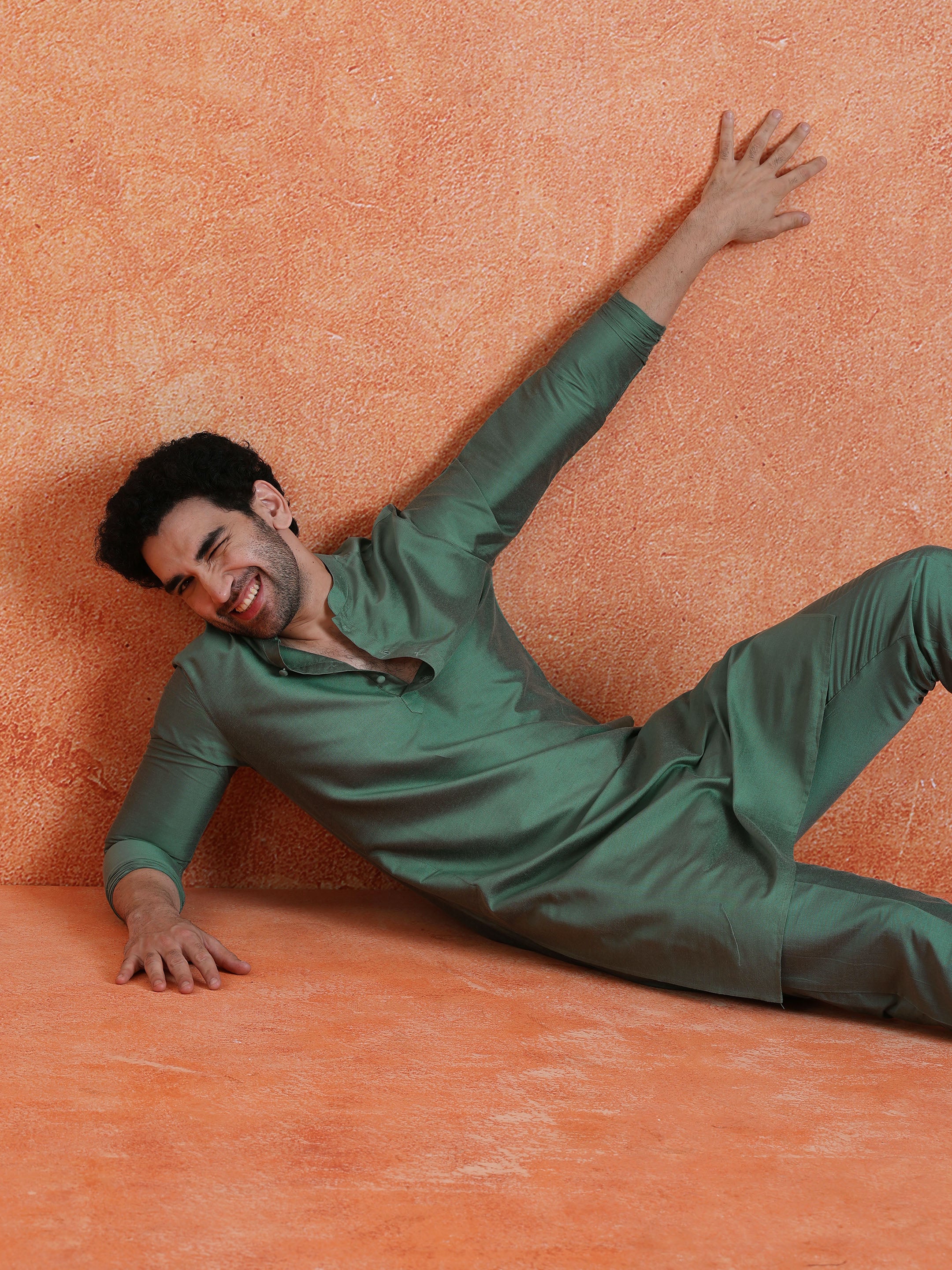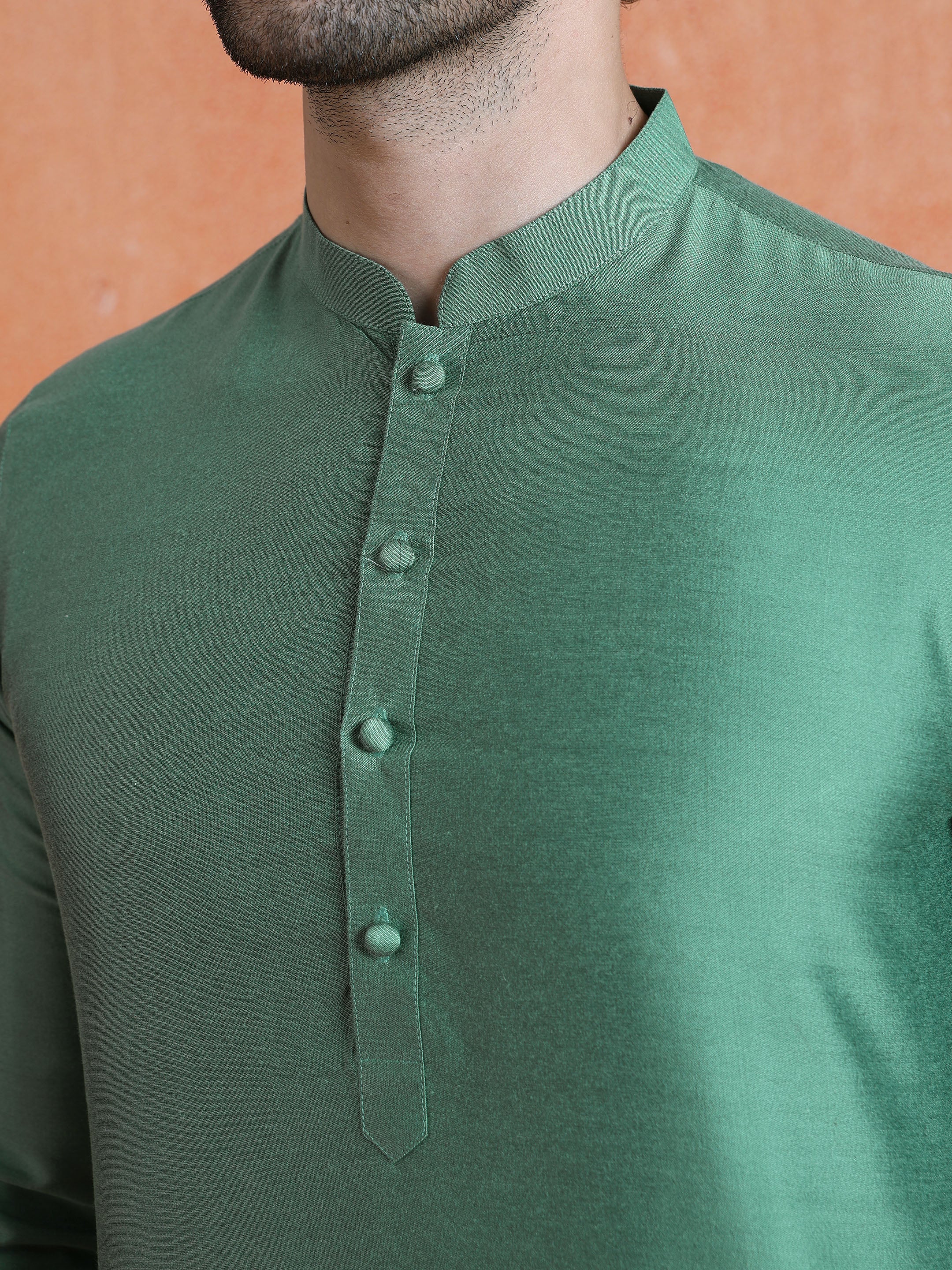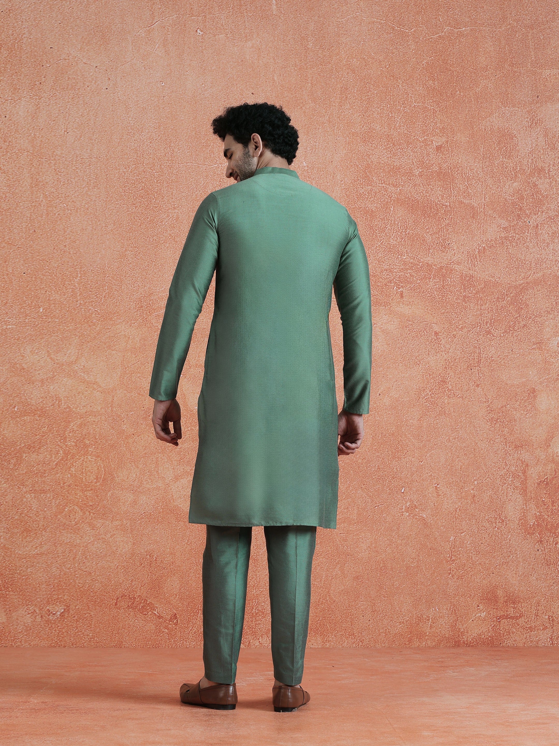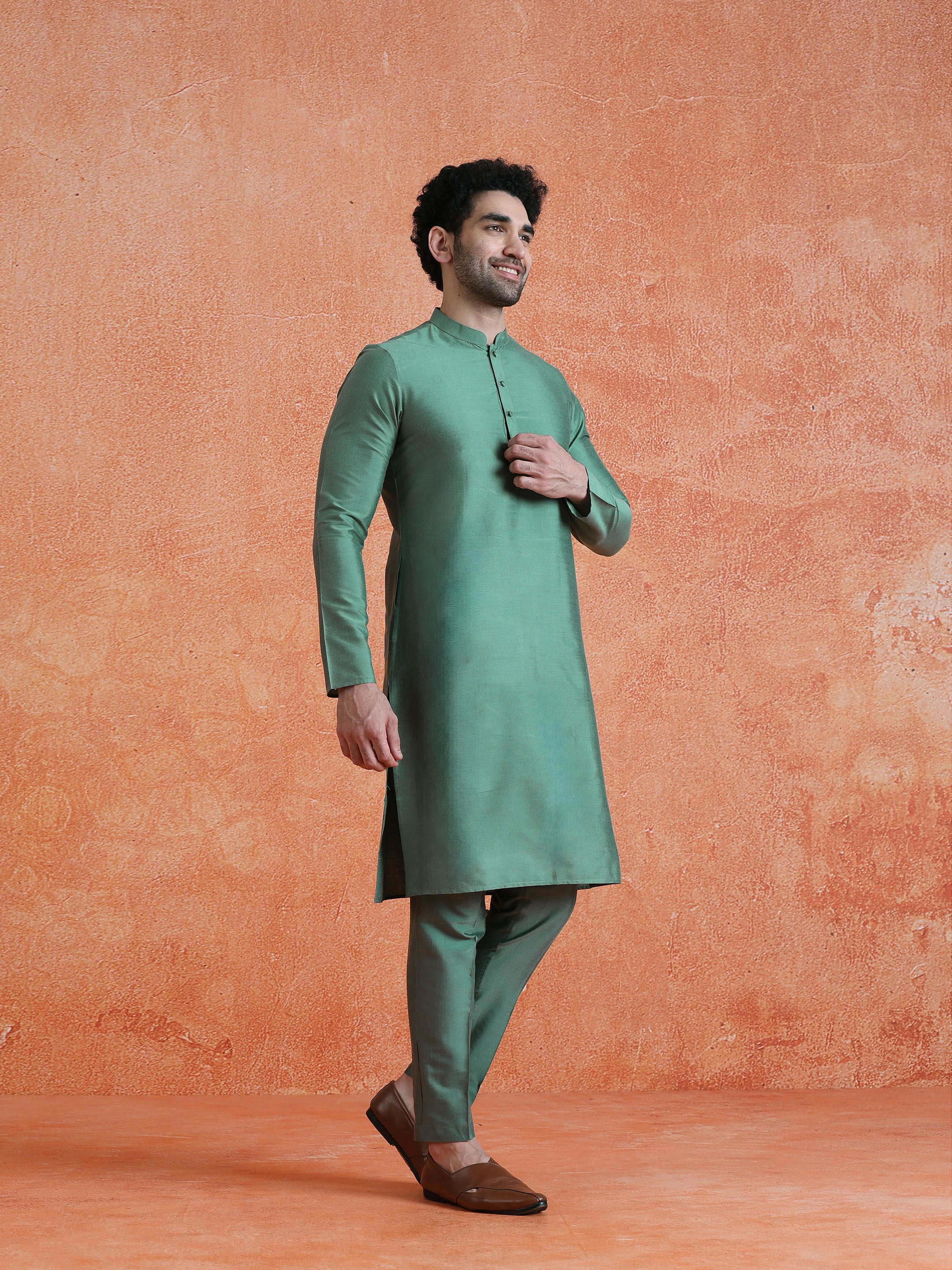 Sage Cotton Blend Solid Plain Kurta, Perfect festive ethnic wear for men, ideal festive and casual occasions.