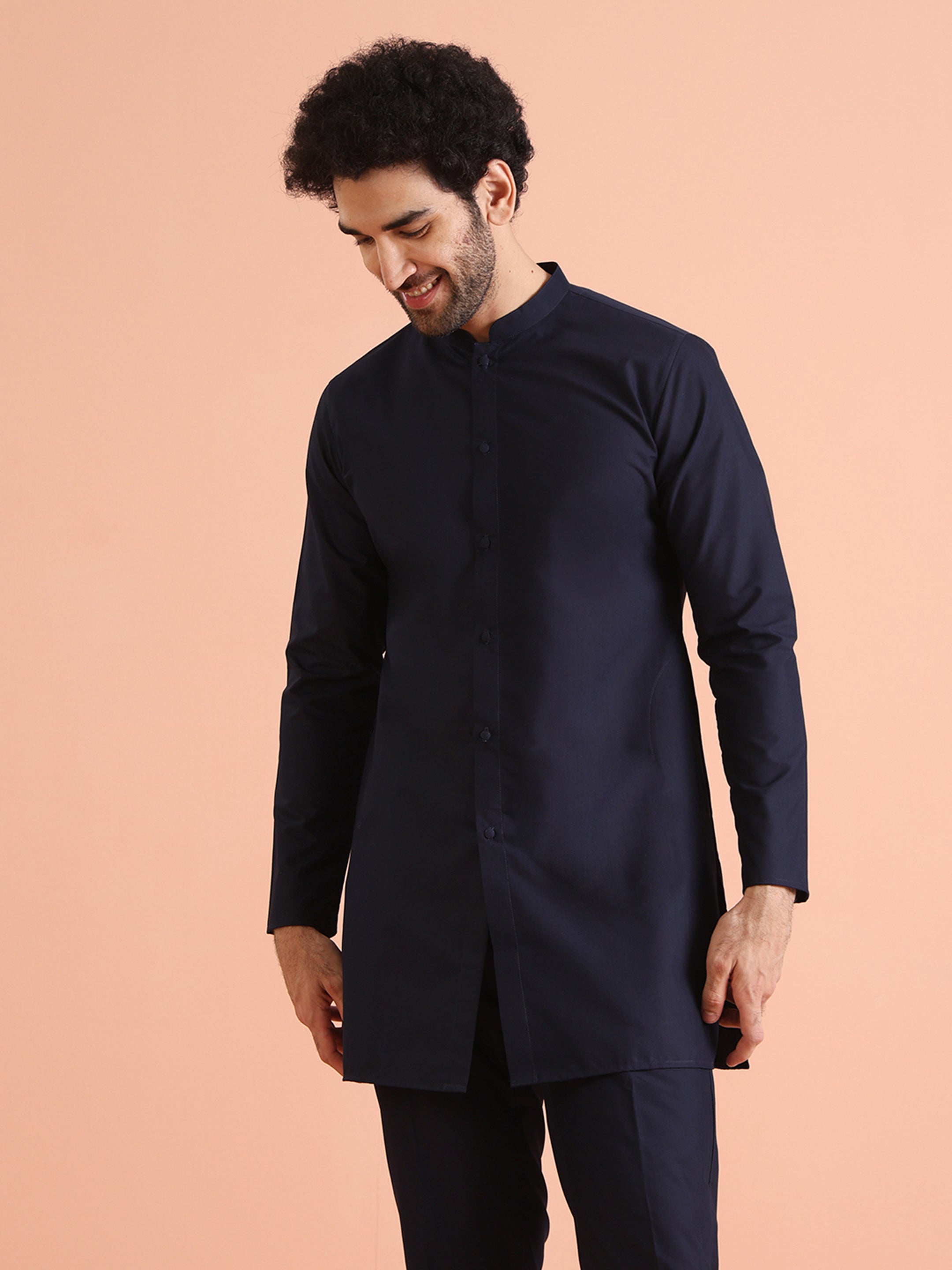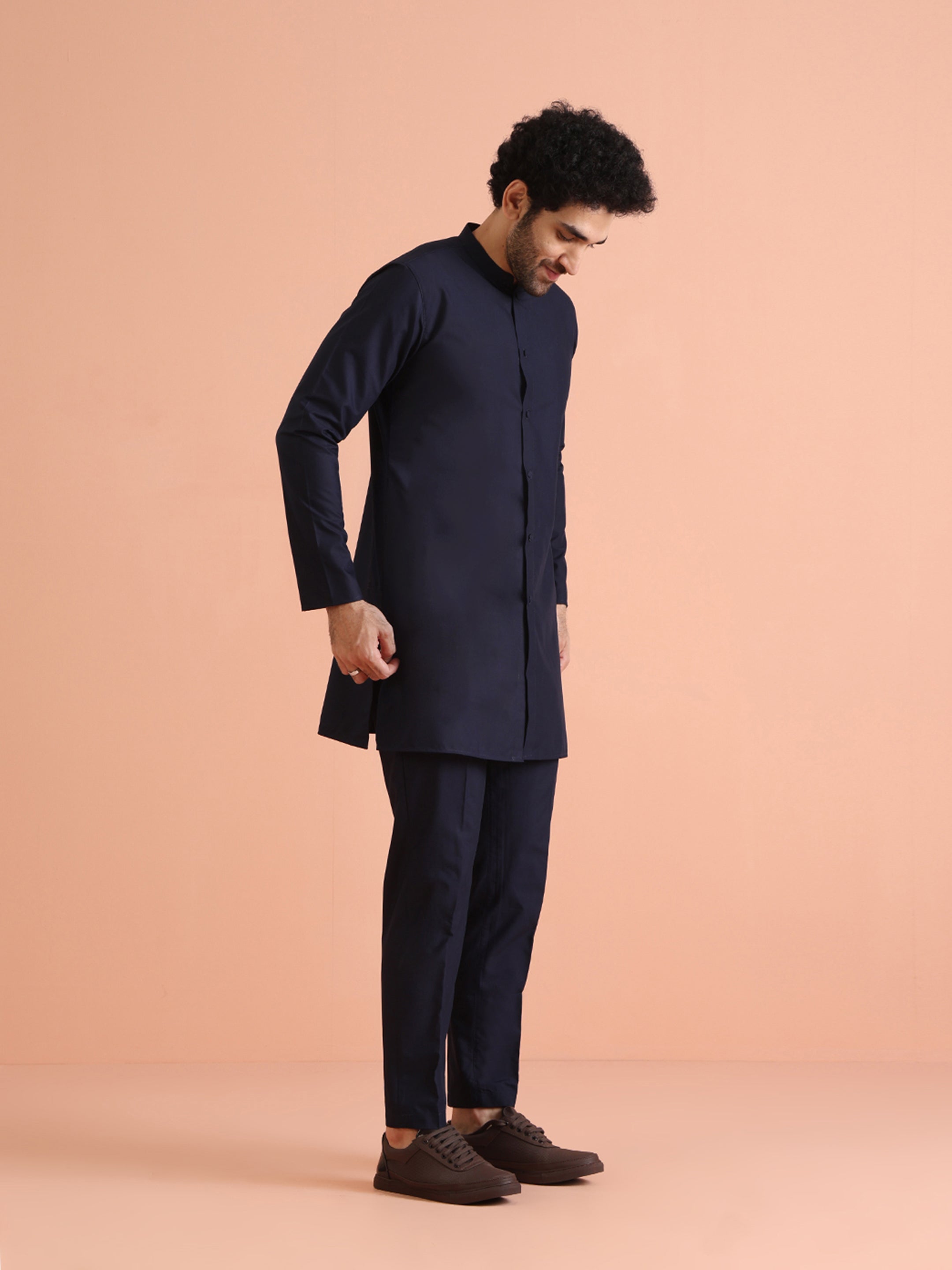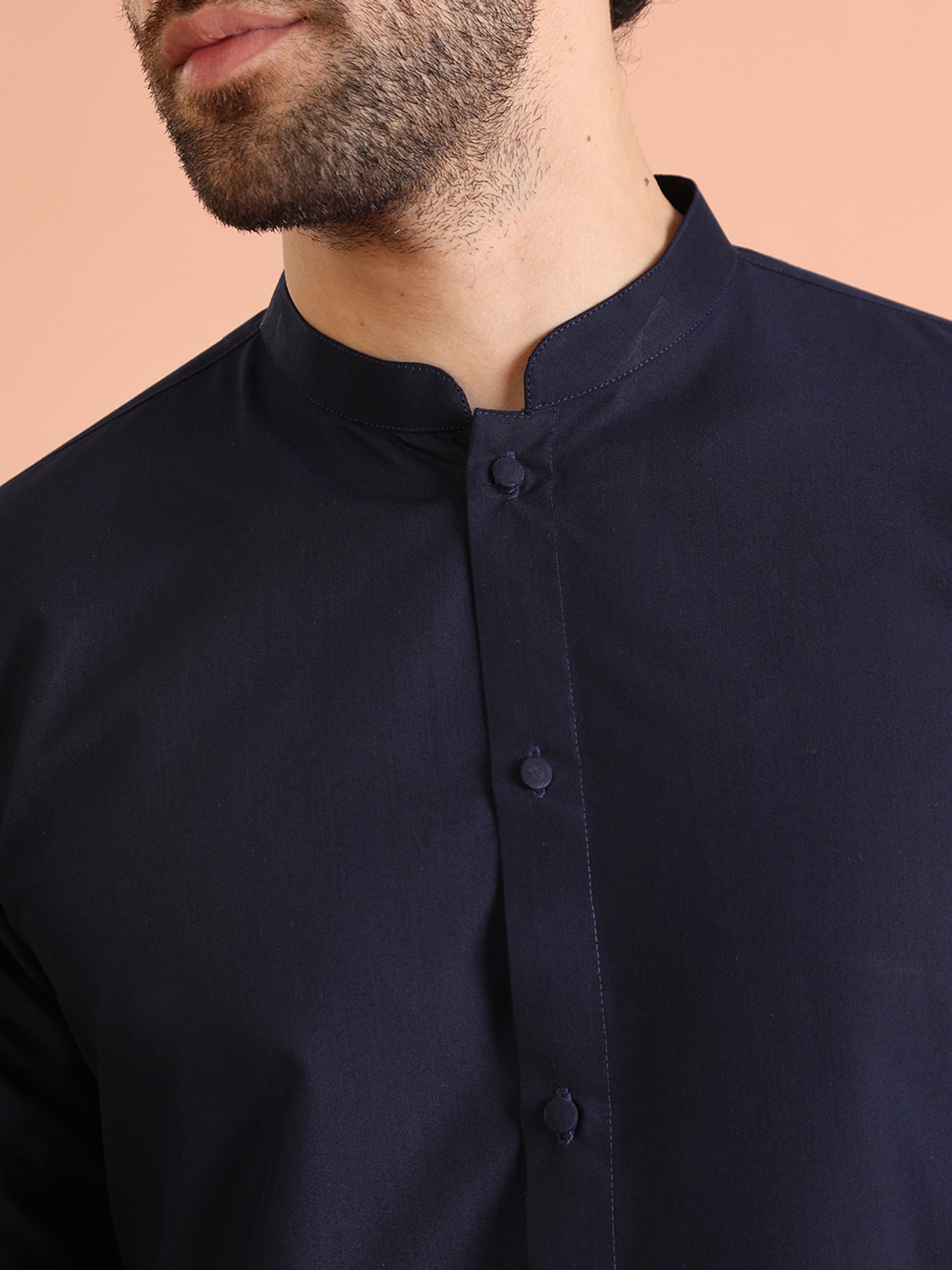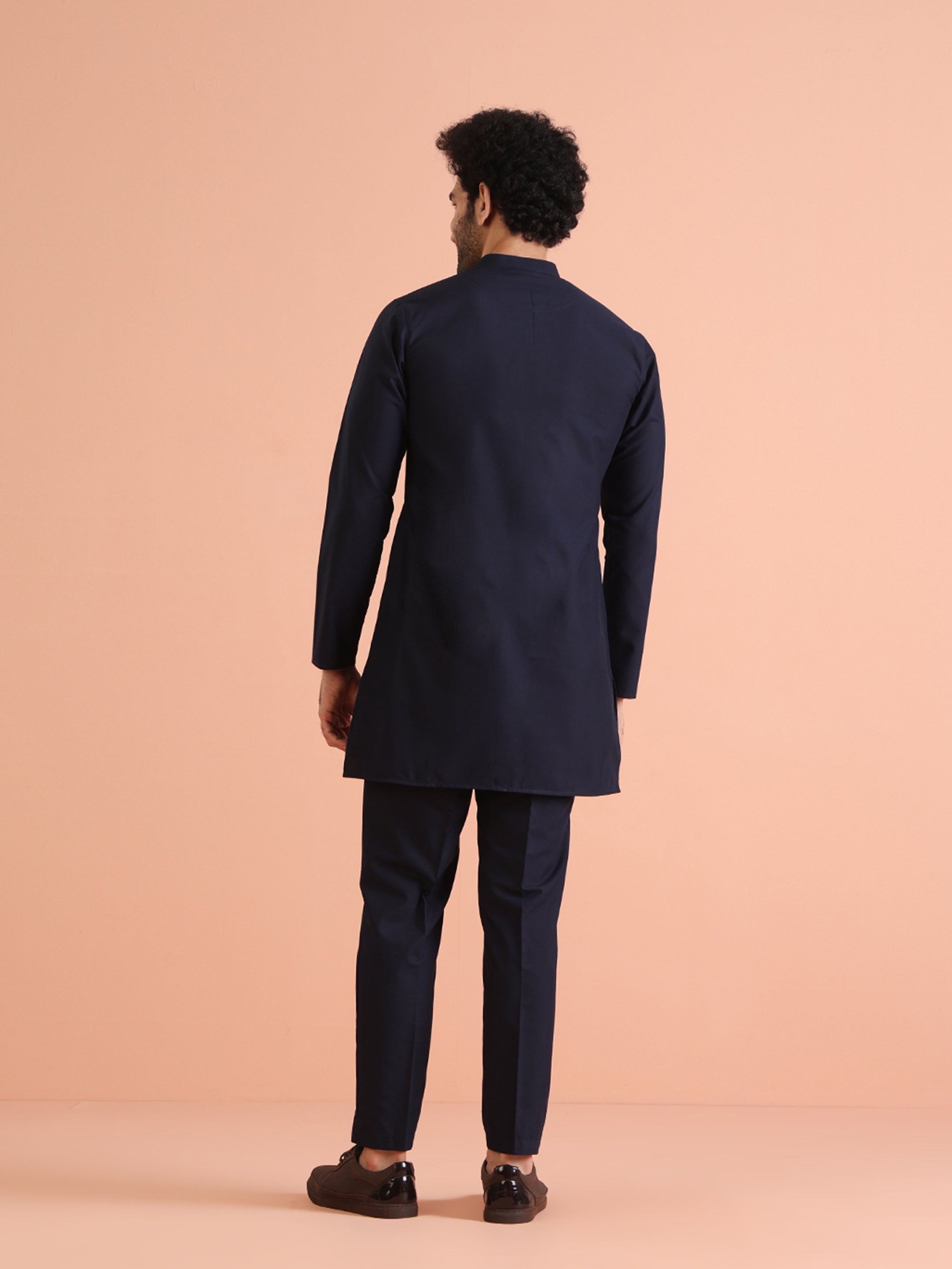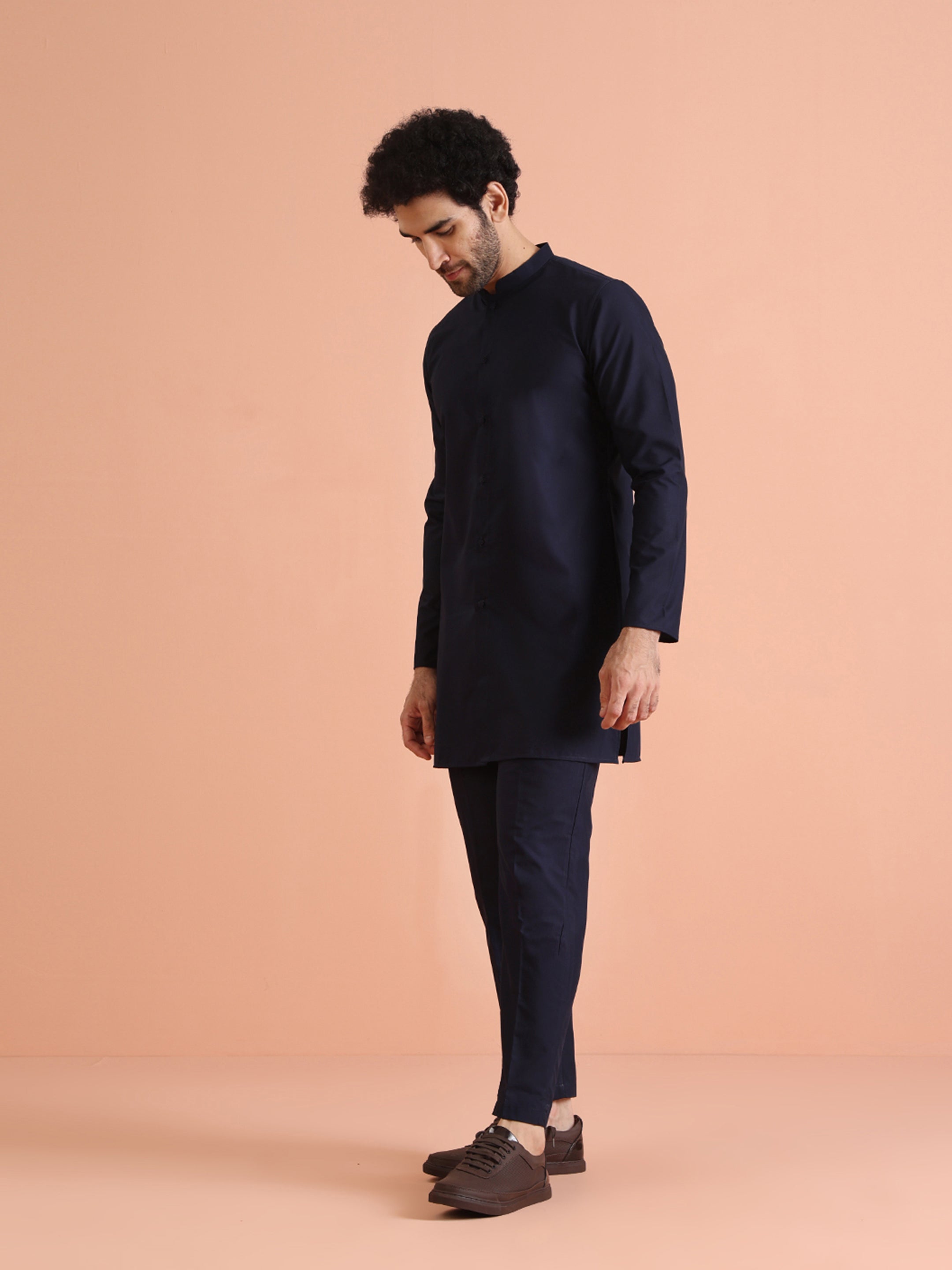 Experience classic elegance with this Men's Navy Blue Color Cotton Blend Kurta Trouser Set. The Solid Pattern adds a refined touch, while the breathable fabric ensures comfort throughout the day. Ideal for festive events or casual wear, this Kurta Trouser Set is a wardrobe essential.