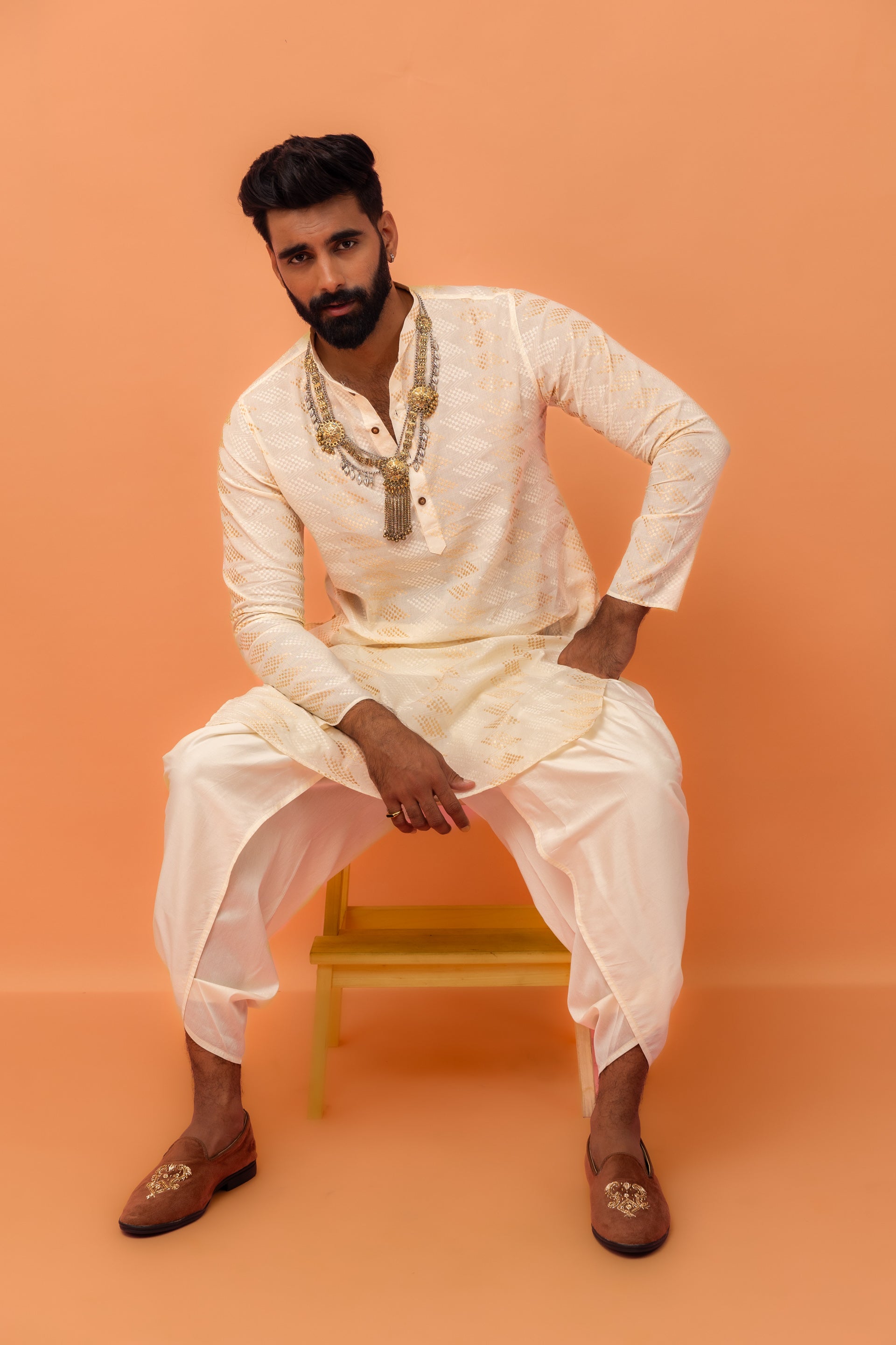 Simple yet stylish, this White Cotton Blend Kurta with printed detailing is a must-have for your ethnic wardrobe. The regular fit offers comfort, making it ideal for festive occasions or casual wear. Pair it with your favorite bottoms to complete the look.