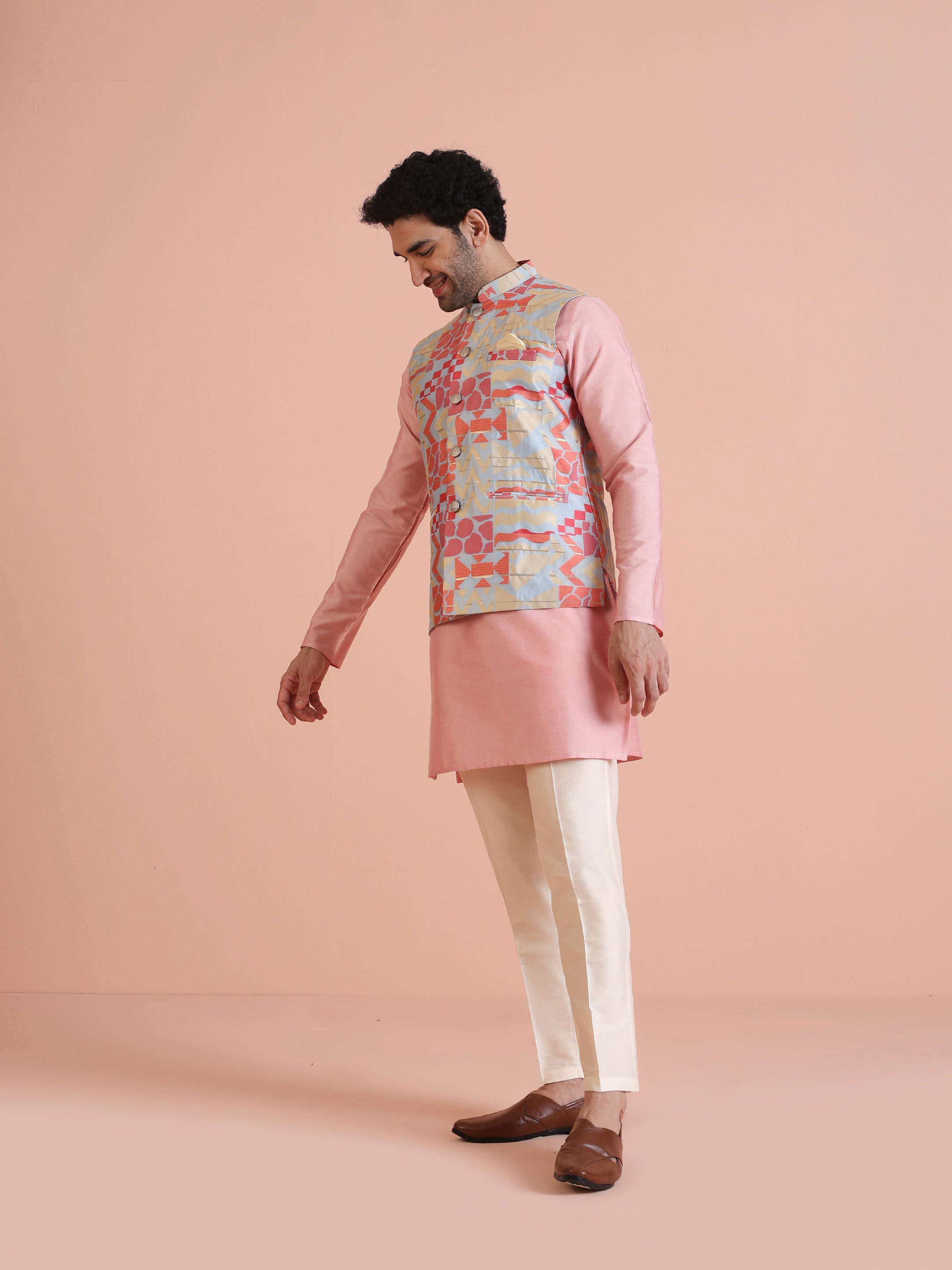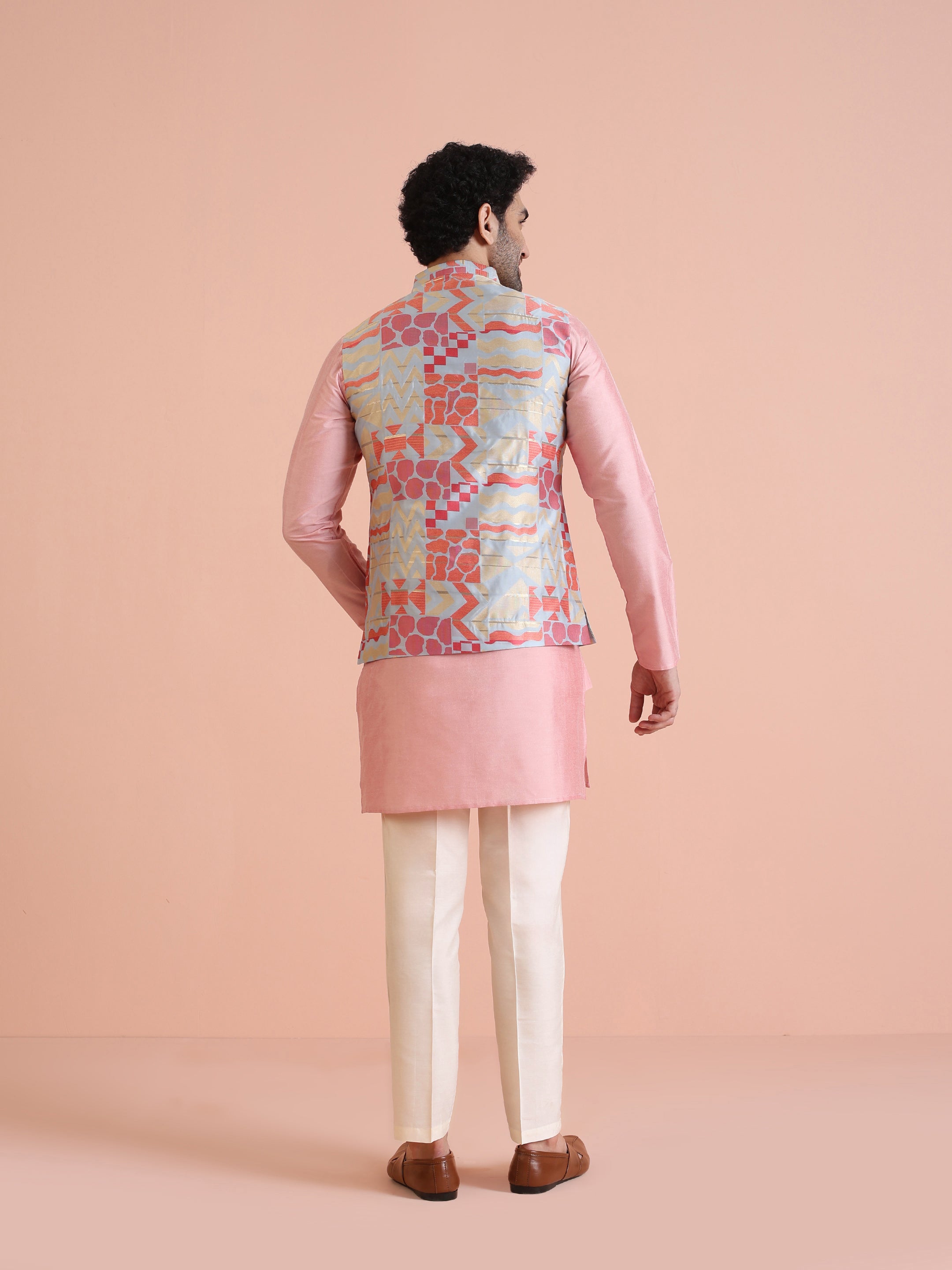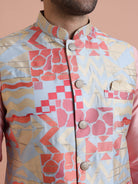 This multi-coloured silk blend jacket features a textured design and regular fit. Ideal for pairing with kurtas, it adds a vibrant touch to your ethnic collection.