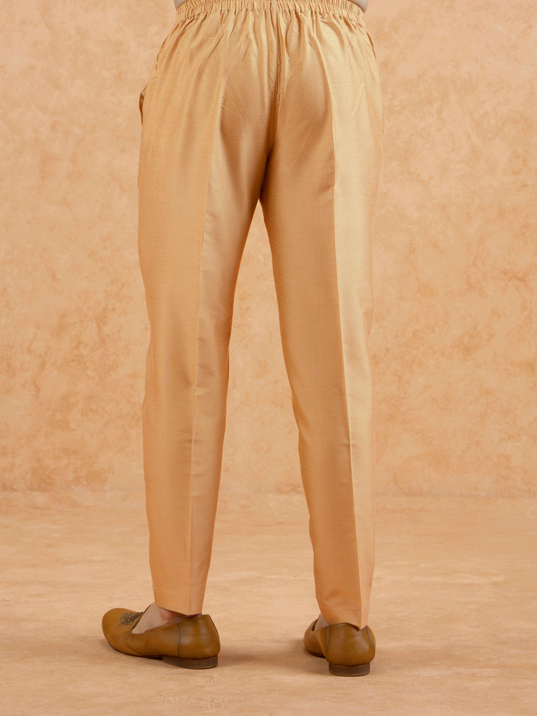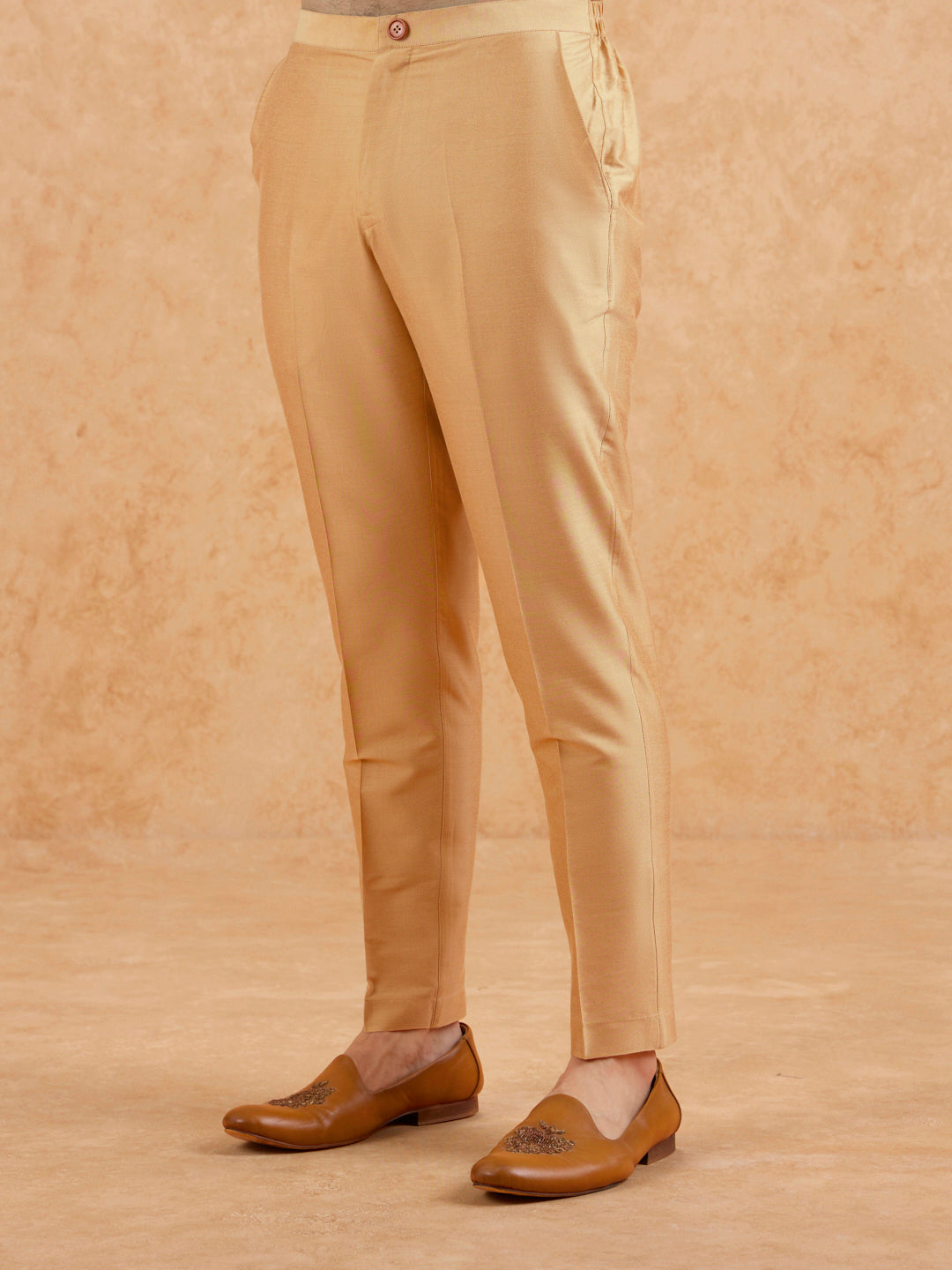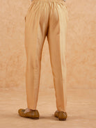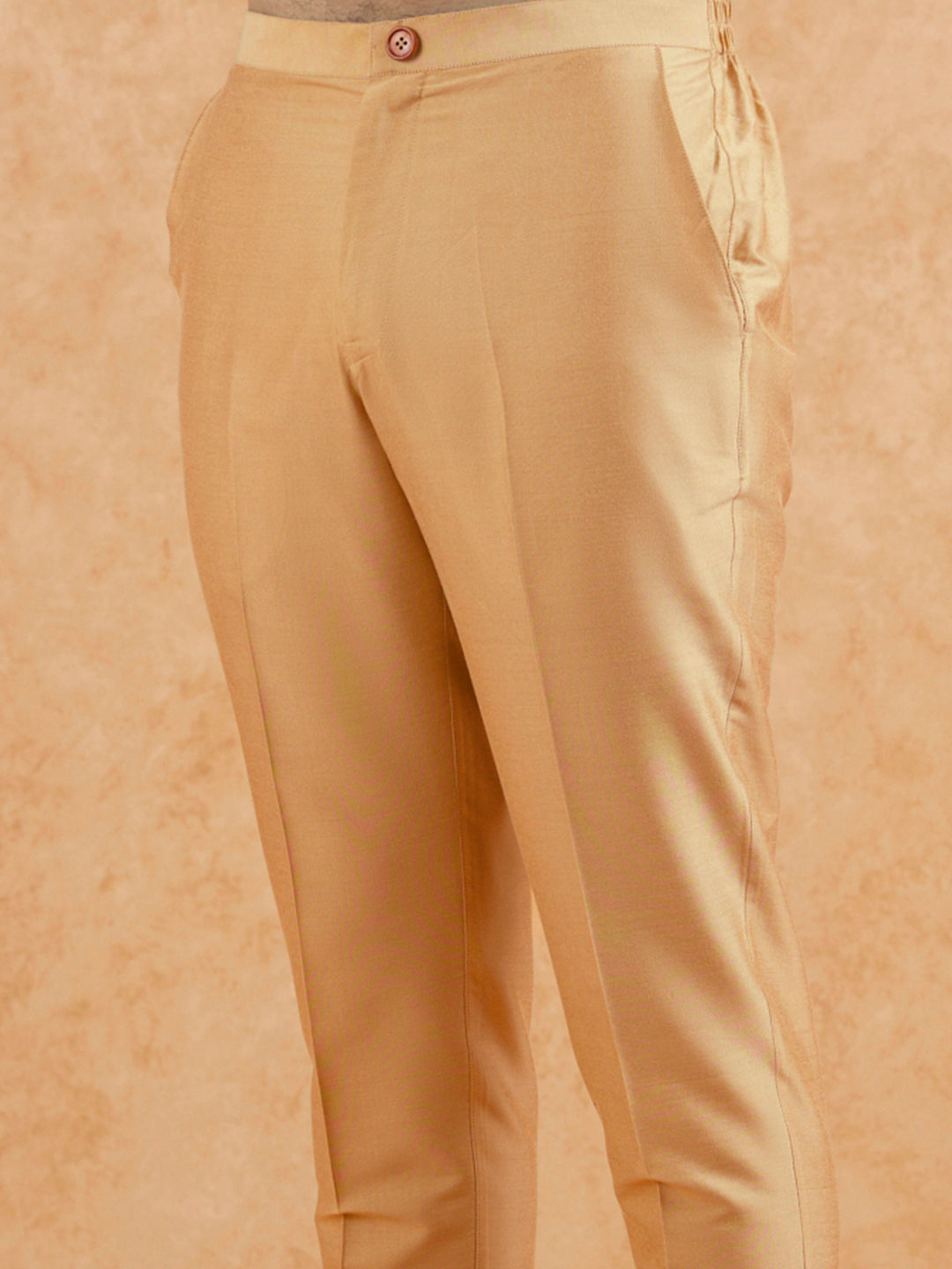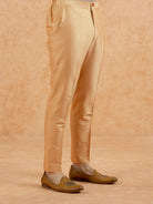 Beige blended solid trouser for men. Ideal bottomwear for kurtas and sherwanis. Slim fit, comfortable, and versatile for festive wear.