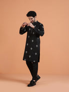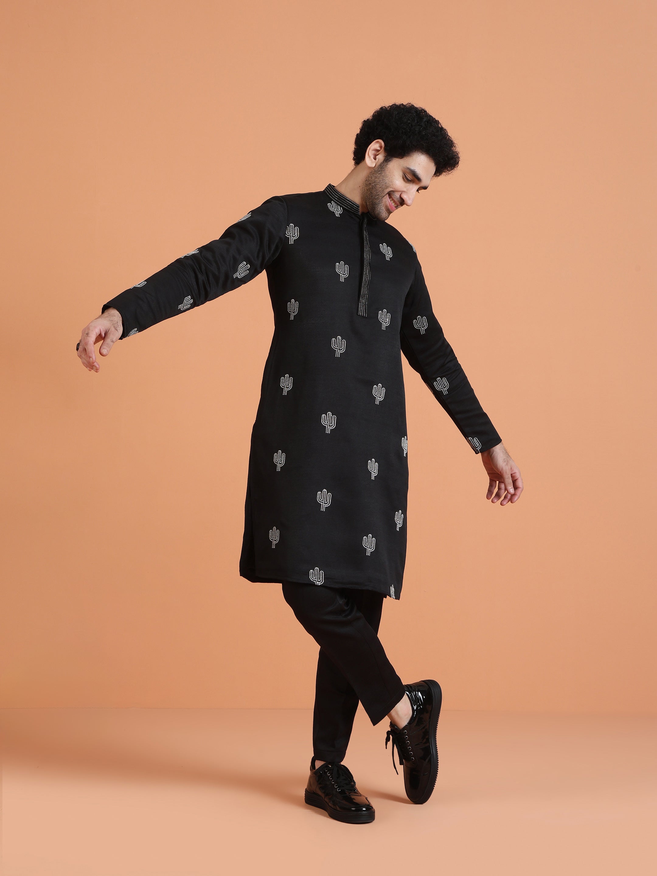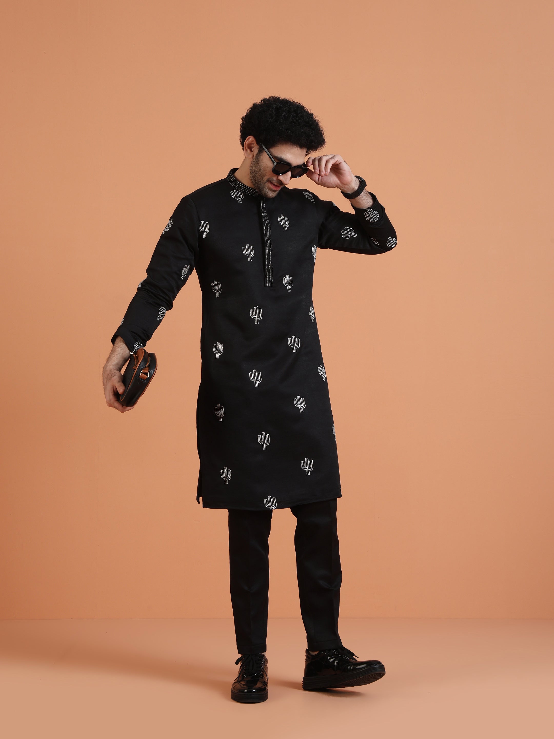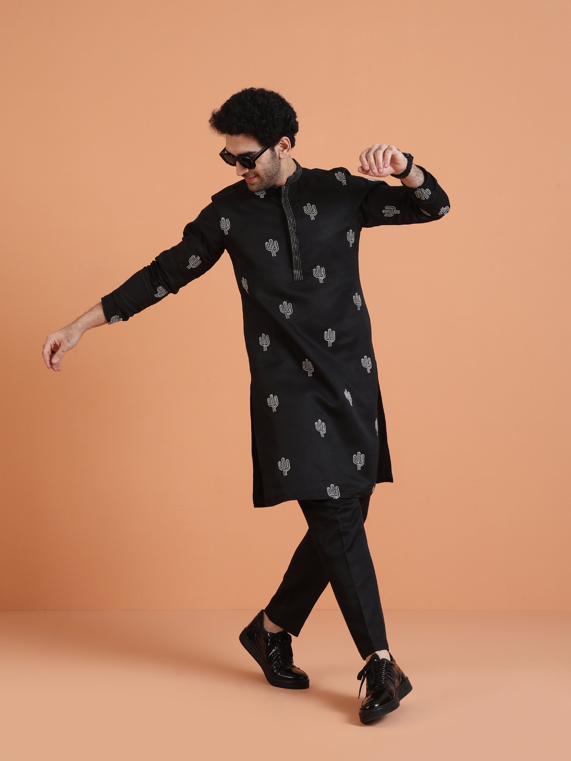 Black Embroidered Kurta with Black Trouser Set – Contemporary Festive Outfit