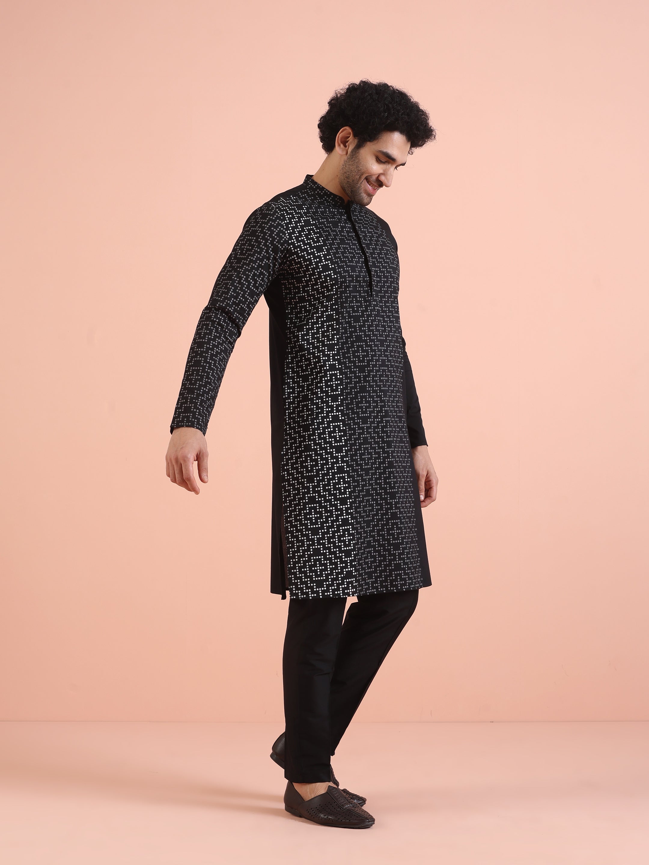 Experience classic elegance with this Men Black Printed Geometric Kurta Trouser Set. The Printed Pattern adds a refined touch, while the breathable Cotton Blend fabric ensures comfort throughout the day. Ideal for festive events or casual wear, this Kurta Trouser Set is a wardrobe essential..