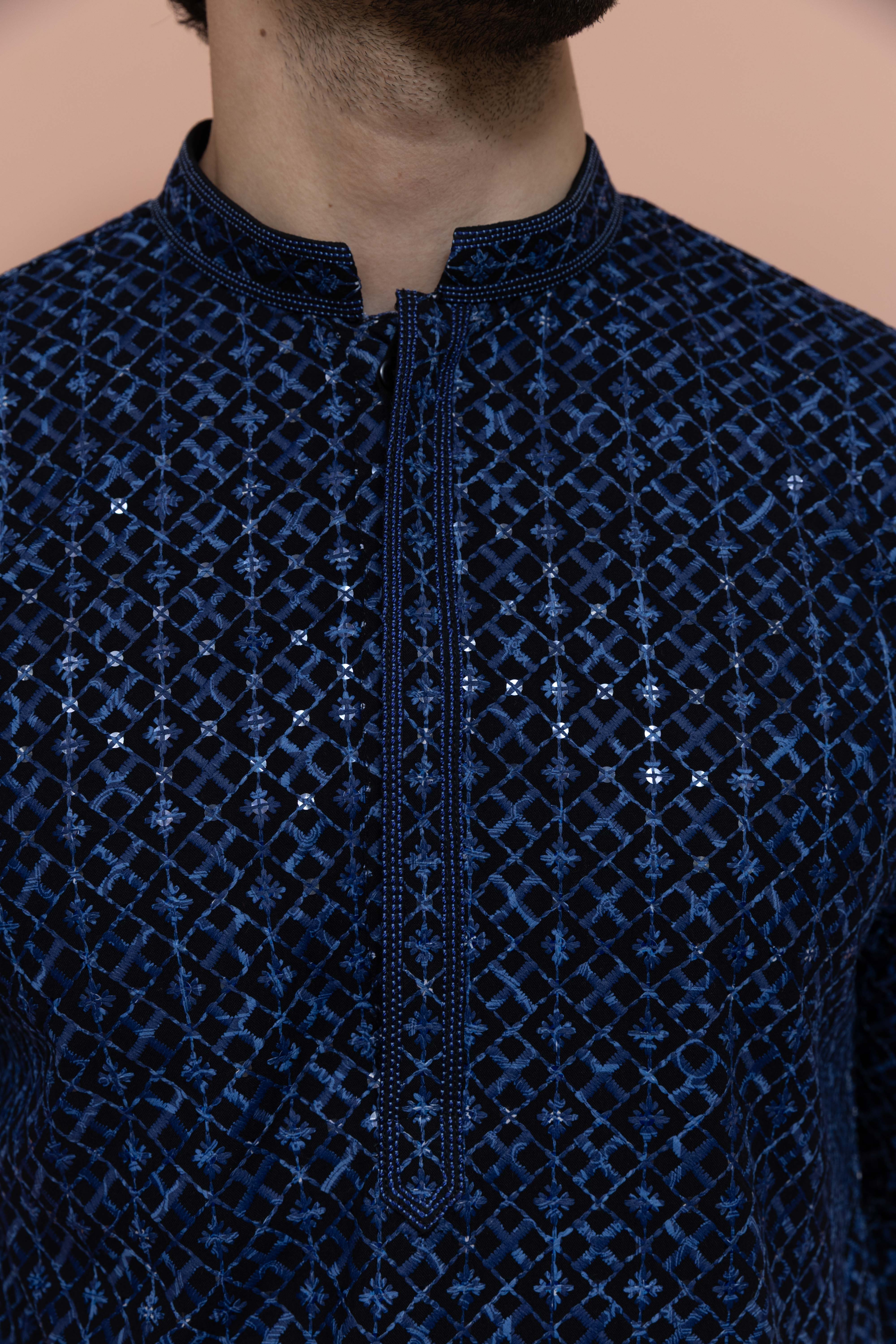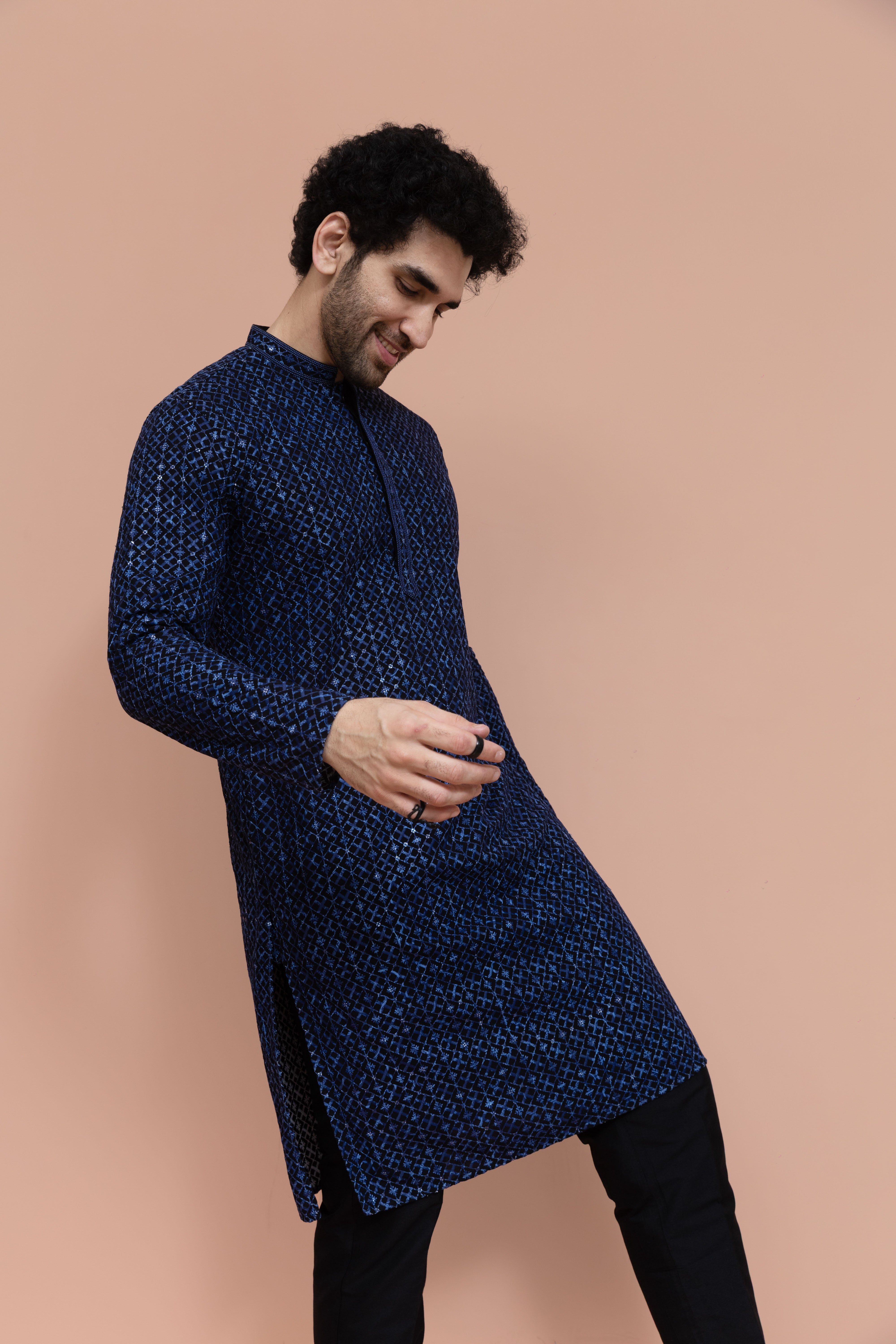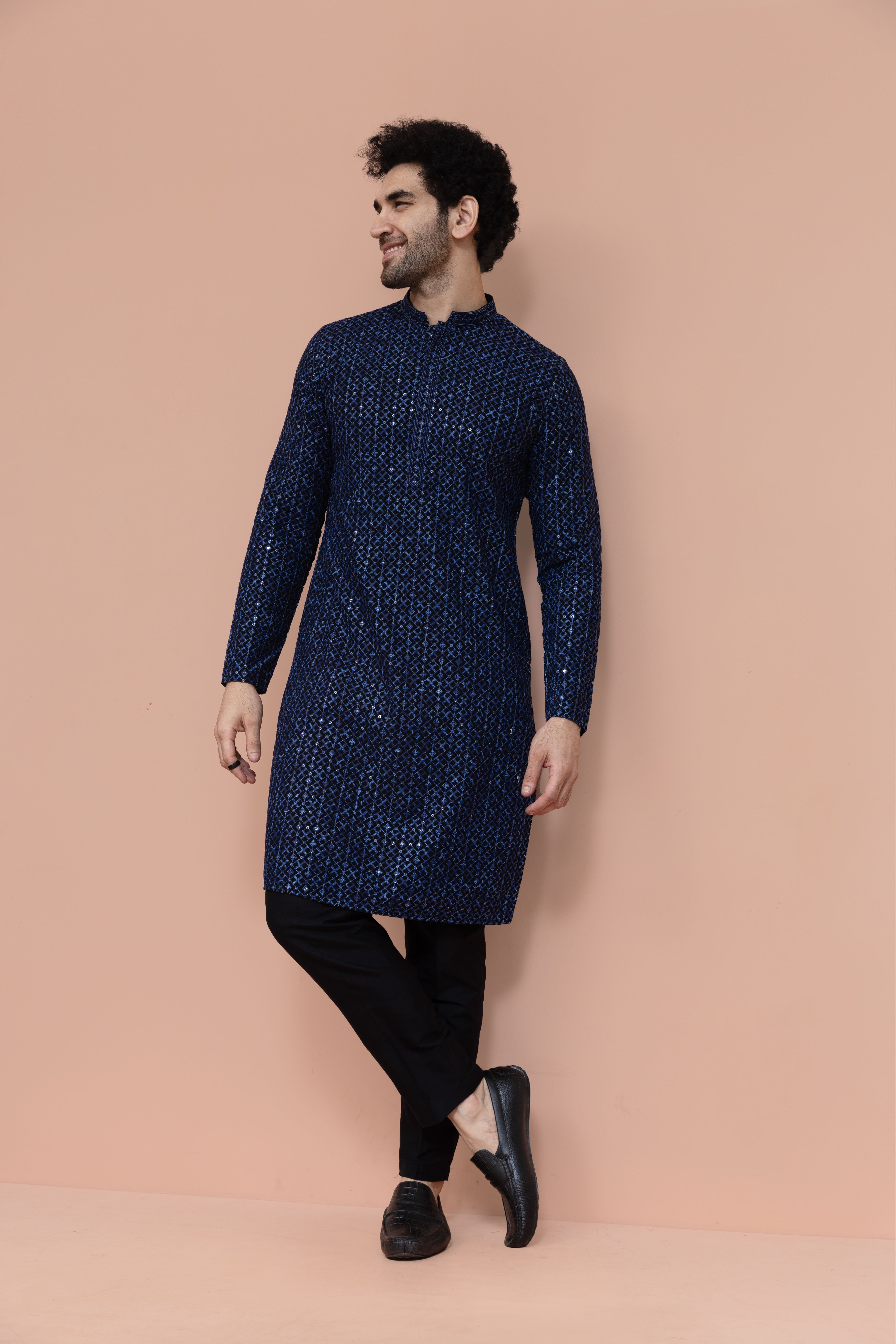 Make an unforgettable moment with this Blue Heavy Thread Work Kurta Trouser Set, designed to bring elegance and charm to every celebration. The rich Rayon fabric adds Geometric and depth, while the expertly tailored fit ensures a sharp, comfortable look. Whether it’s a wedding, festive gathering, or cultural event, this ensemble blends tradition with a modern edge, refined yet effortlessly stylish.