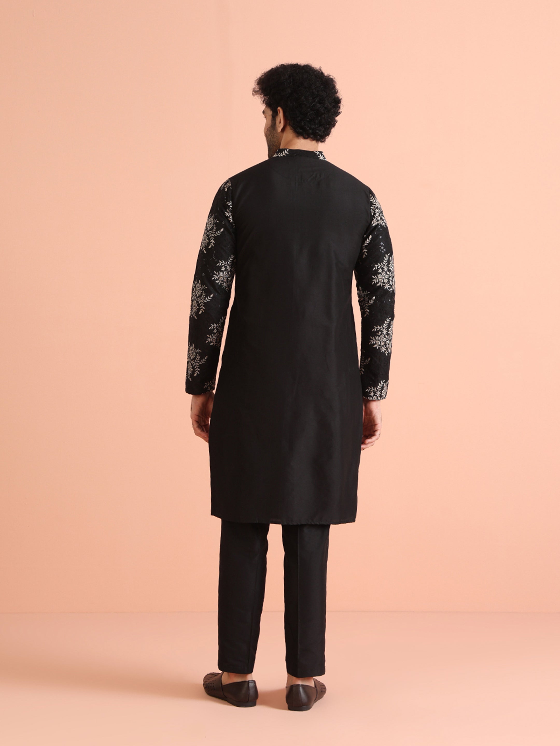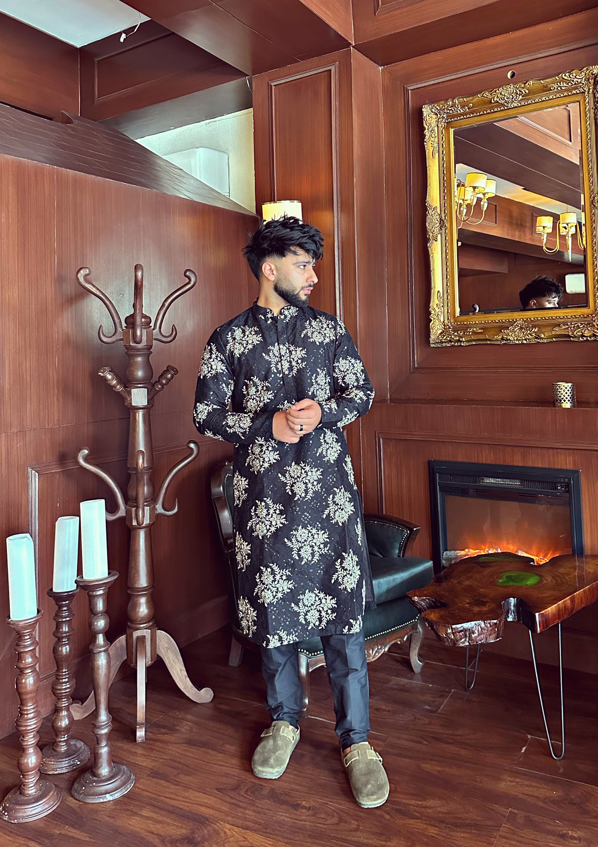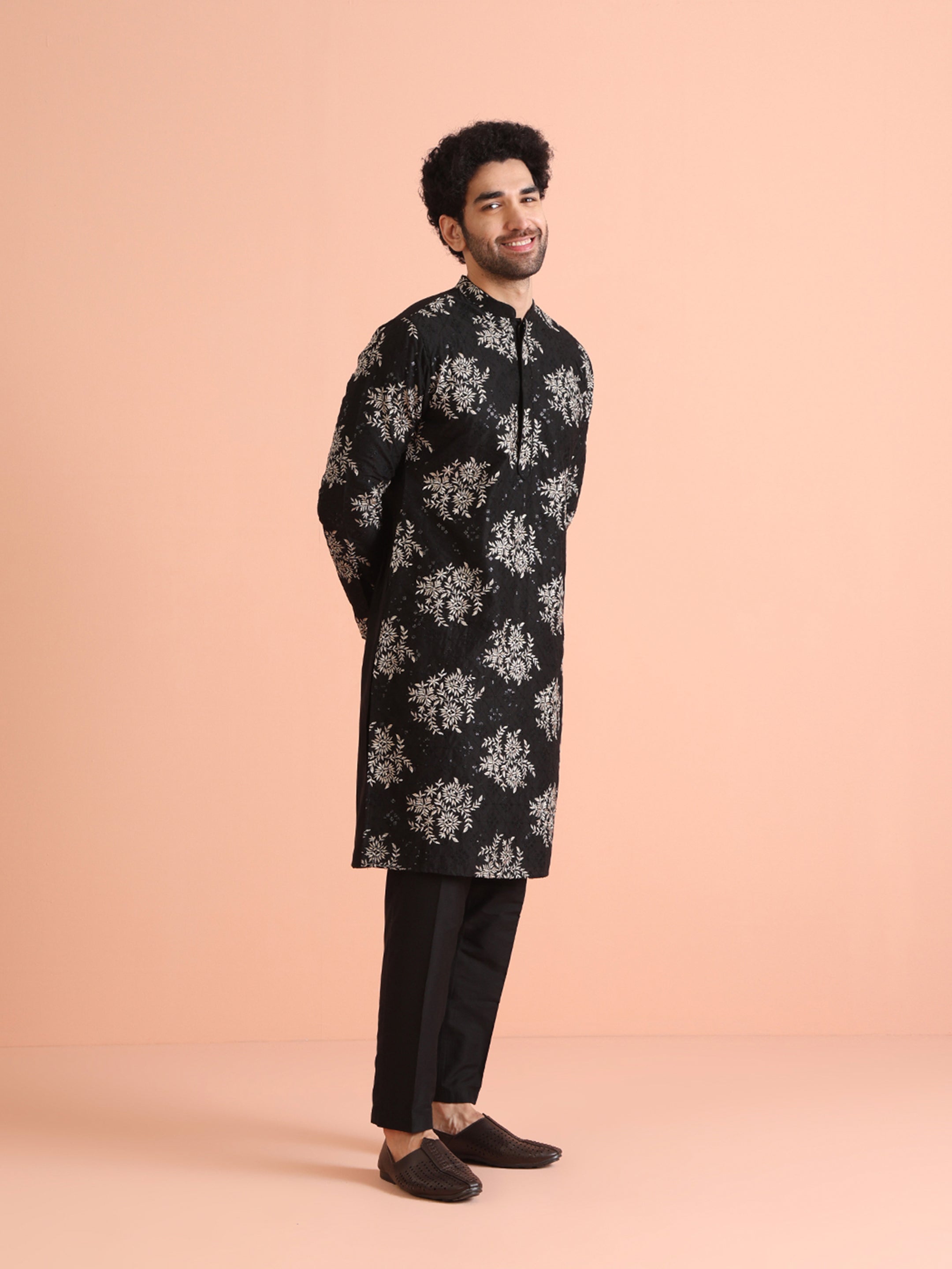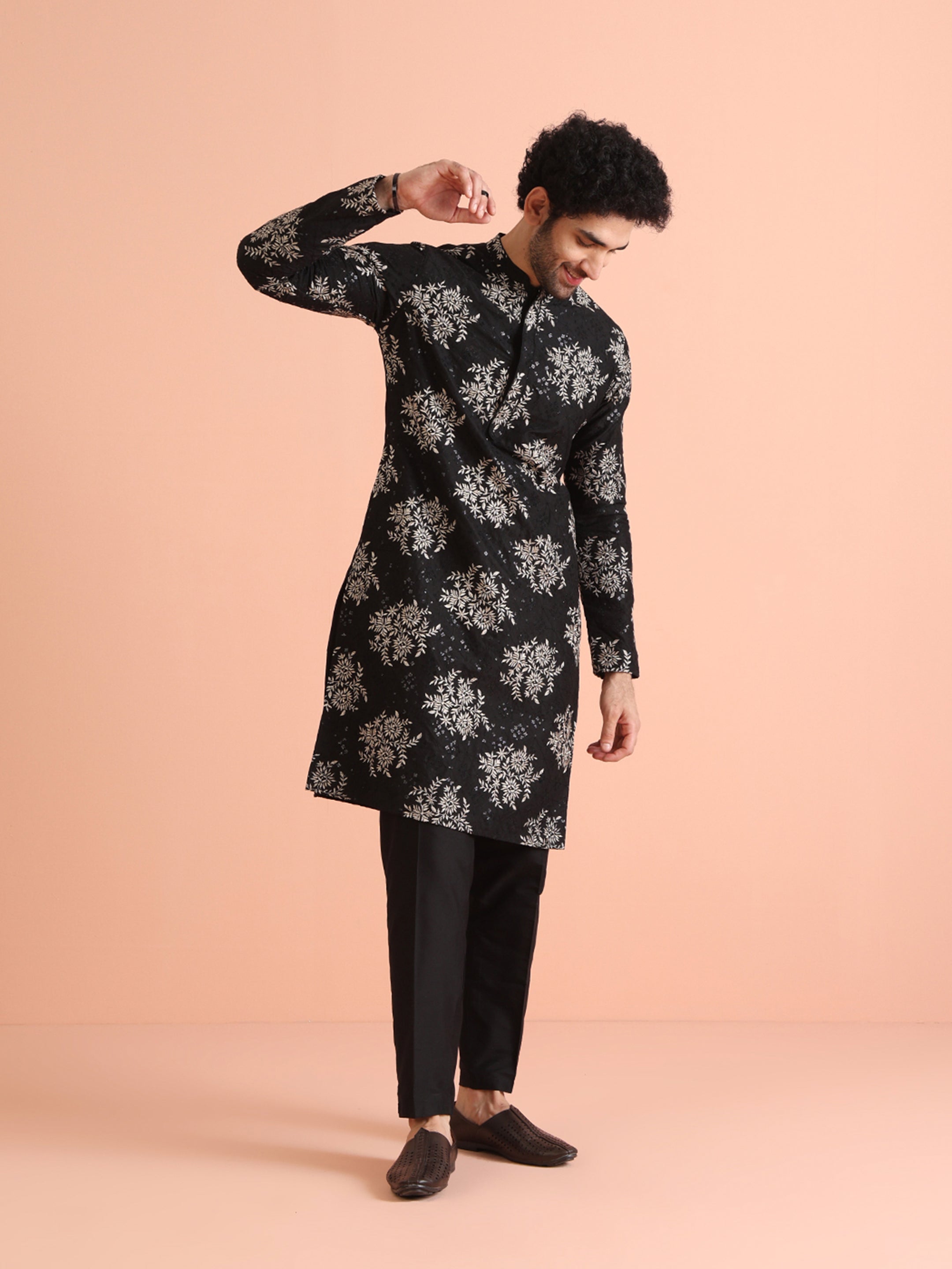 Experience classic elegance with this Men's Black Color Cotton Blend Kurta Trouser Set. The Embroidered Pattern adds a refined touch, while the breathable fabric ensures comfort throughout the day. Ideal for festive events or casual wear, this Kurta Trouser Set is a wardrobe essential.