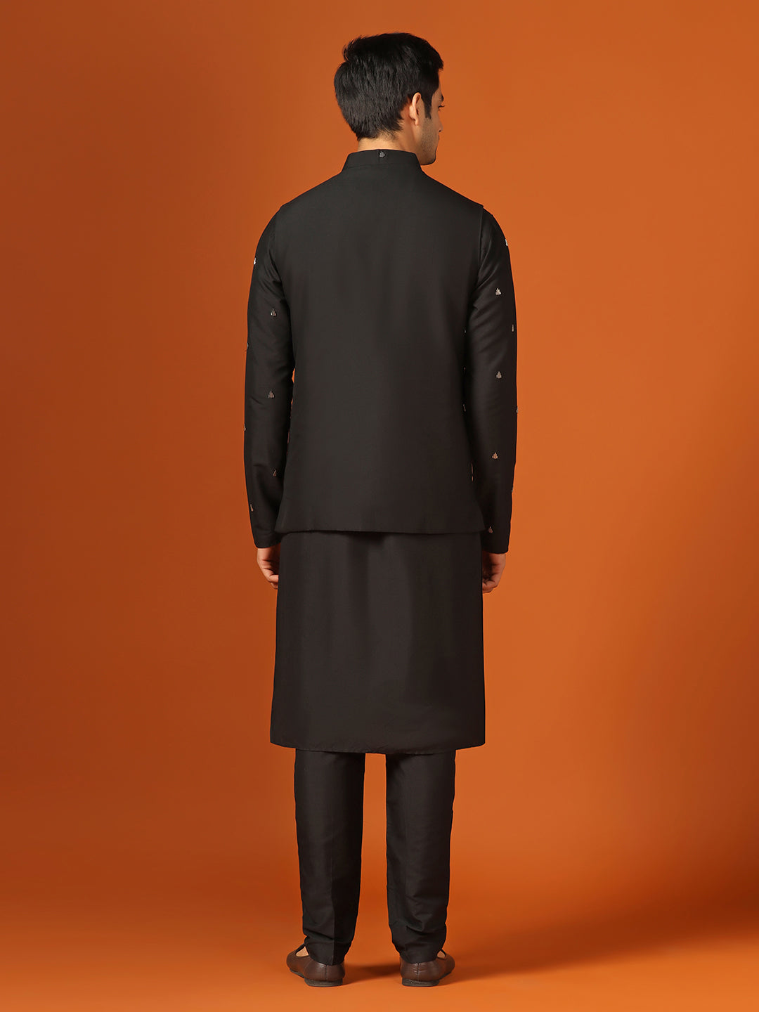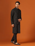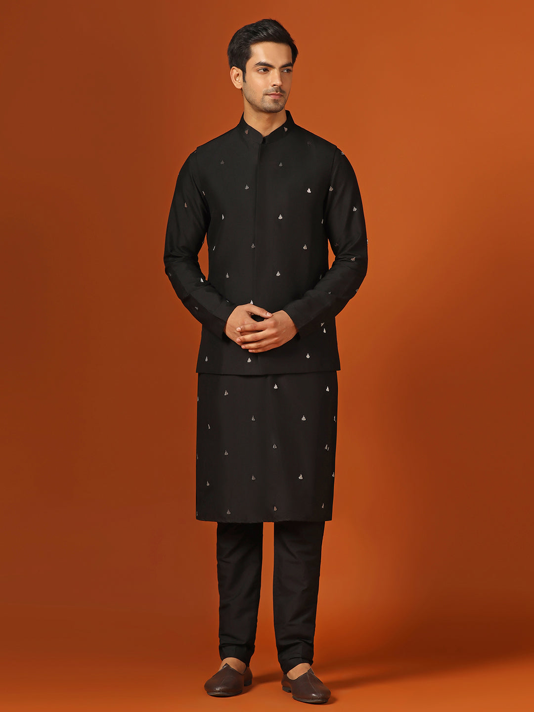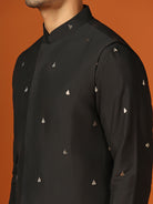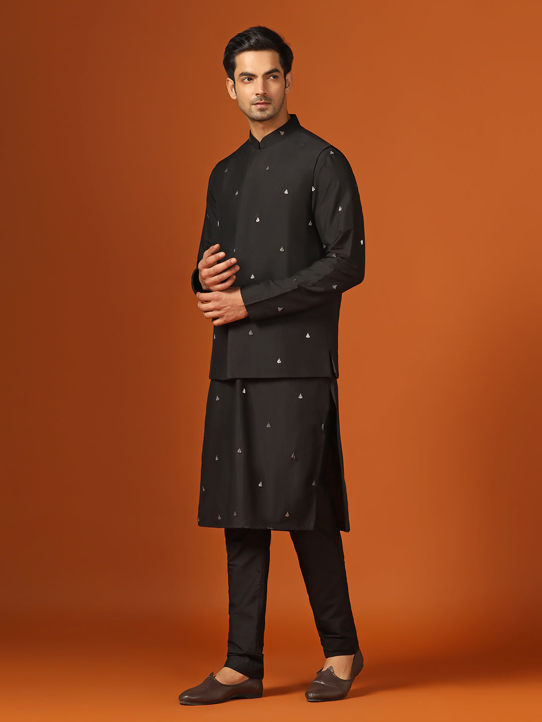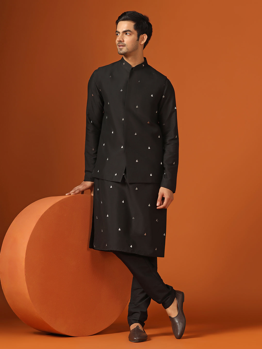 Stay stylish and warm with this men's Kurta Jacket Set. This classic design is made from Cotton Blend fabric with Embridary Pattern and comes in Black colours. Perfect for any occasion..
