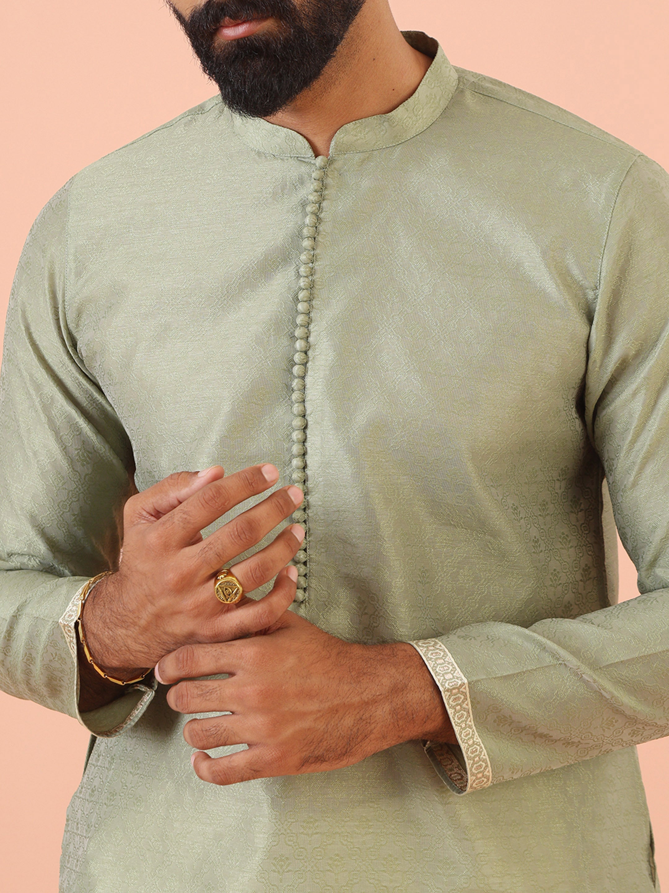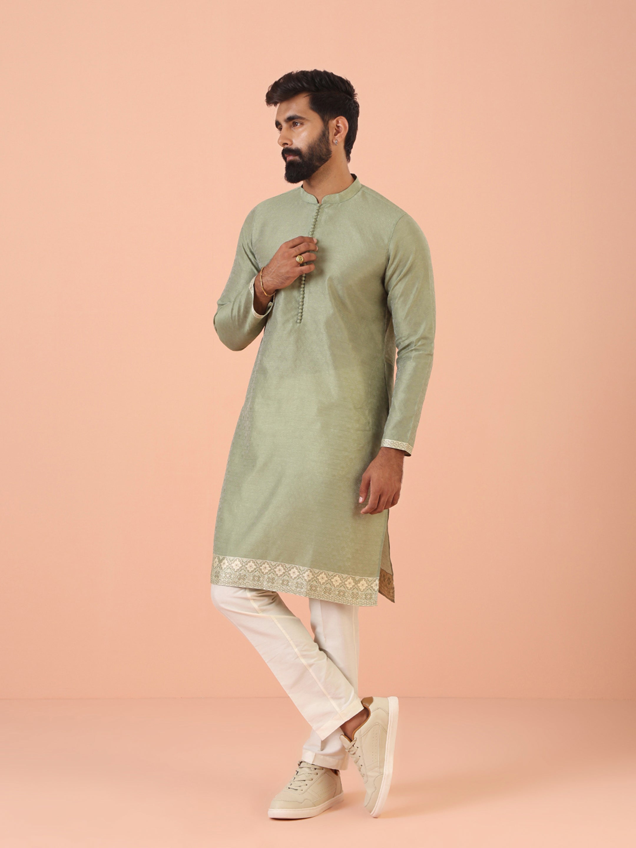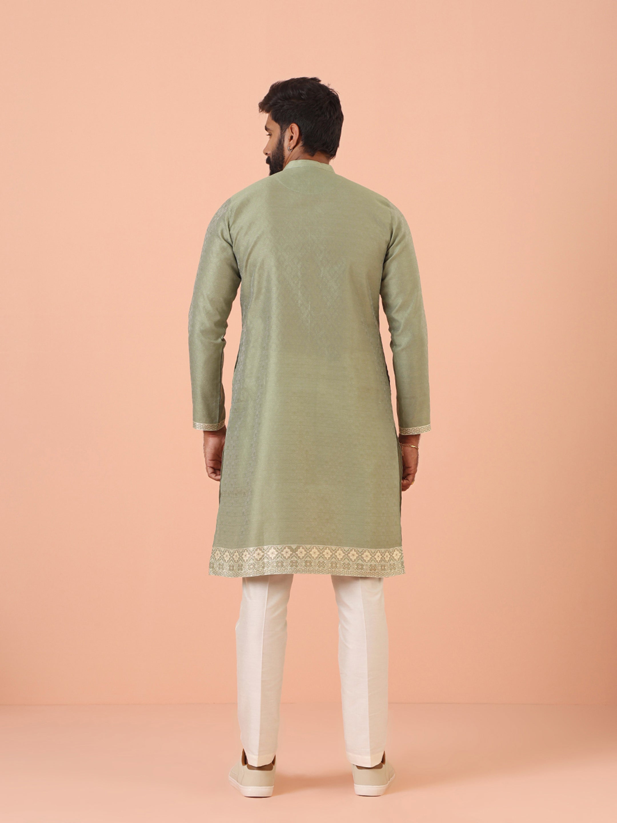 Experience classic elegance with this Men's Green Color Silk Blend Kurta Trouser Set. The Self Design Pattern adds a refined touch, while the breathable fabric ensures comfort throughout the day. Ideal for festive events or casual wear, this Kurta Trouser Set is a wardrobe essential.