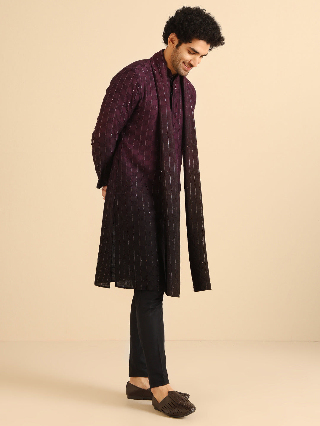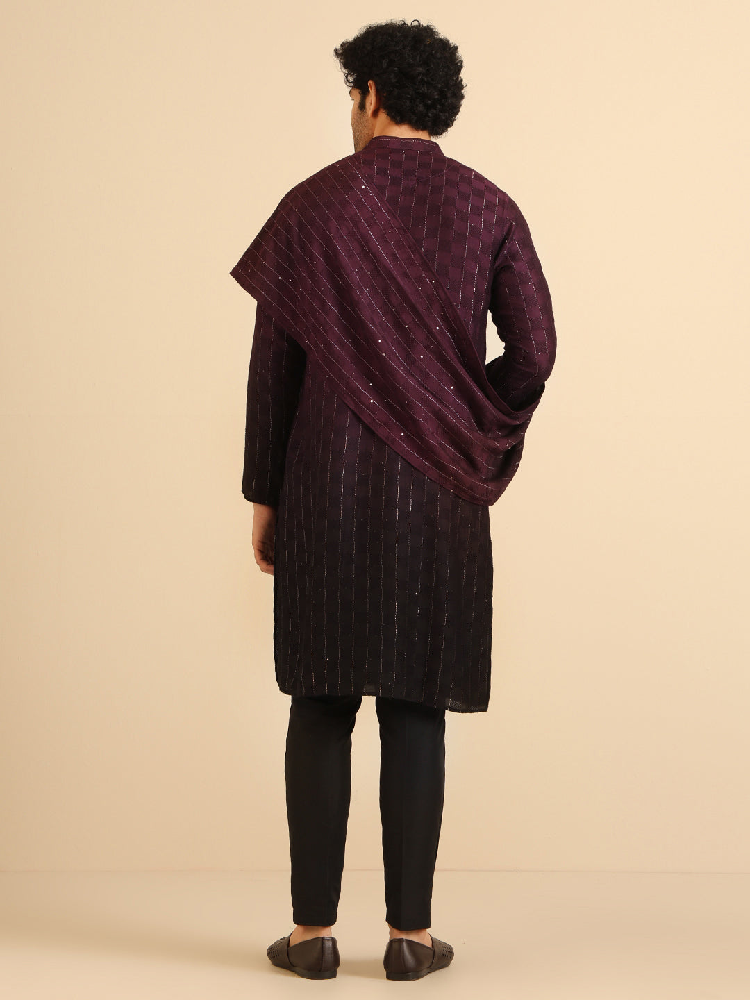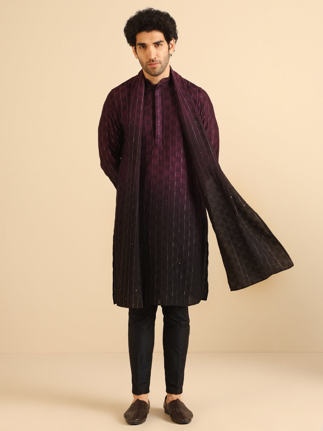 Experience classic elegance with this Men's Purple Color Cotton Blend Kurta Trousers Set. The Sequinned Pattern adds a refined touch, while the breathable fabric ensures comfort throughout the day. Ideal for festive events or casual wear, this Kurta Trouser Set is a wardrobe essential.