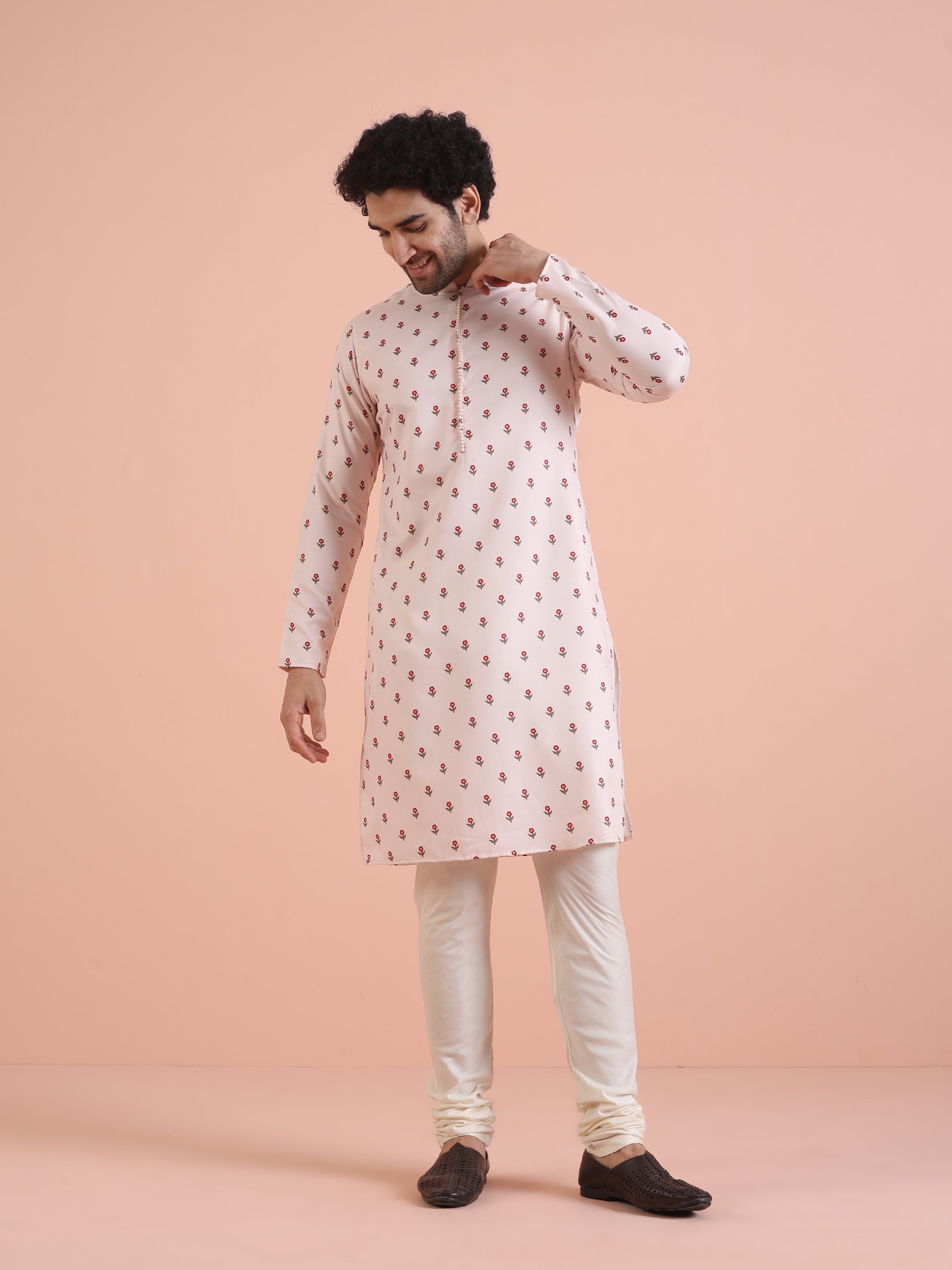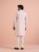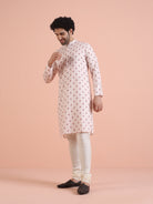 Experience classic elegance with this Men White Printed Floral Kurta Churidar Set. The Printed Pattern adds a refined touch, while the breathable Cotton Blend fabric ensures comfort throughout the day. Ideal for festive events or casual wear, this Kurta Churidar Set is a wardrobe essential..