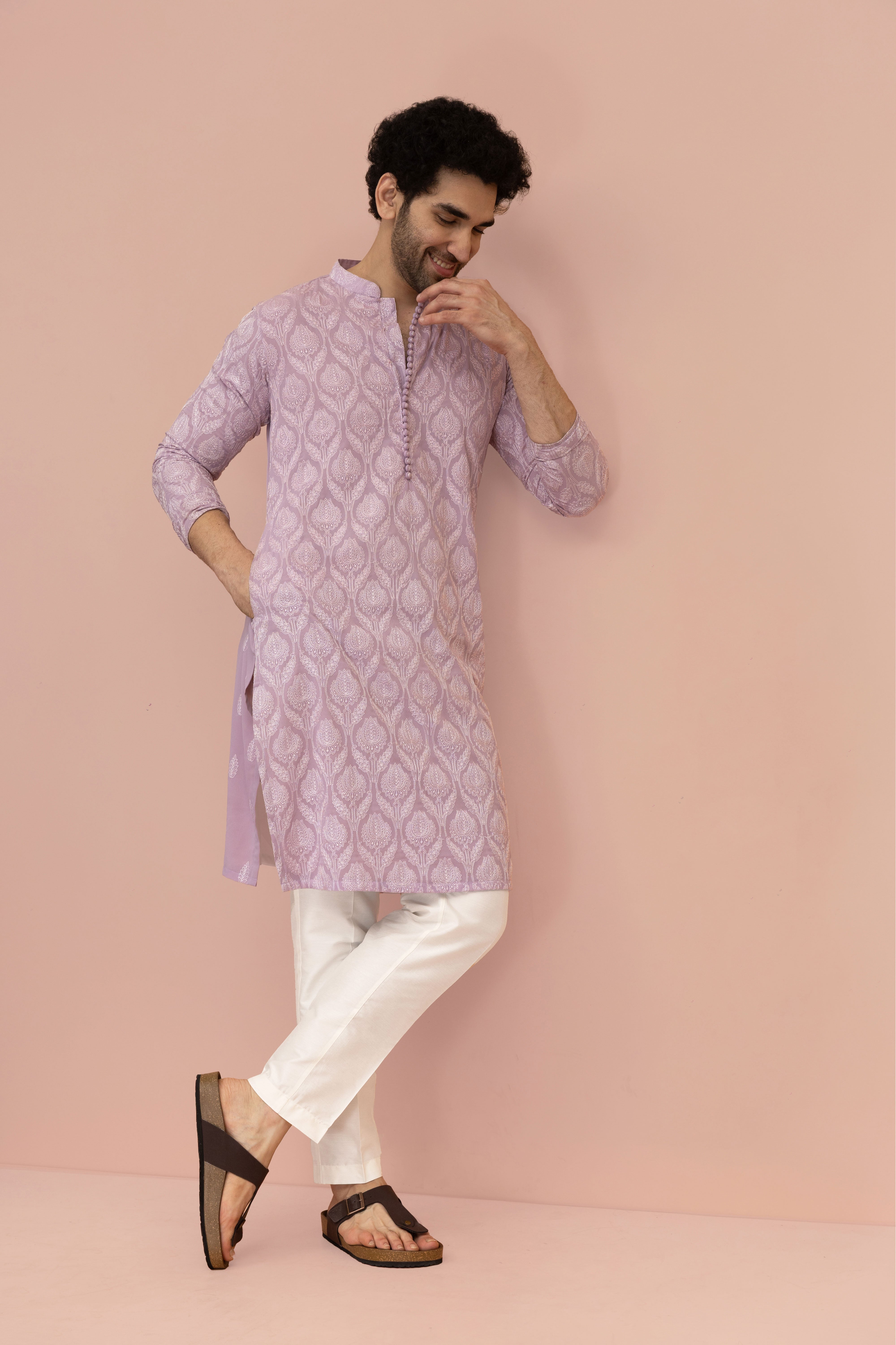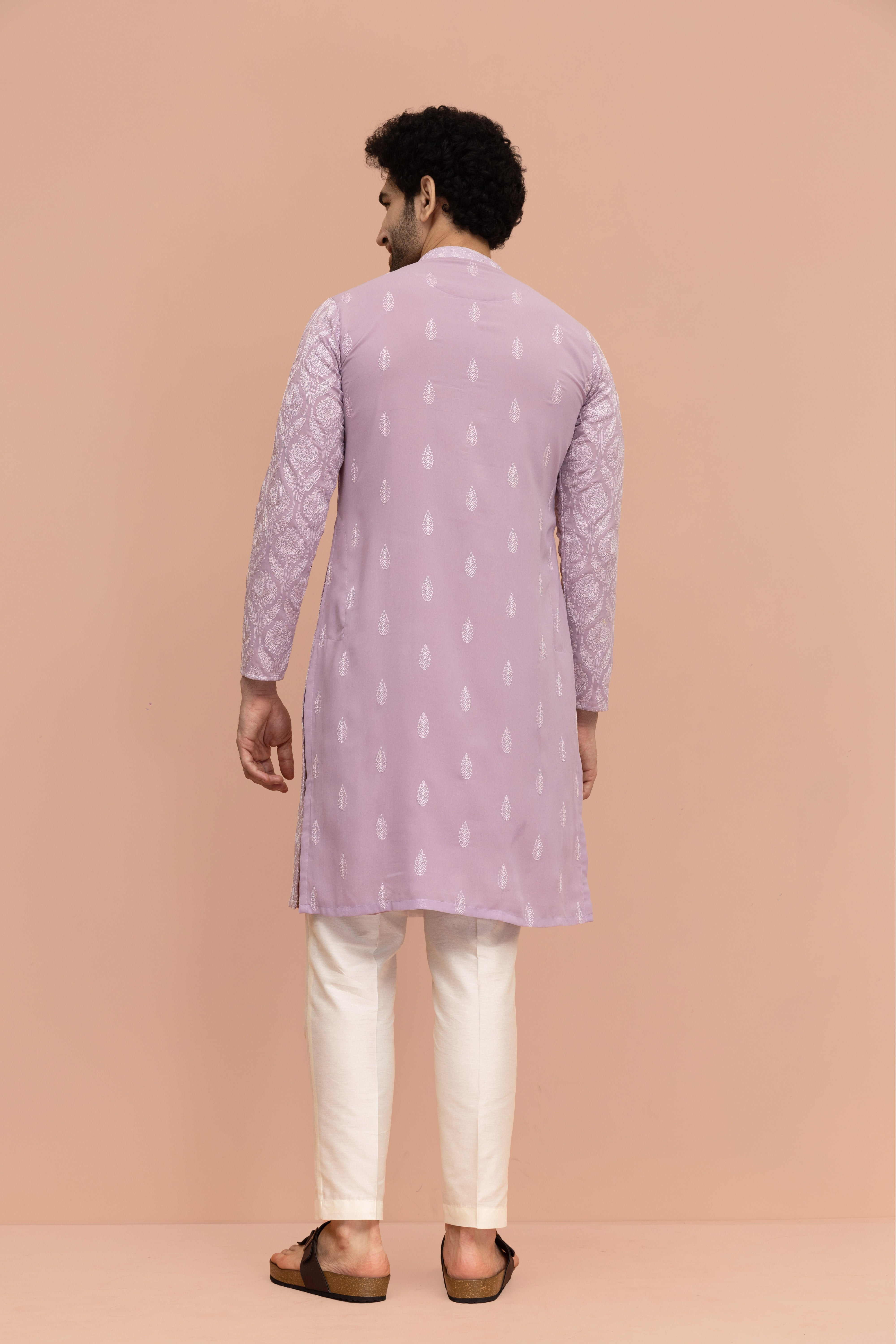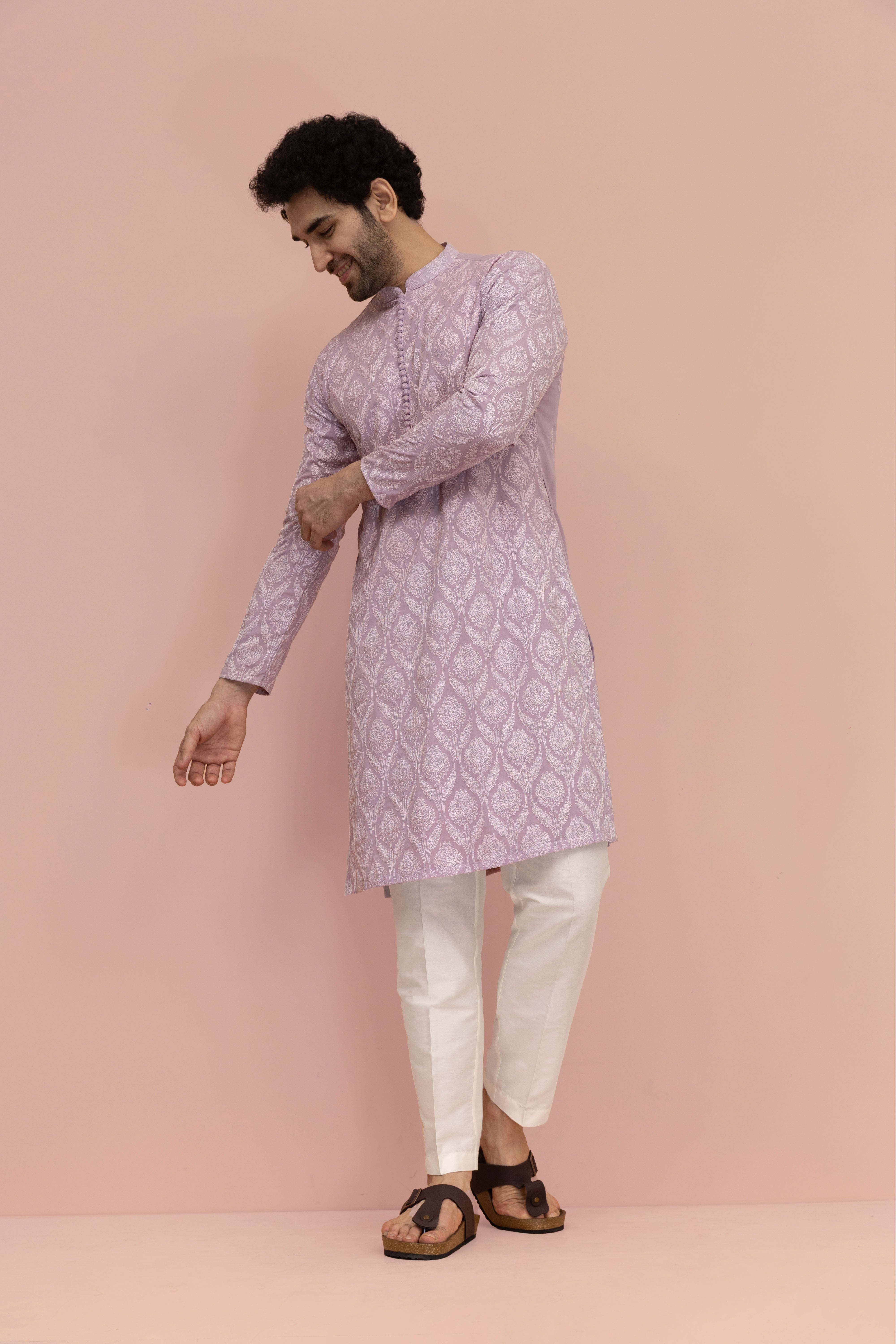 Men Lilac Embroidered Heavy Thread Work Kurta Trouser Set