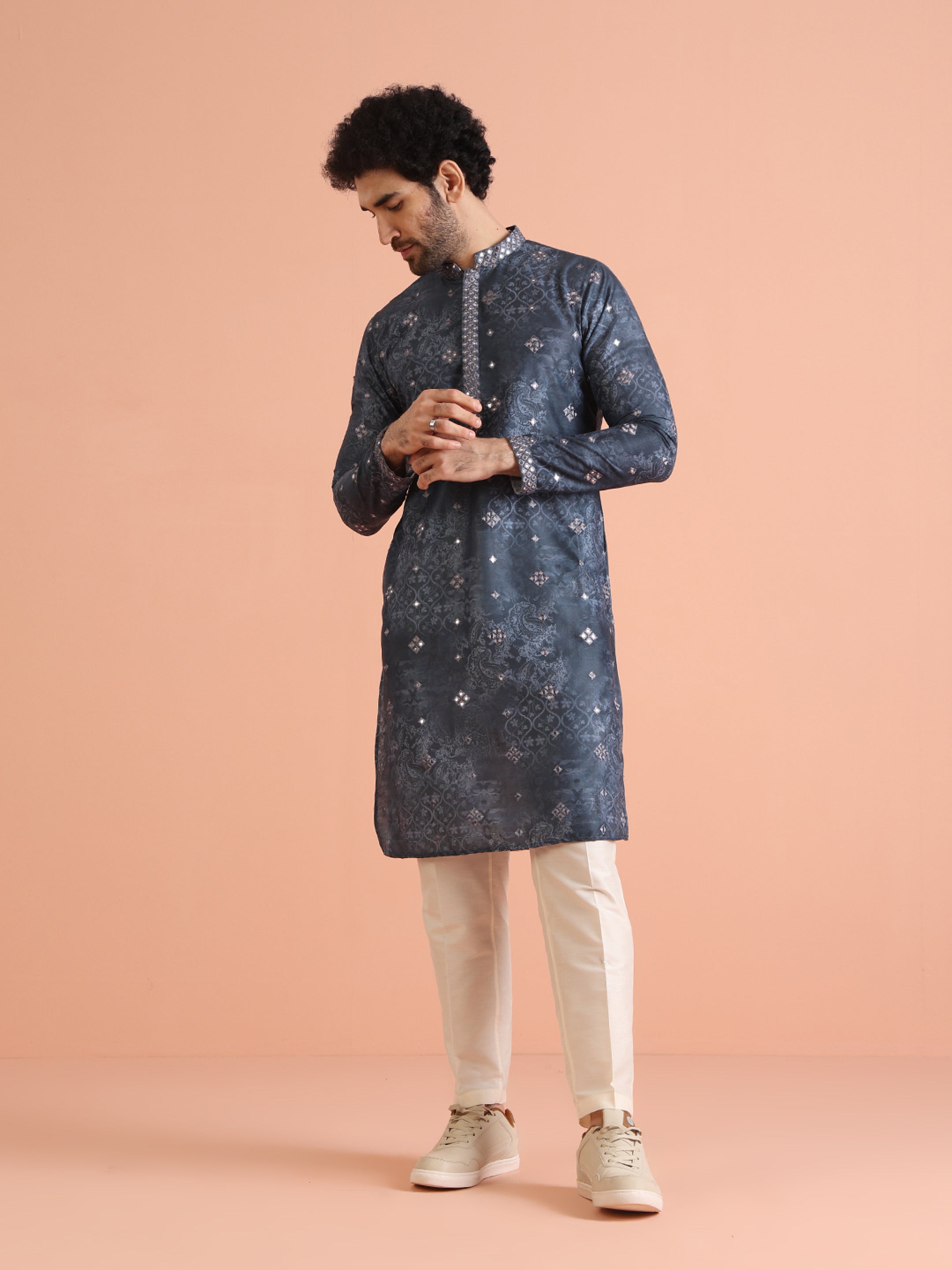 Experience classic elegance with this Men's Blue Color Cotton Blend Kurta Trouser Set. The Embellished Pattern adds a refined touch, while the breathable fabric ensures comfort throughout the day. Ideal for festive events or casual wear, this Kurta Trouser Set is a wardrobe essential.