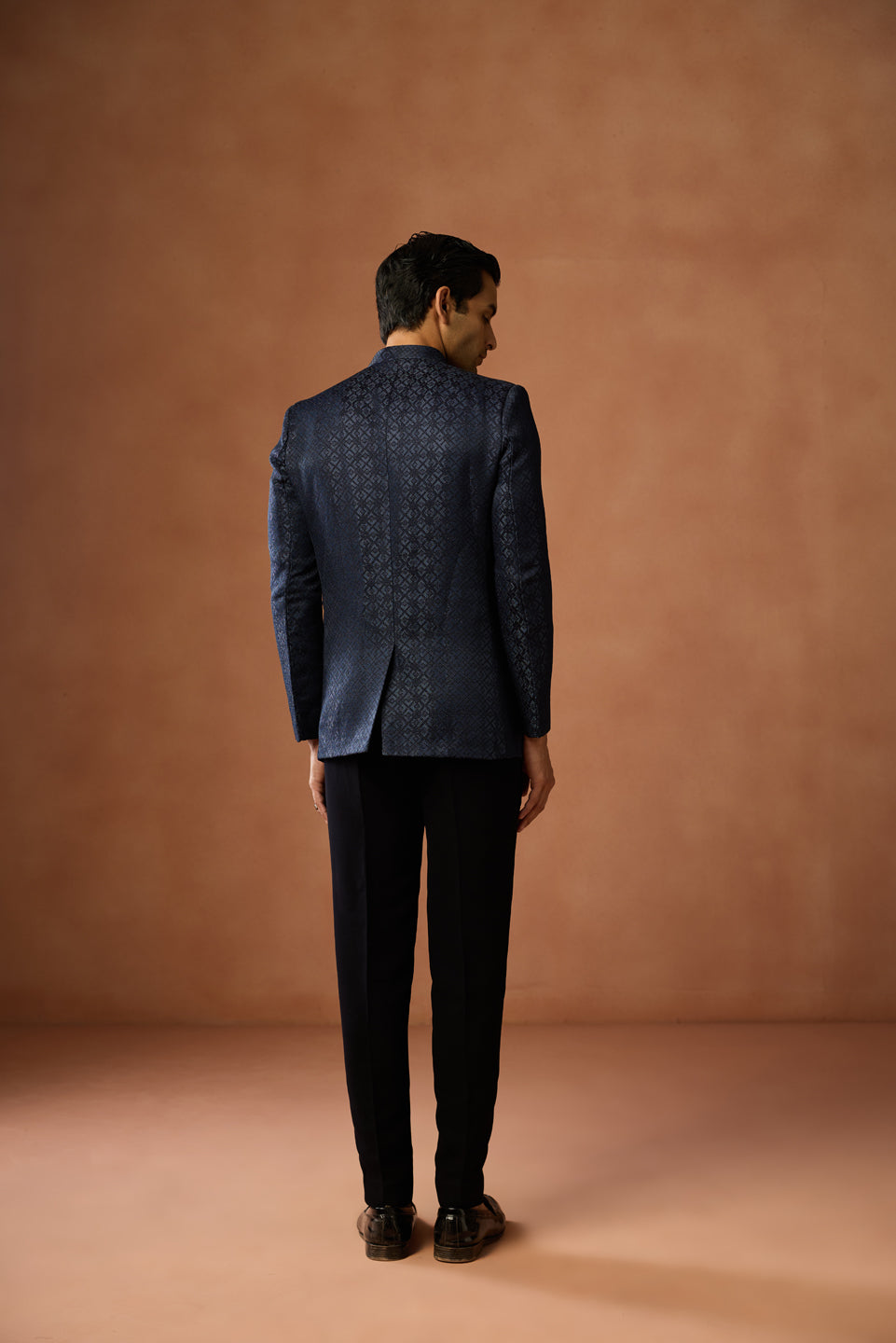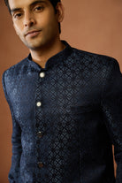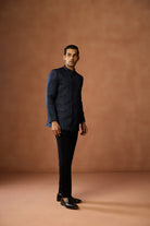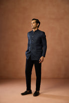 Blue Poly Silk Jacquard Bandhgala Trouser Set, Perfect festive ethnic wear for men, ideal festive and casual occasions.
