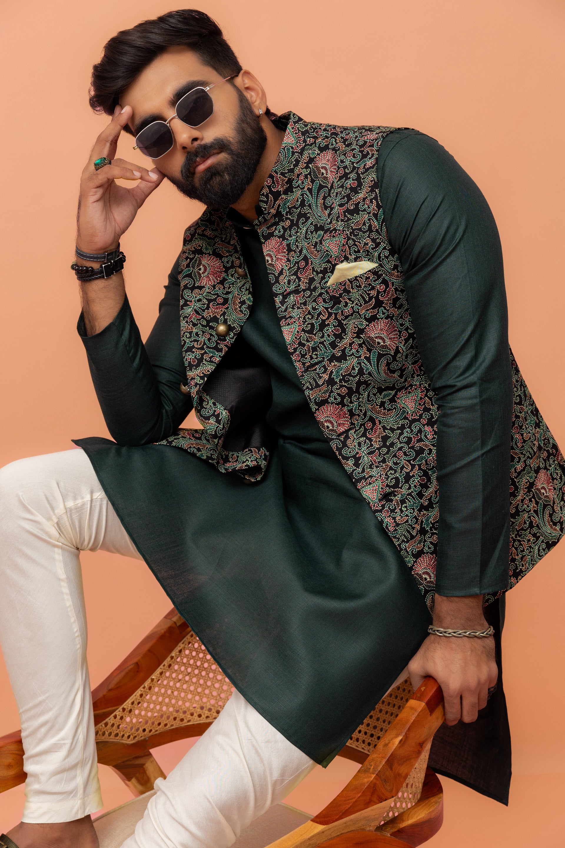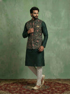 Elegant Kurta Jacket Churidar Set crafted from pure cotton with intricate printed design. Perfect for festive and wedding occasions. Ideal for Eid festival.