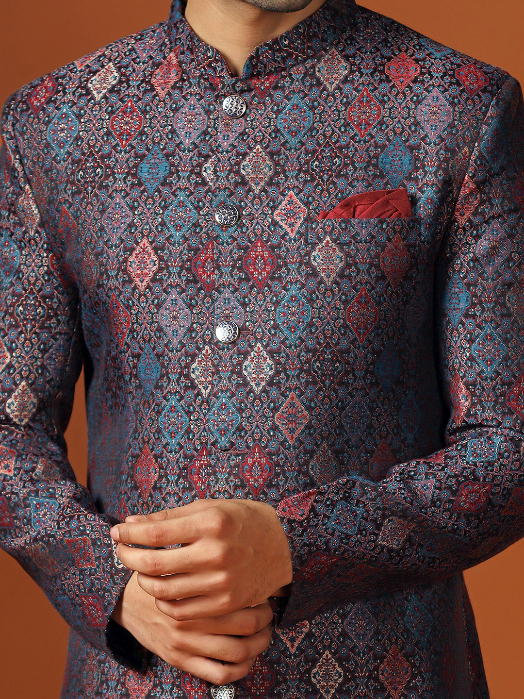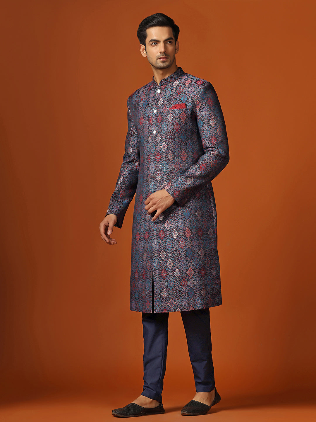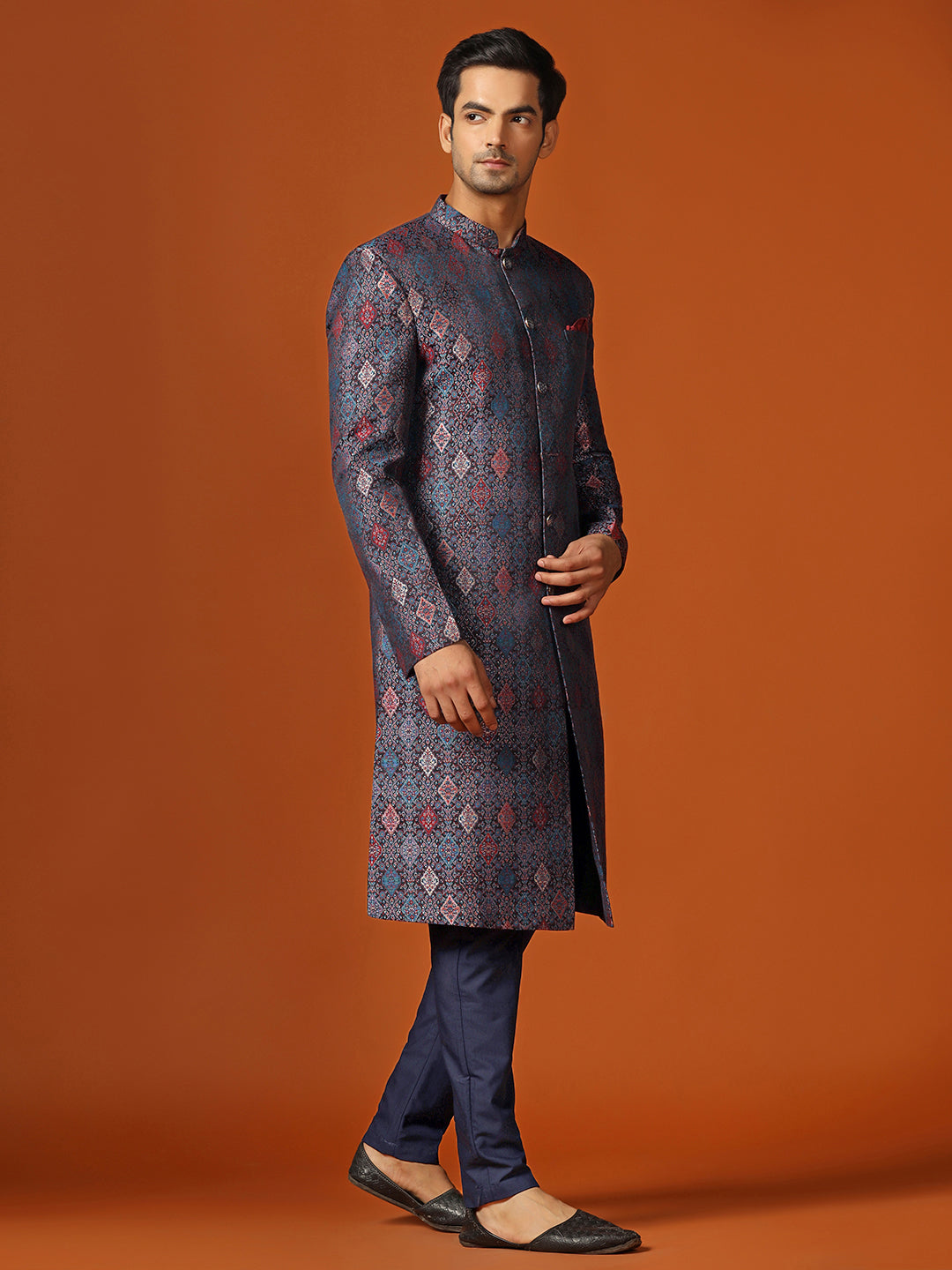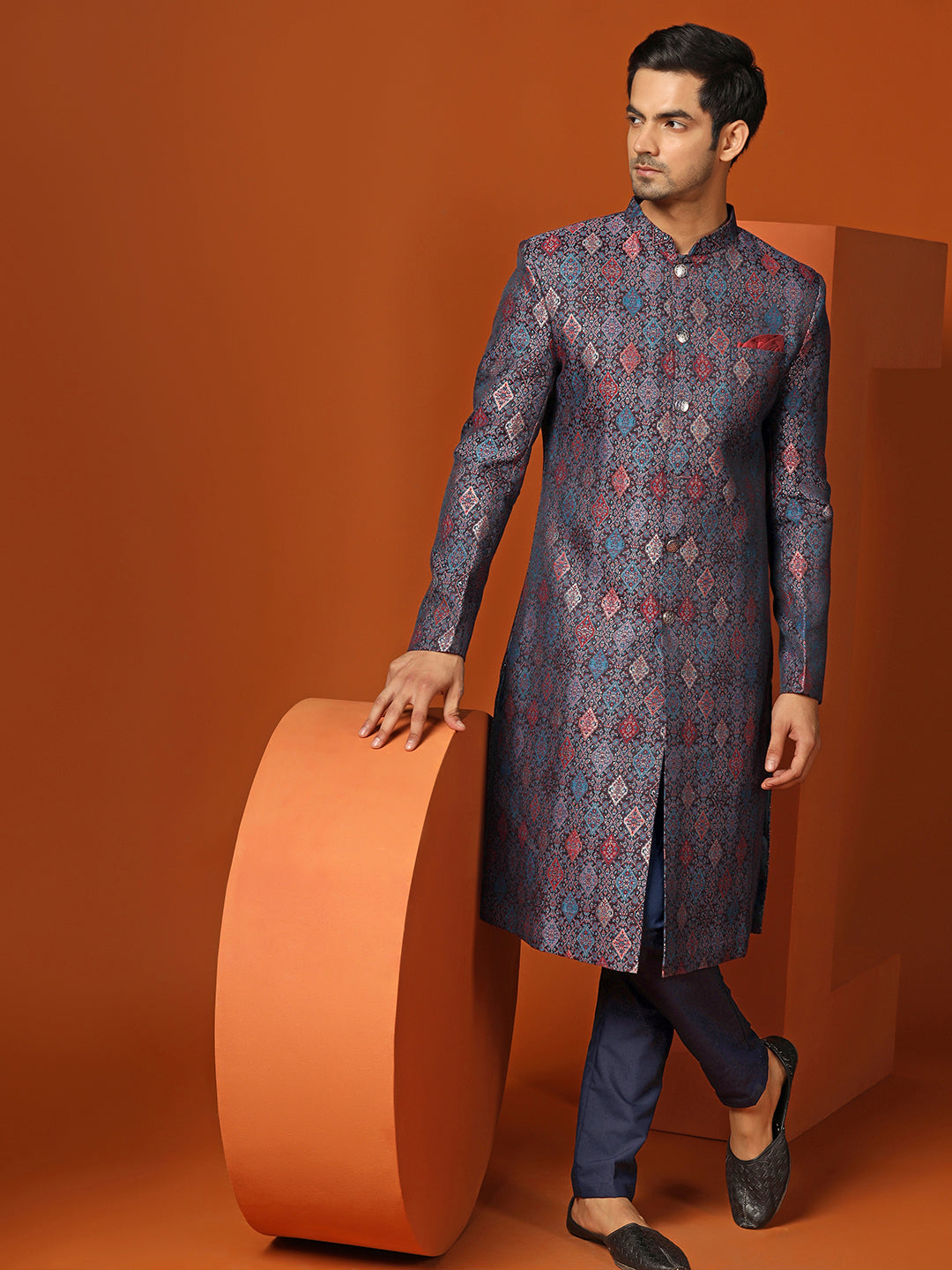 Flaunt your look in this Sherwani set crafted by the designers at Kisah. This Sherwani set is an exquisite set designed in Jacquard Fabric in Multi. The design all over the Sherwani sets a parting glamorous Embellished style.This is a look that satiates traditional fashion needs at its best..