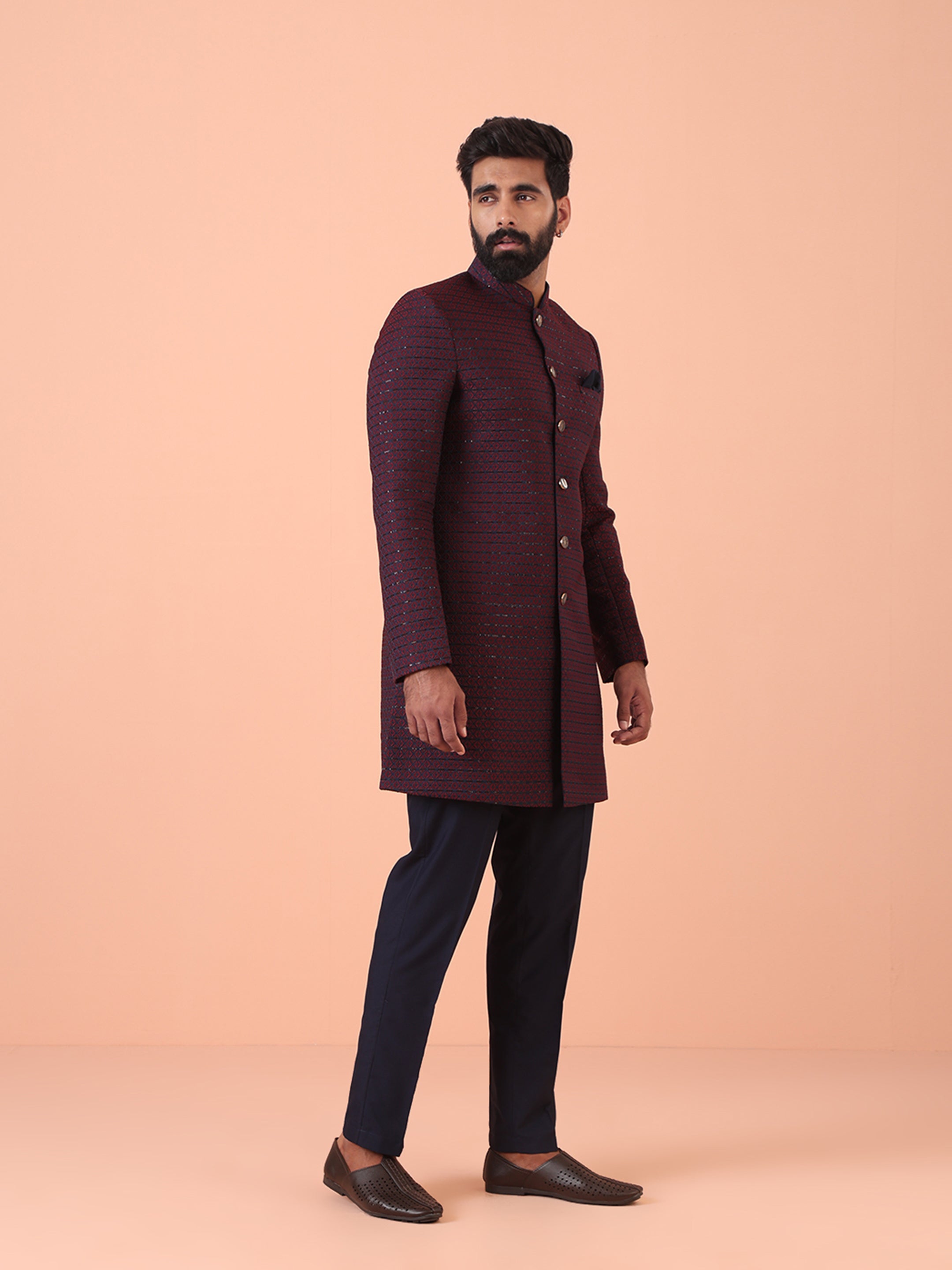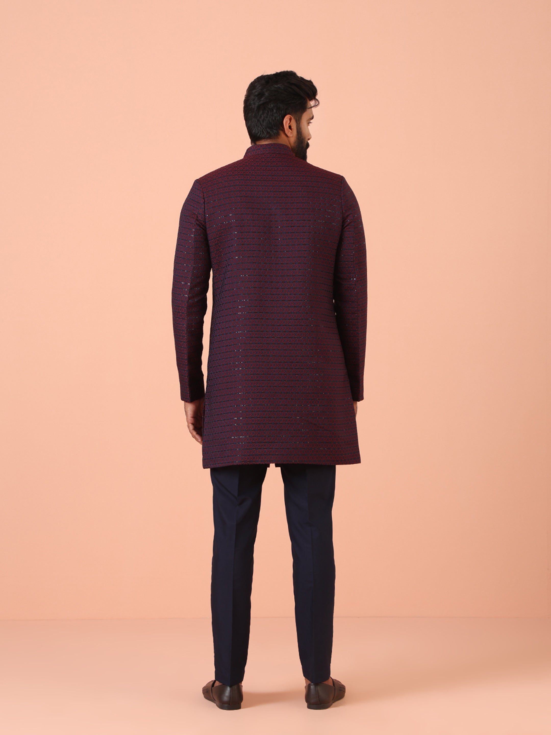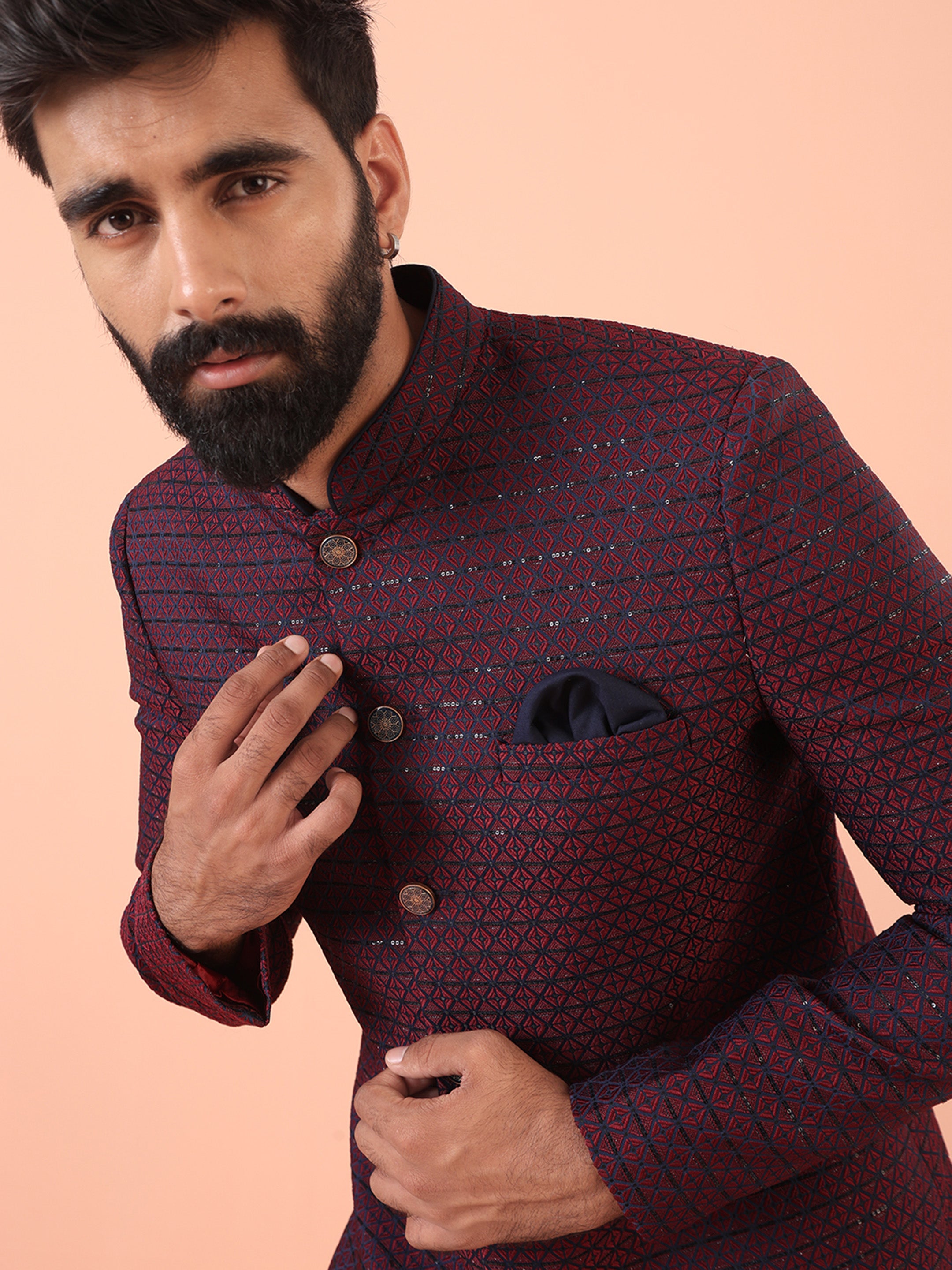 Experience classic elegance with this Men's Navy Blue Color Silk Blend Indo Western Indo Western Trouser Set. The Jacquard Pattern adds a refined touch, while the breathable fabric ensures comfort throughout the day. Ideal for festive events or casual wear, this Indo Western Indo Western Trouser Set is a wardrobe essential.