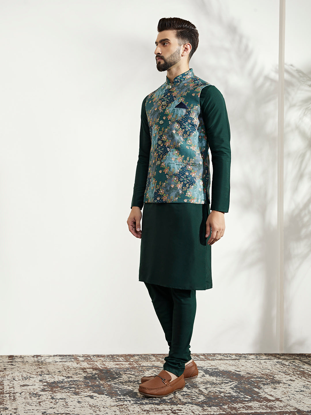 This Kurta Jacket Set with Blue Color is an elegant mandarin collar style that is perfect for occasional wear. With a full sleeve Woven Design design and comfortable fabric, it will make you look stylish.