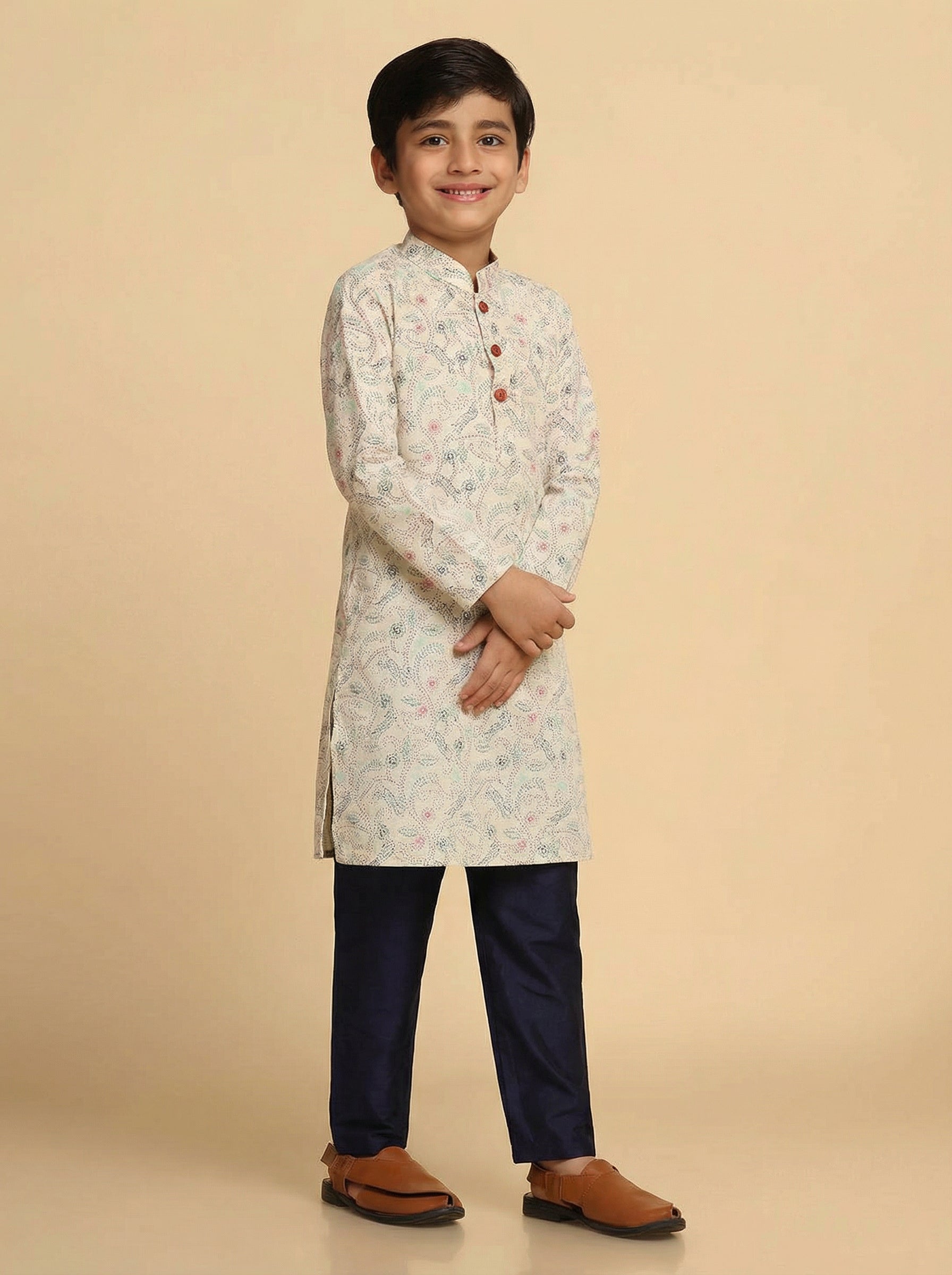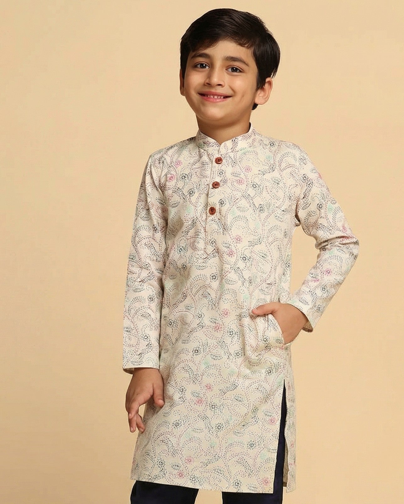 Stay stylish in this green printed cotton blend kurta. Its regular fit makes it a versatile piece for casual or festive wear.