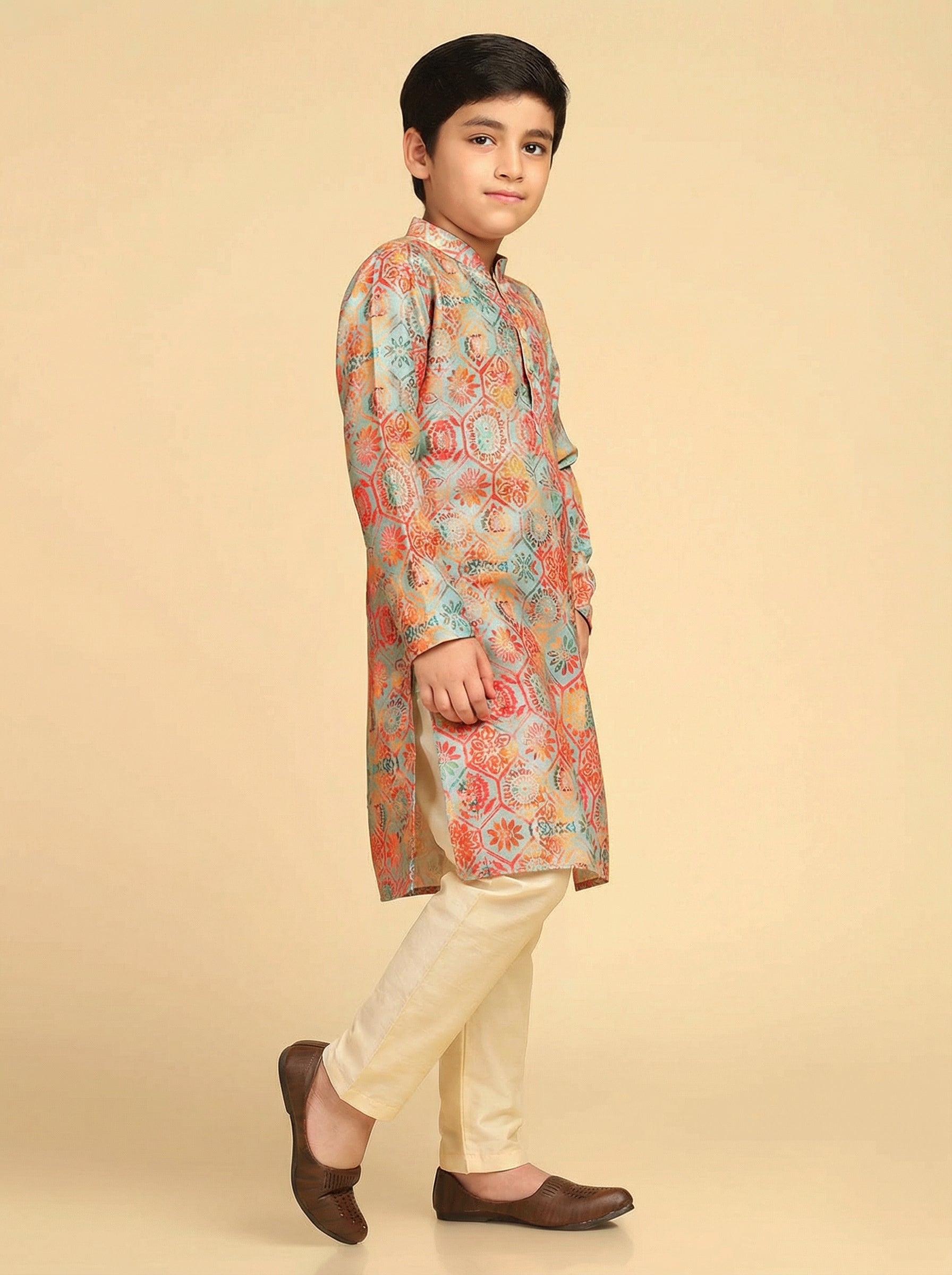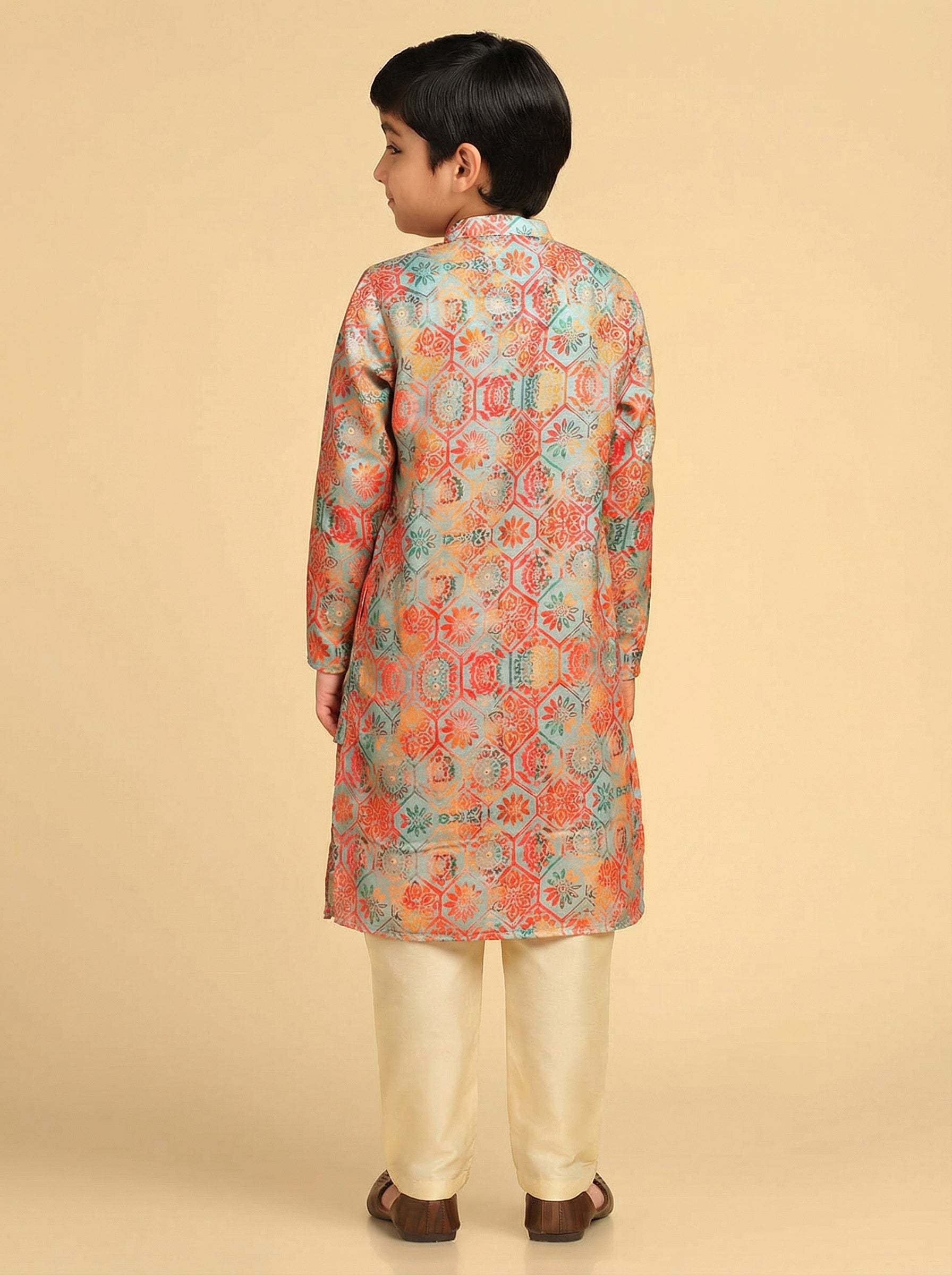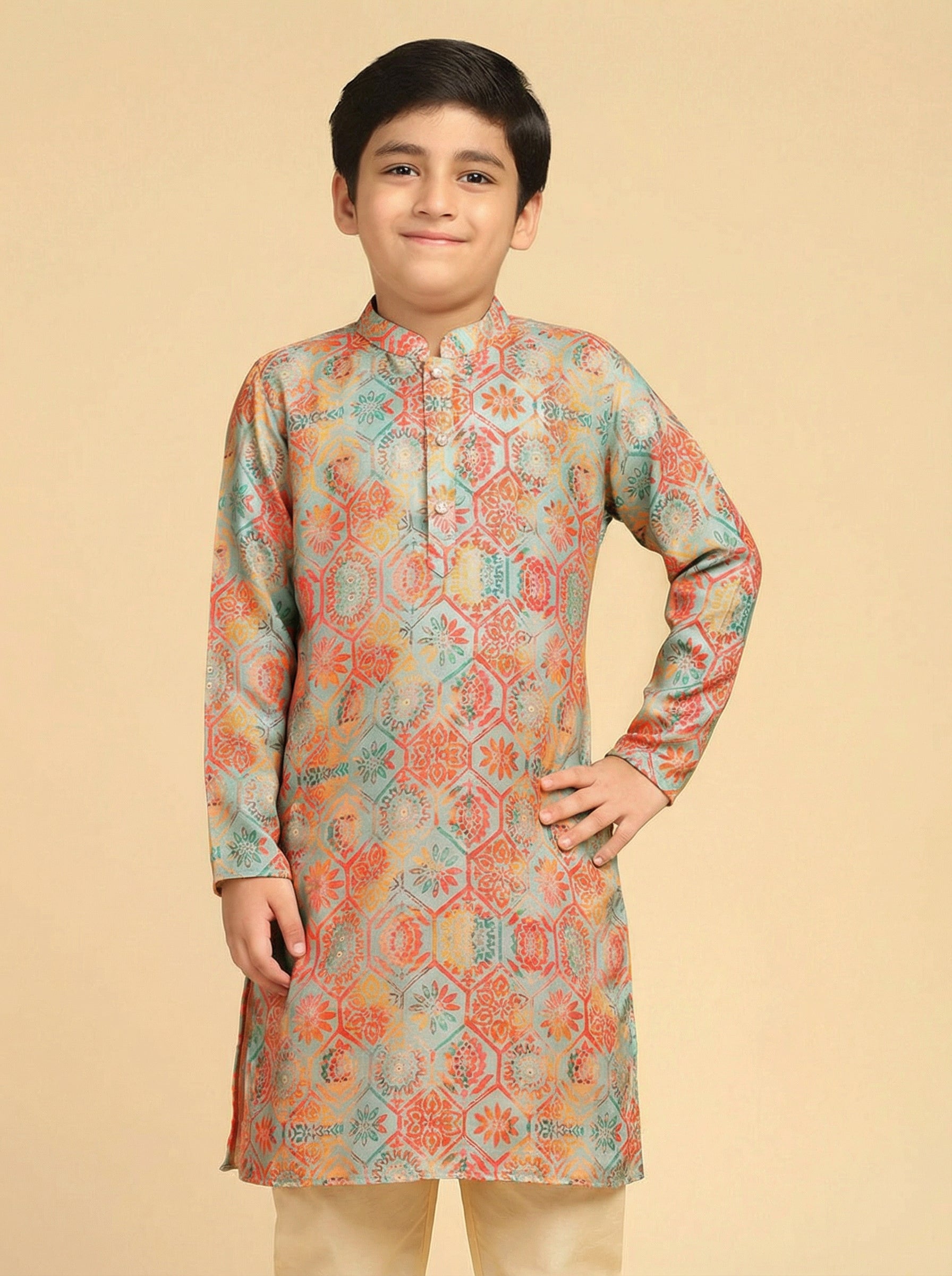 Experience classic elegance with this Kisah Boy's Multi Pashmina Printed Kurta. The breathable fabric ensures comfort throughout the day. Ideal for festive events or casual wear.