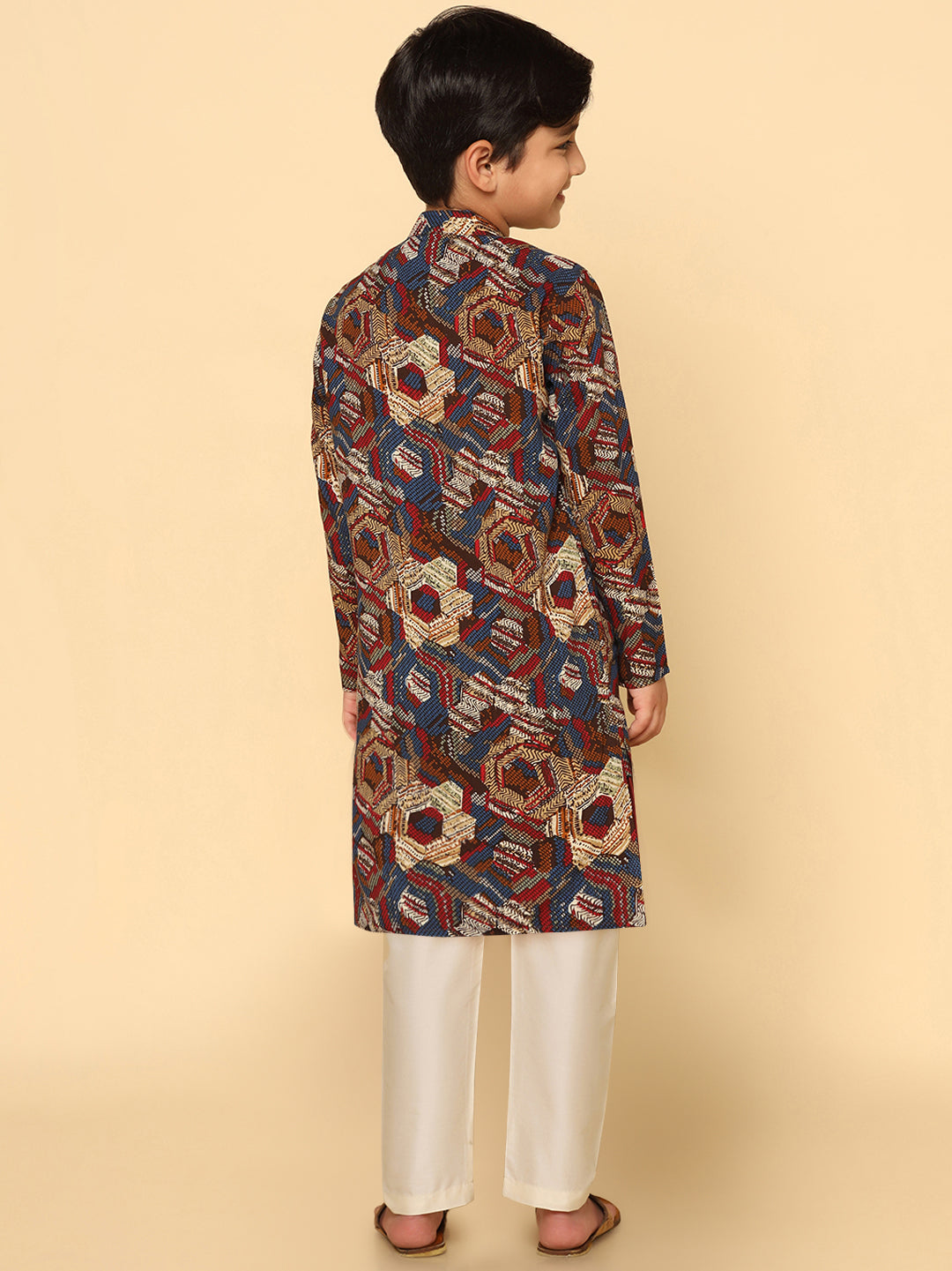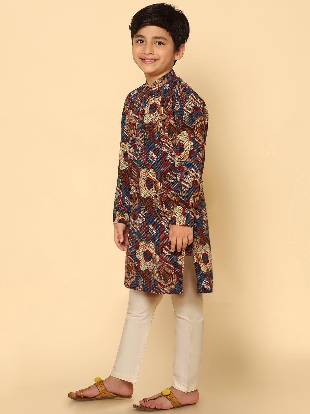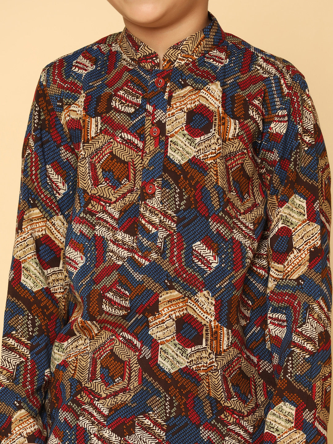 This Kurta is just perfect for festivals, or any kind off occasions. Its mandarin collar, style gives a charming look, this classic design is made from Cotton Blend fabric with Printed patterns and comes in Maroon colours. Perfect for any occasion.