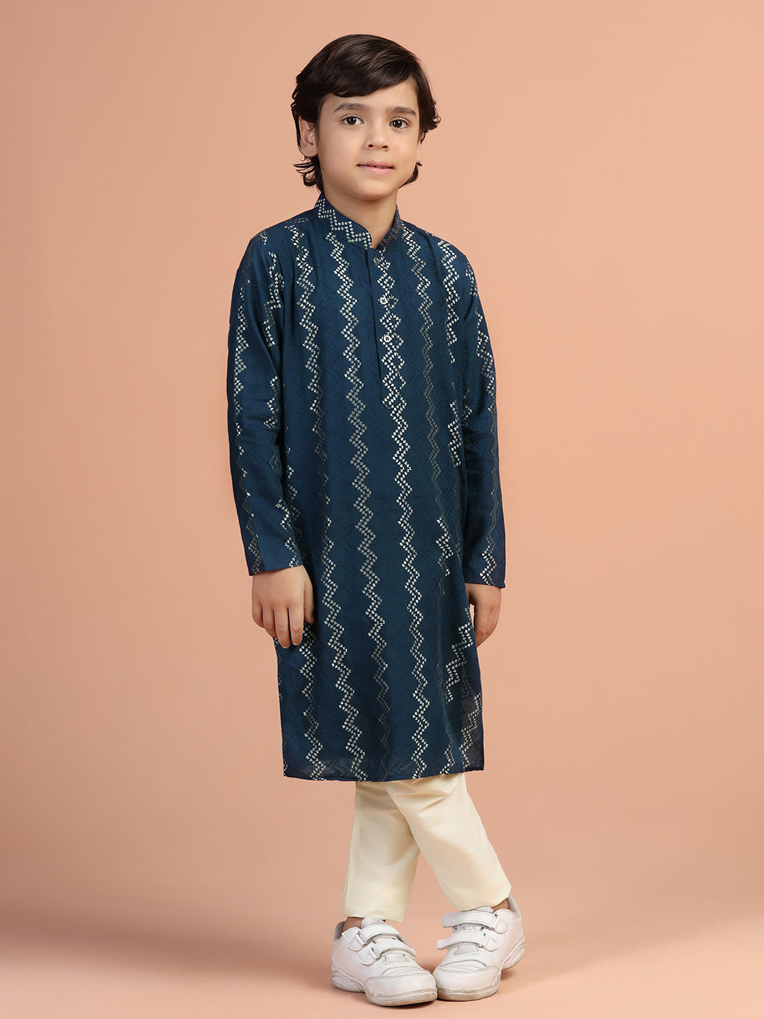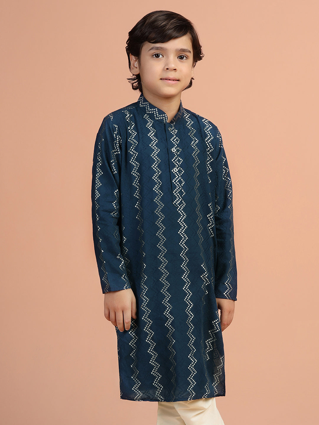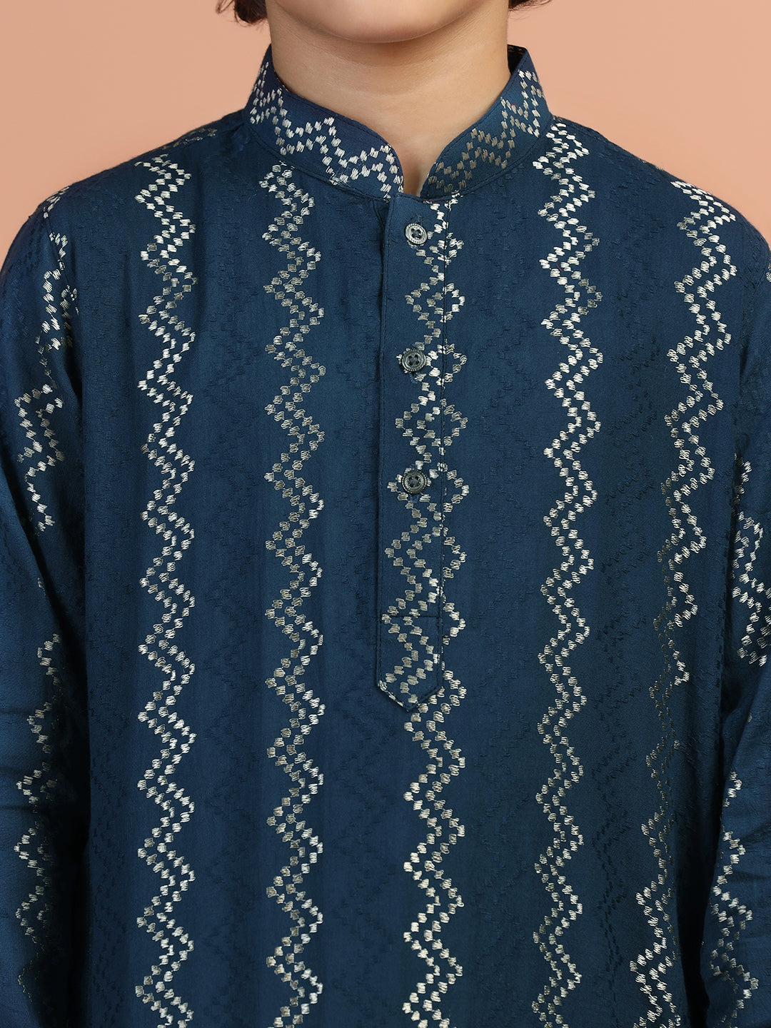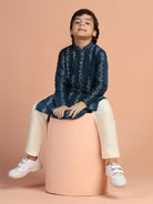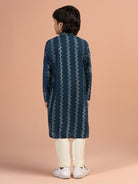 Elevate your wardrobe with this navy blue textured cotton blend kurta. The regular fit ensures comfort for any occasion.