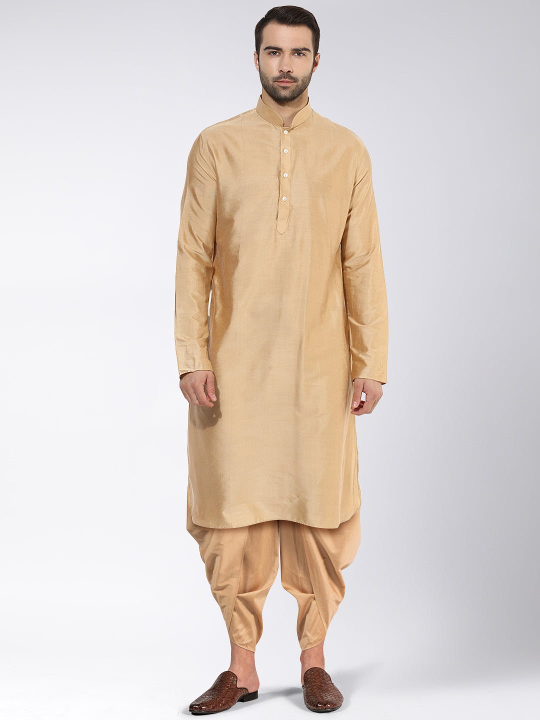 Elevate your style with this elegant Beige color Kurta Dhoti Set. Made from a premium Cotton Silk Fabric and Solid pattern, it offers unmatched comfort and sophistication. Perfect for any festive occasion.