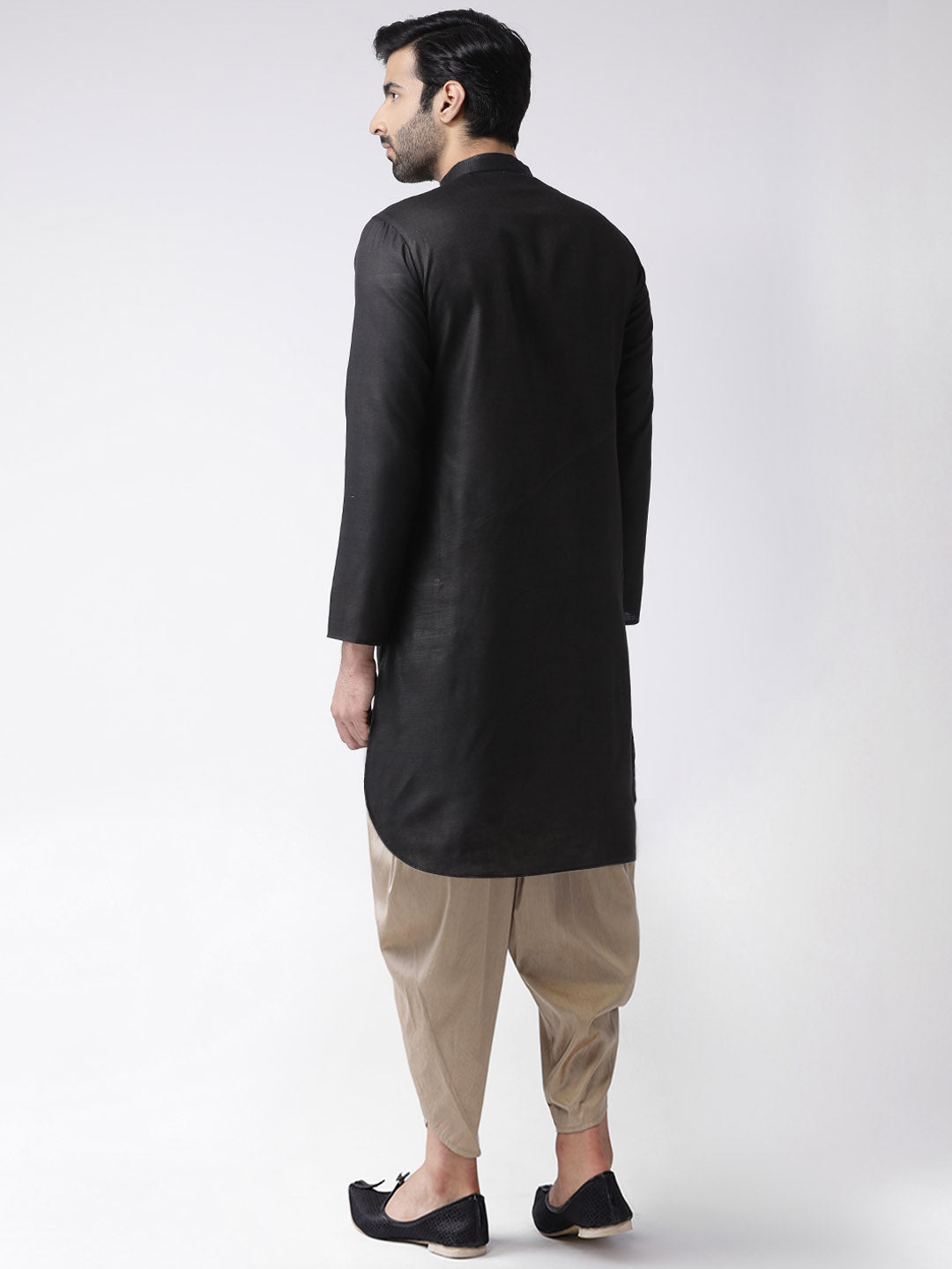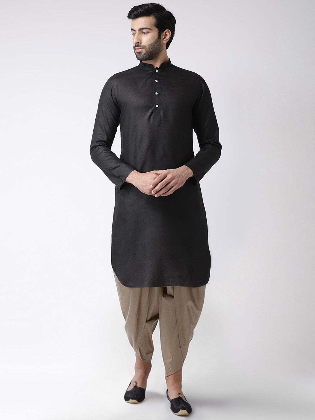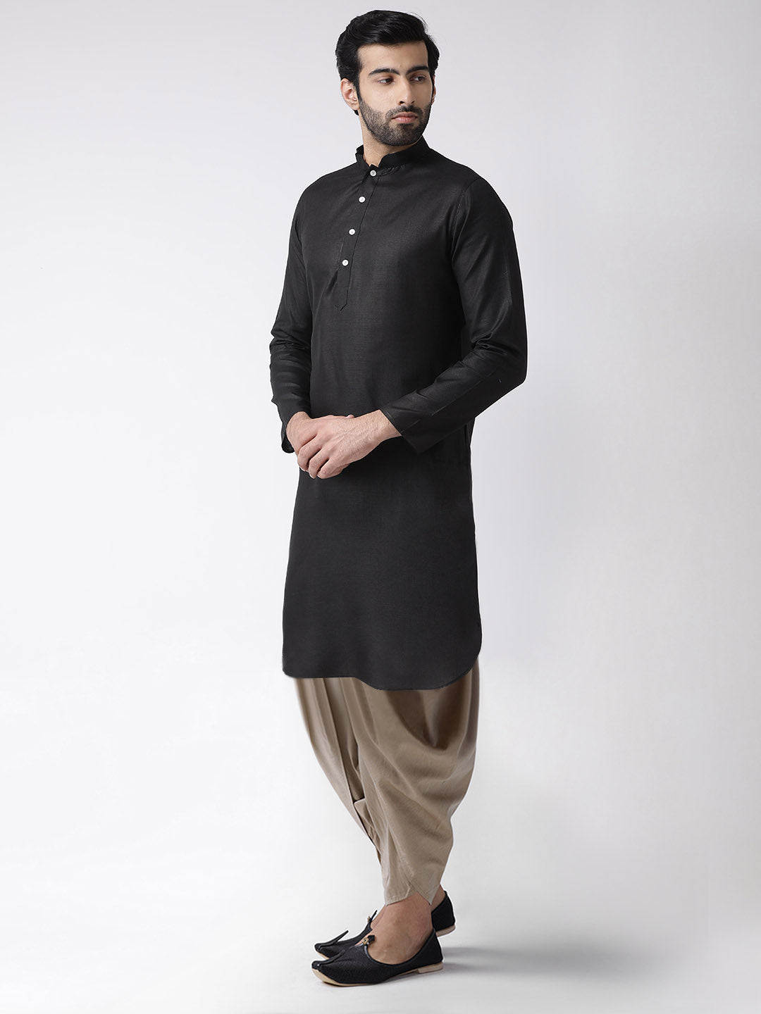 Elevate your style with this elegant Black color Kurta Dhoti Set. Made from a premium Cotton Blend Fabric and Solid pattern, it offers unmatched comfort and sophistication. Perfect for any festive occasion.