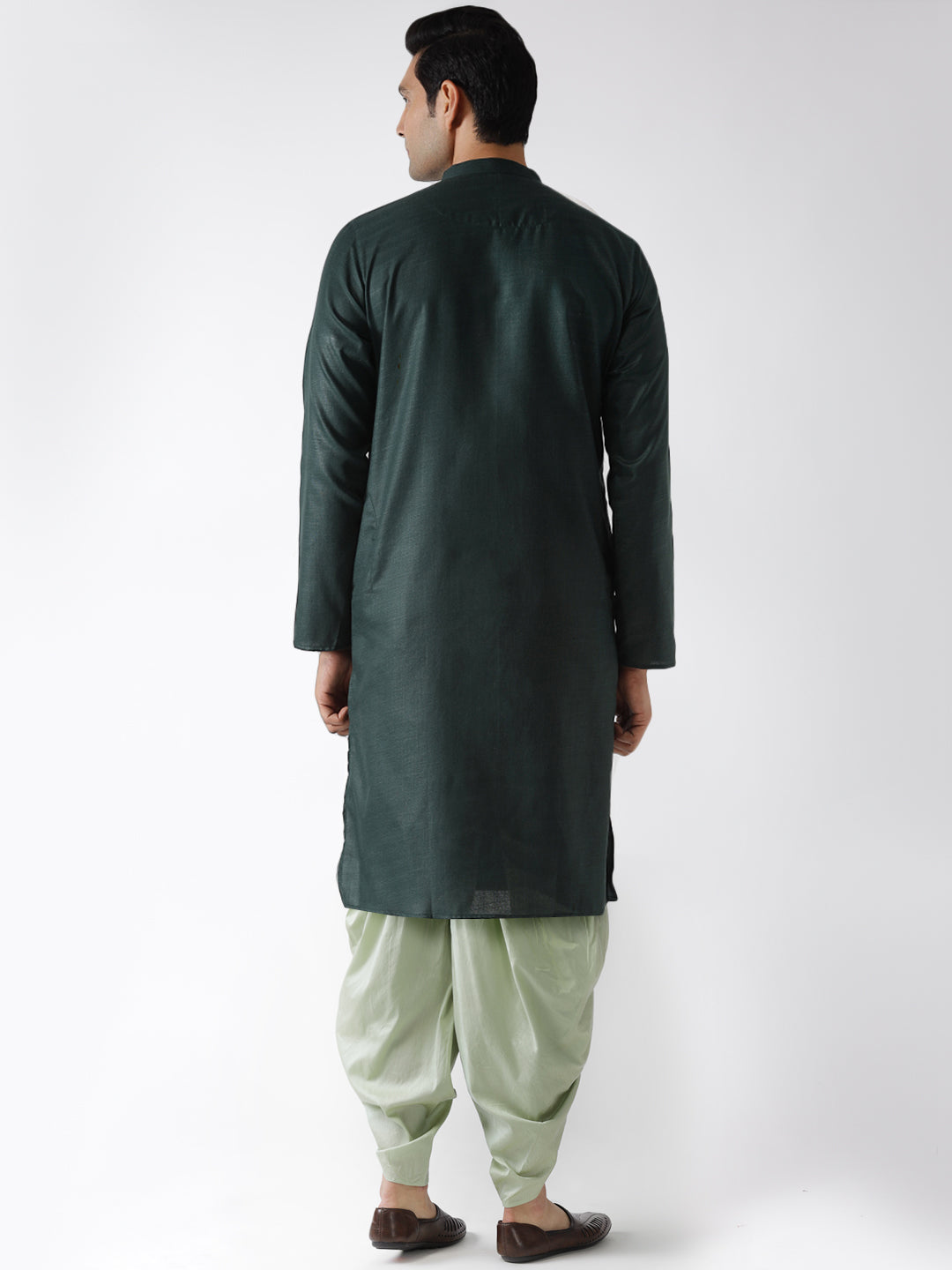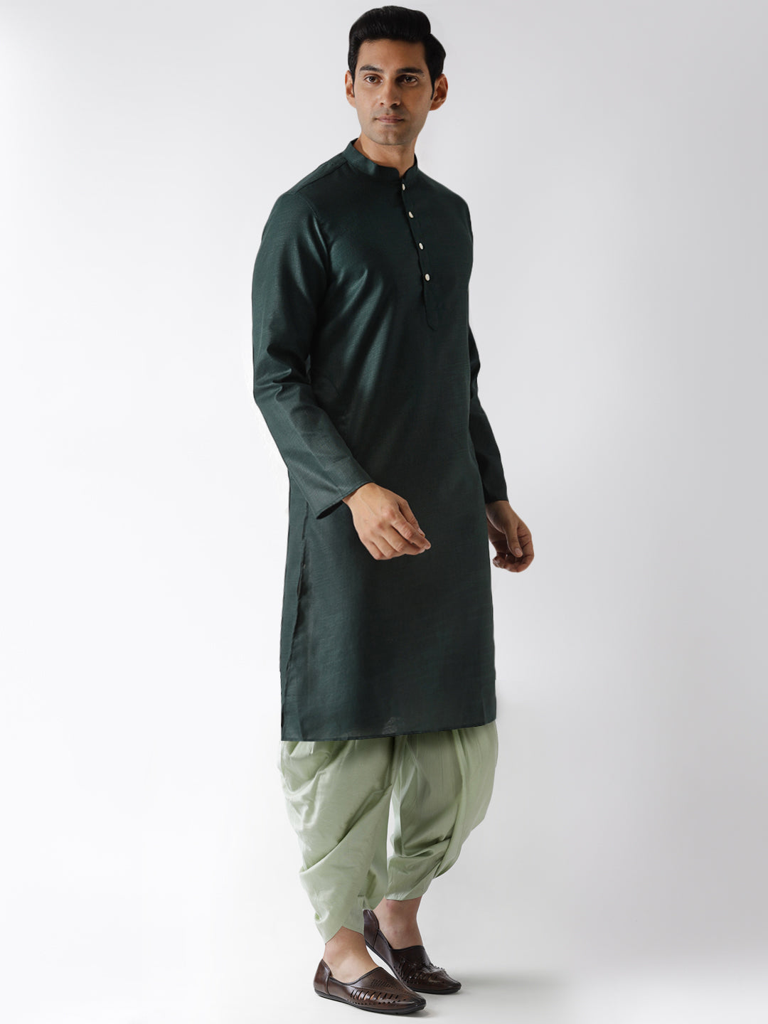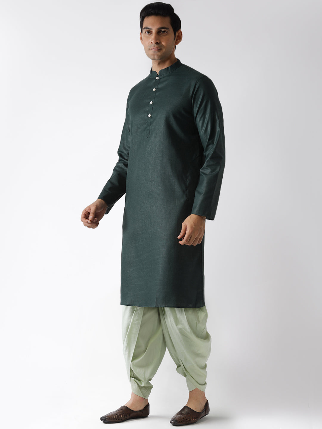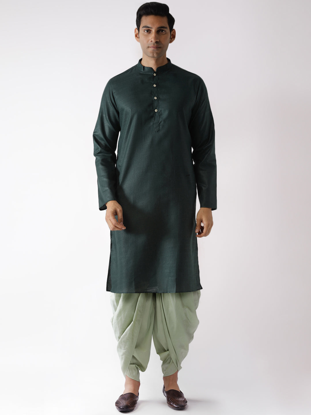 Elevate your style with this elegant Green color Kurta Dhoti Set. Made from a premium Cotton Blend Fabric and Solid pattern, it offers unmatched comfort and sophistication. Perfect for any festive occasion.