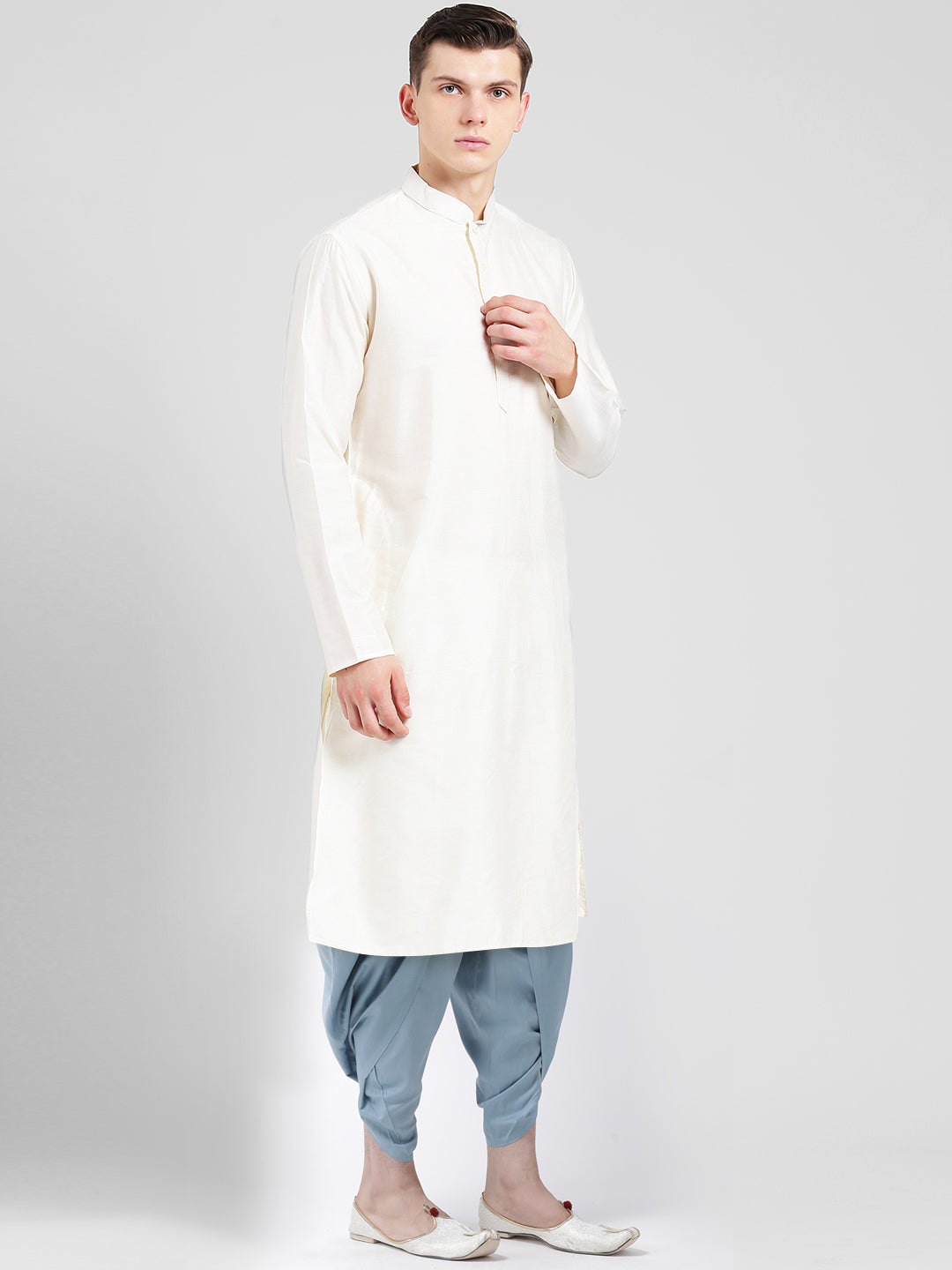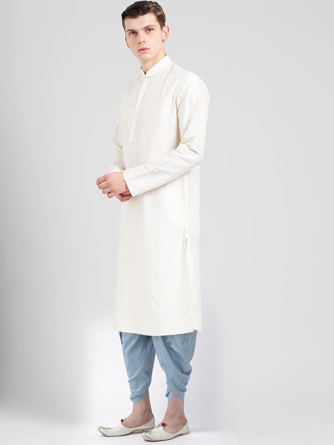 Elevate your style with this elegant Off White color Kurta Dhoti Set. Made from a premium Cotton Blend Fabric and Solid pattern, it offers unmatched comfort and sophistication. Perfect for any festive occasion.