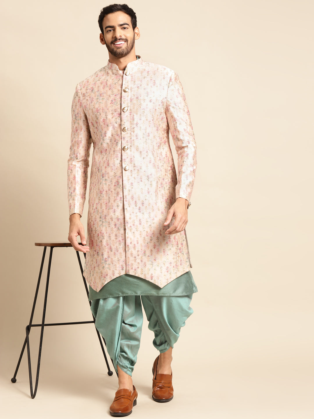 This Indowestern set is an elegant mandarin collar style that is perfect for occasional wear. With a full sleeve design and comfortable fabric, it will make you look stylish. Add some bling to your outfit and you can take things up a notch with some mochari to complete the look.ÂÂÂÂÂÂÂÂÂ