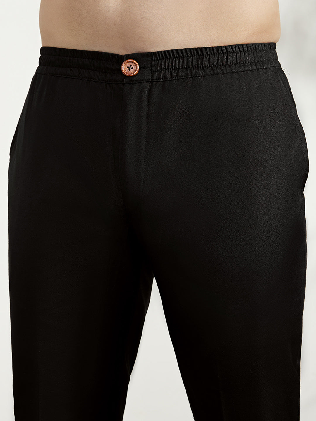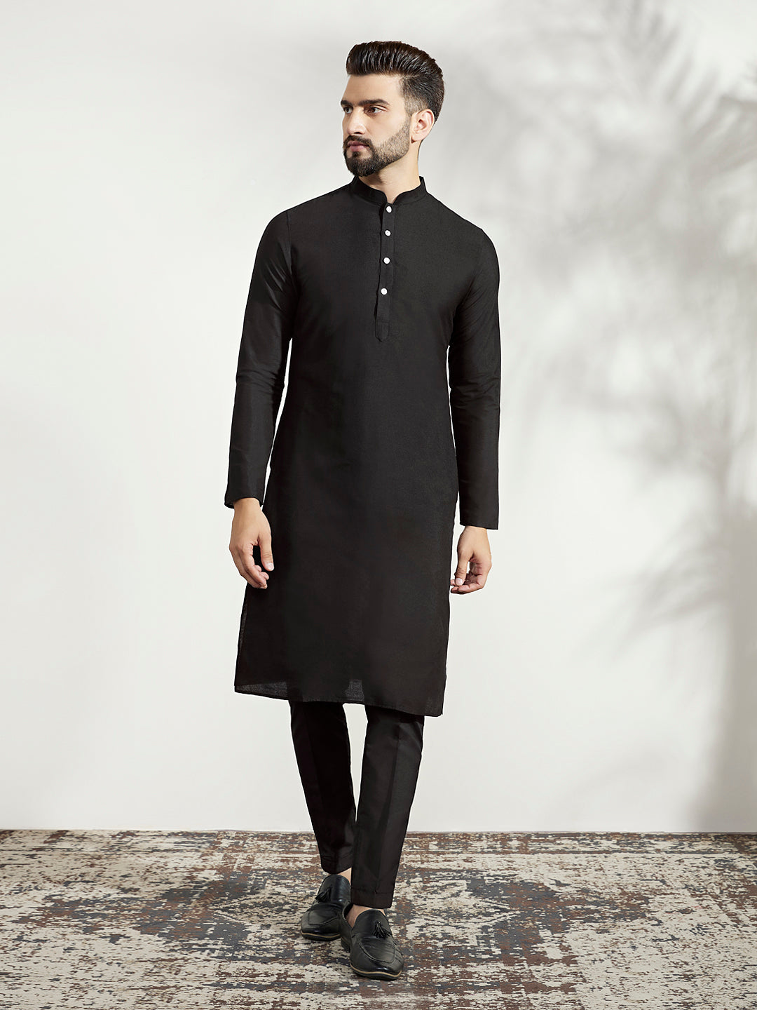 Black Cotton Silk Printed Indowestern Kurta Trouser Set